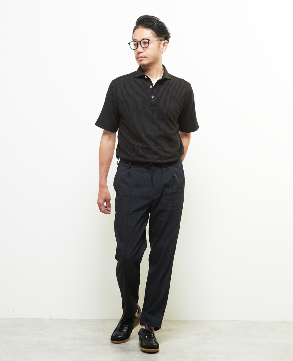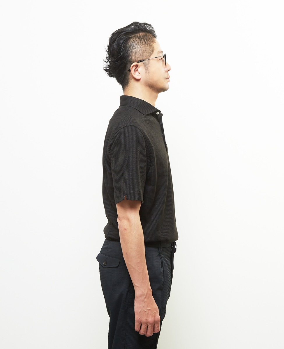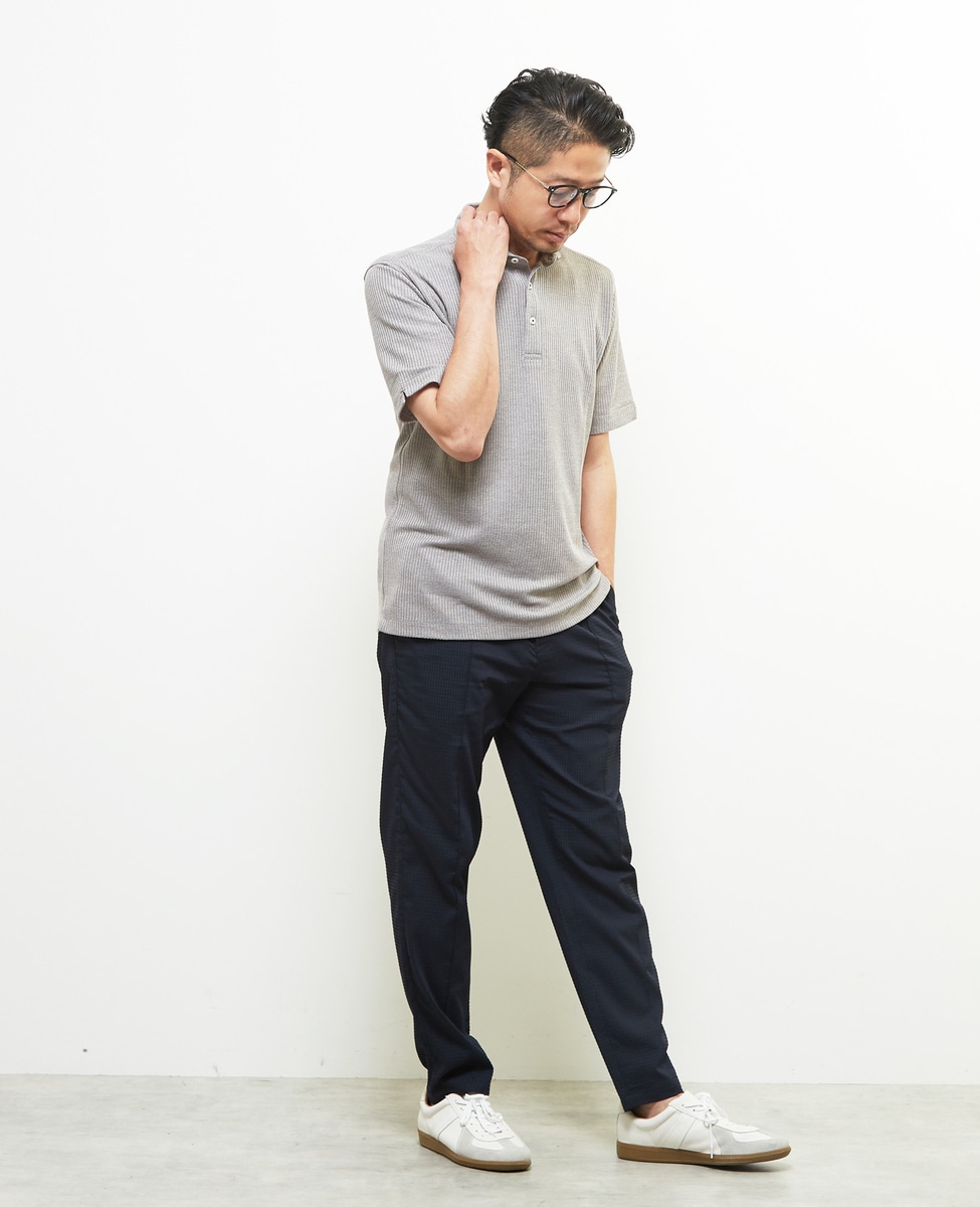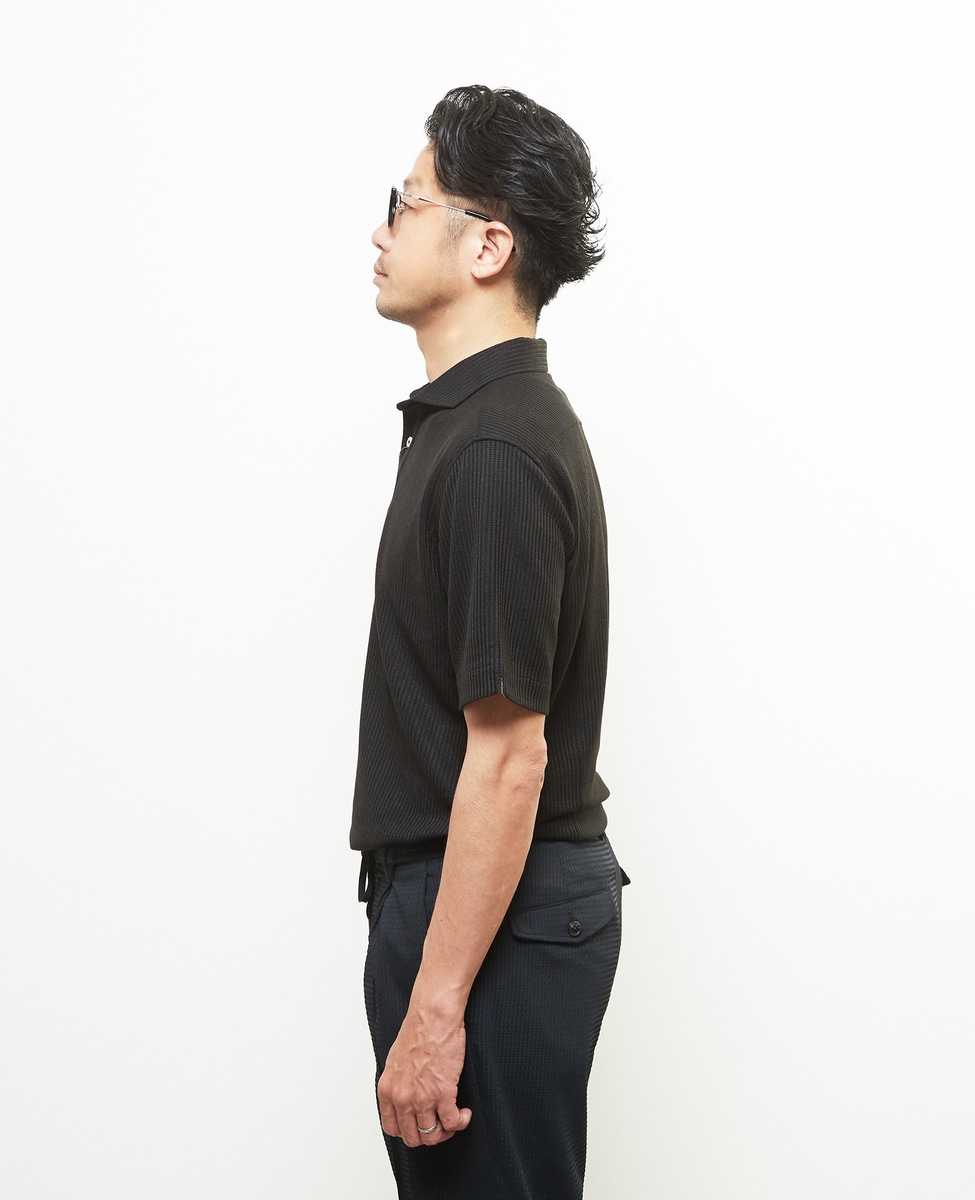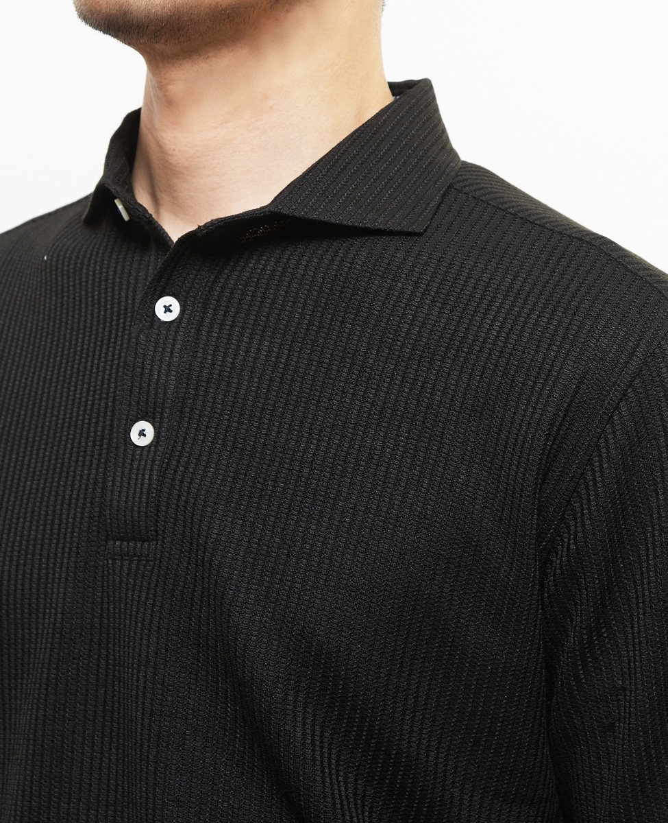リンクスストライプ 半袖ホリゾンタルカラーポロシャツ