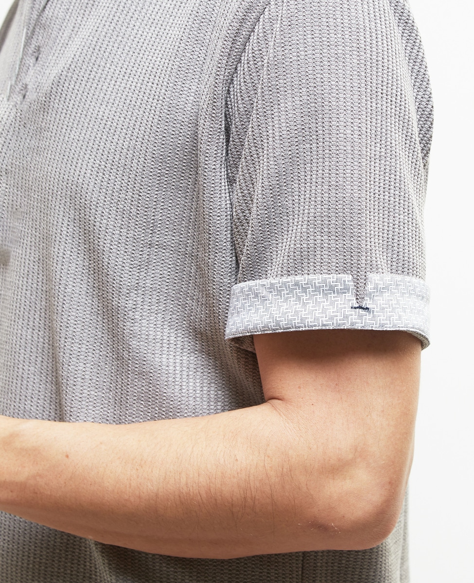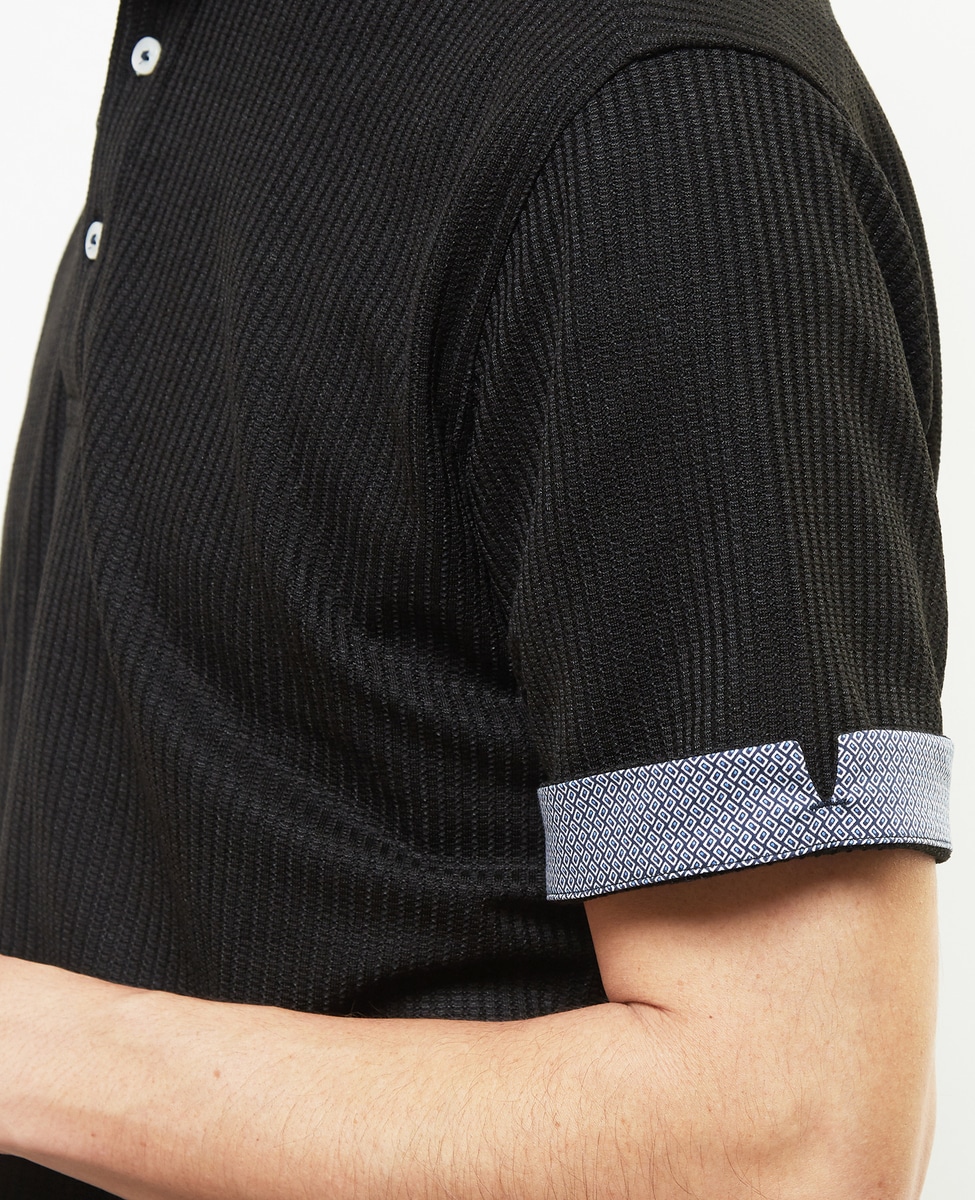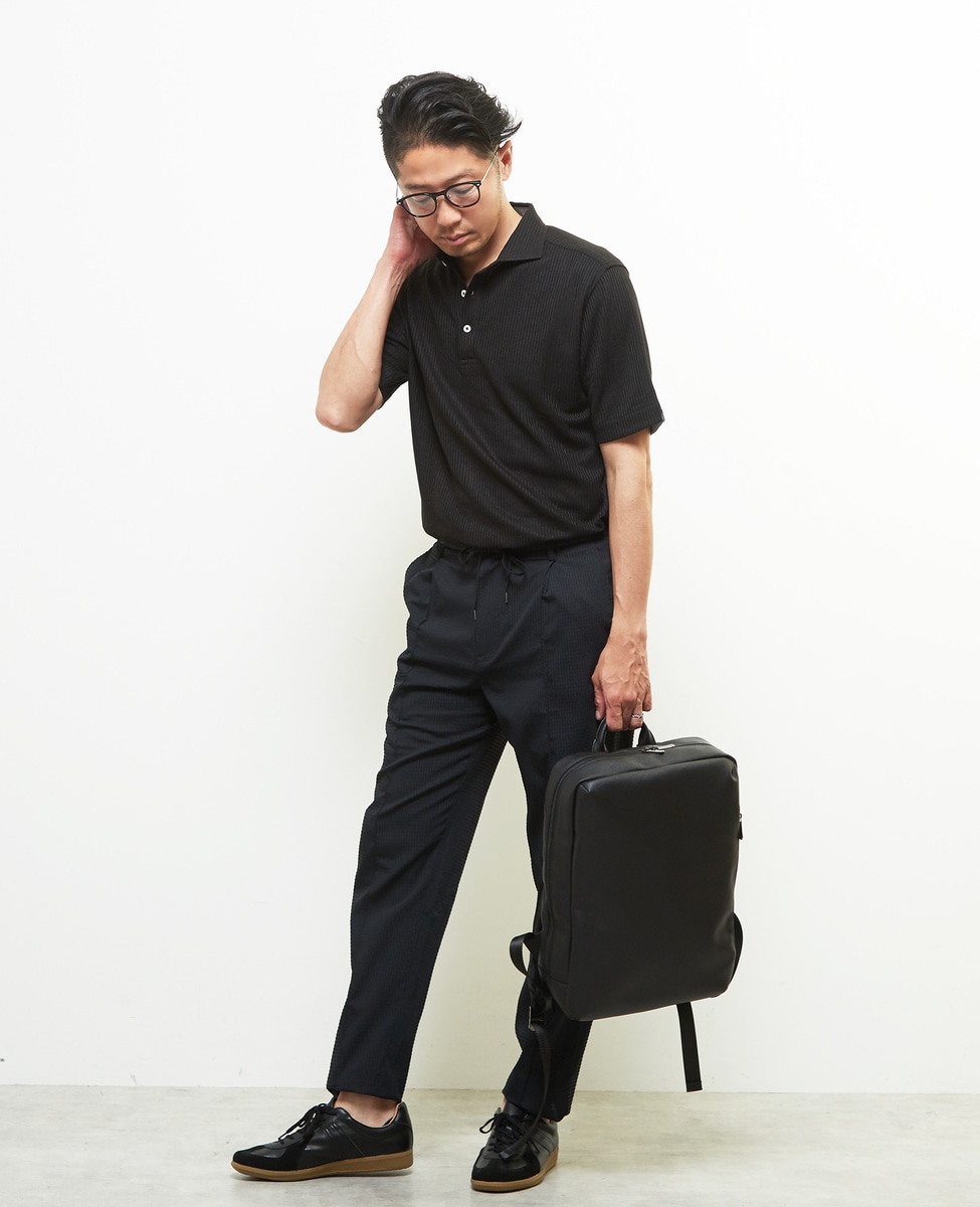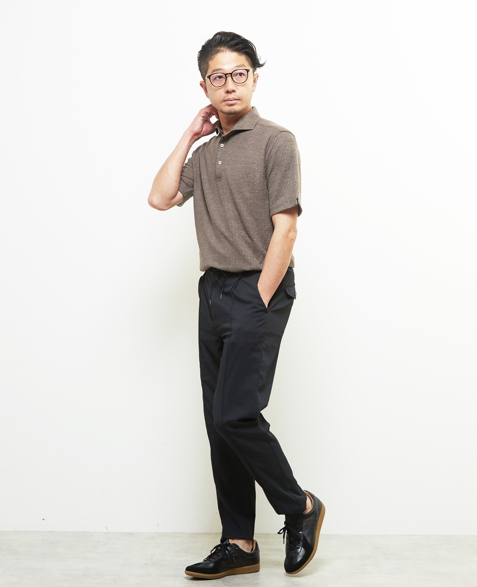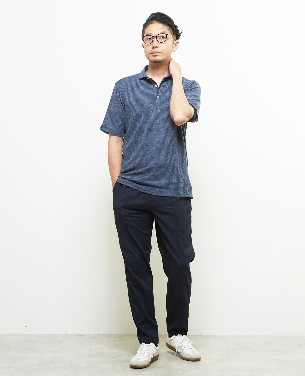 リンクスストライプ 半袖ホリゾンタルカラーポロシャツ