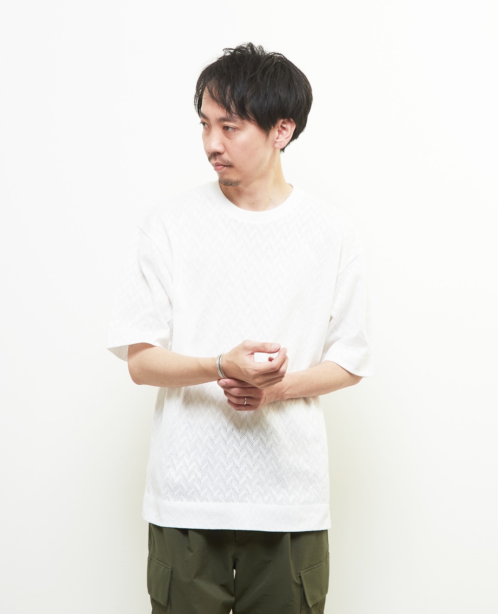 ヘリンボーンメッシュハーフスリーブTシャツ