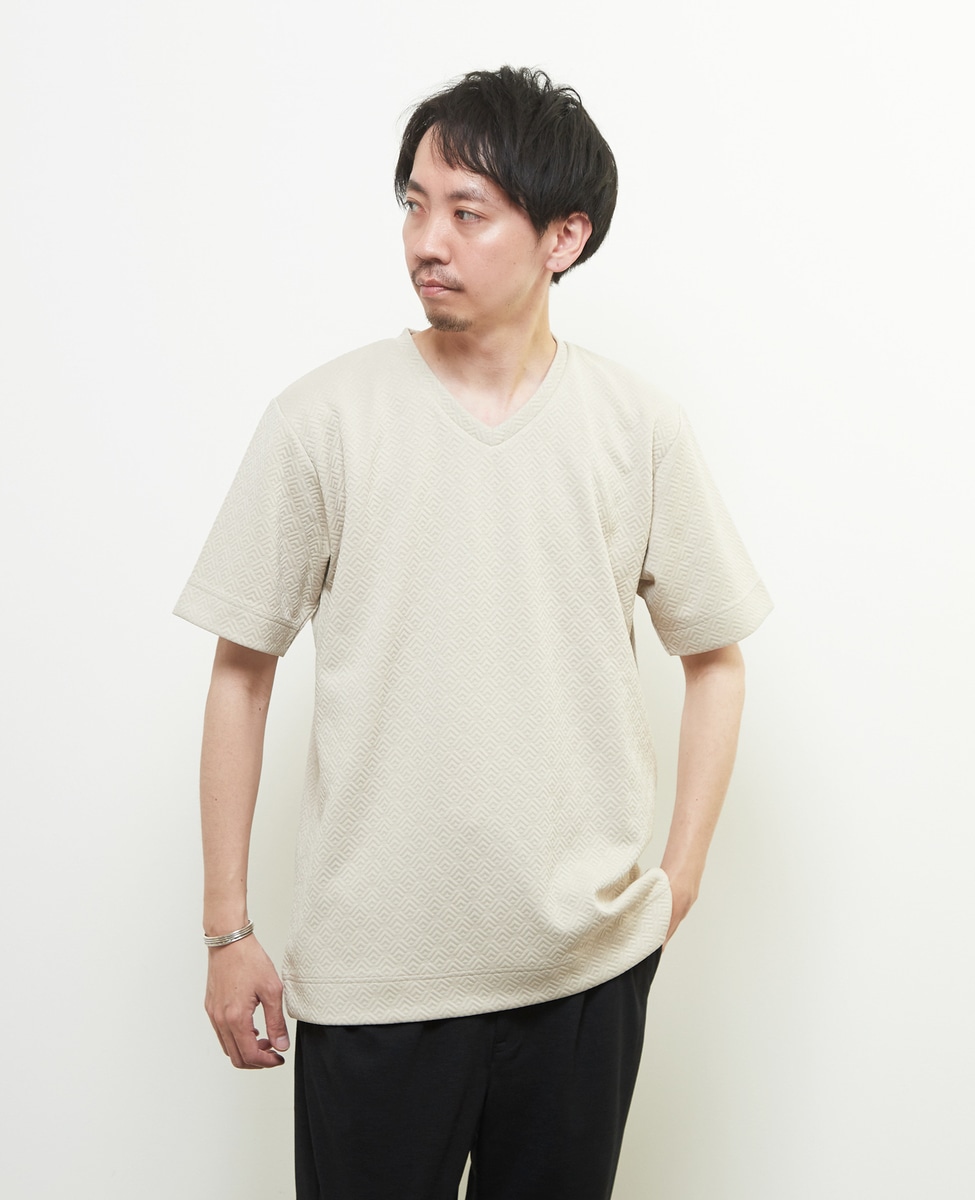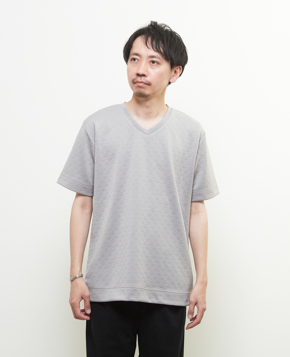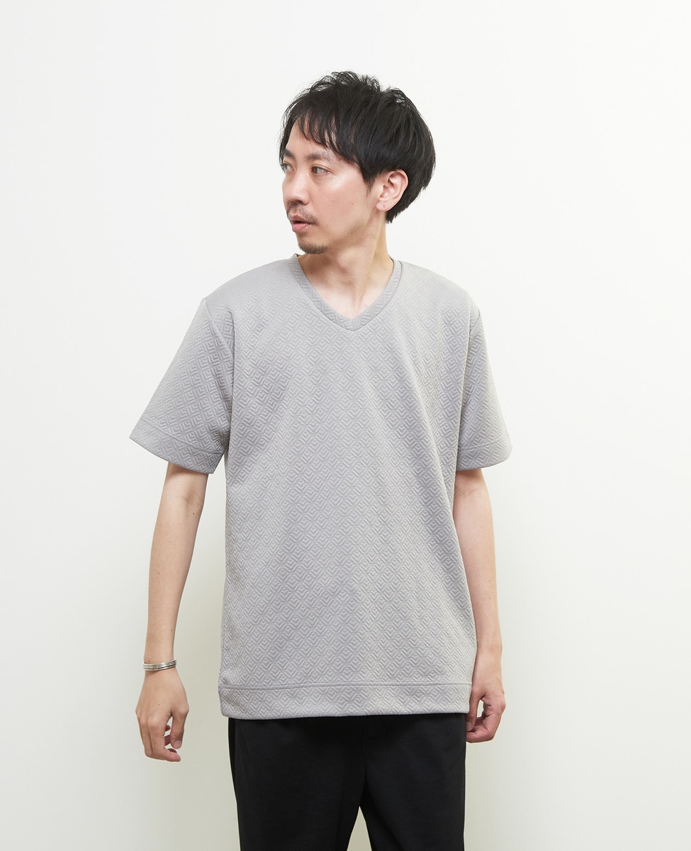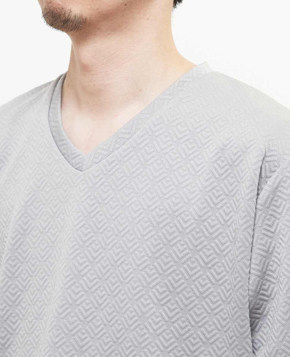 ジオメトリックブリスターVネックハーフスリーブTシャツ