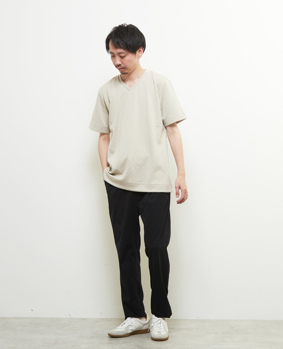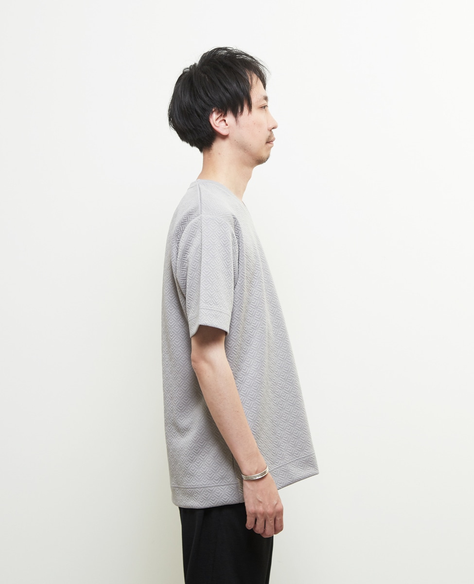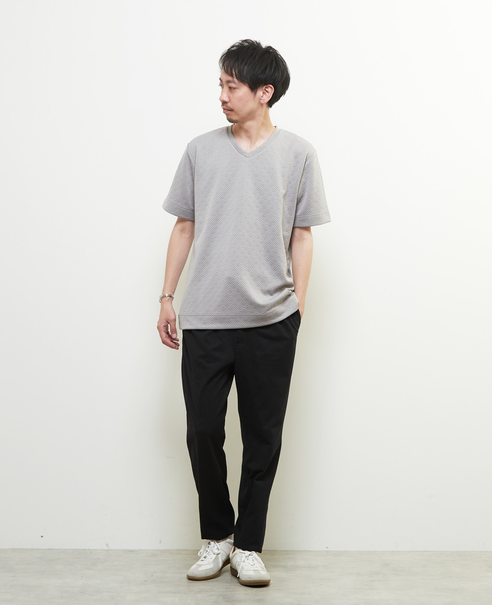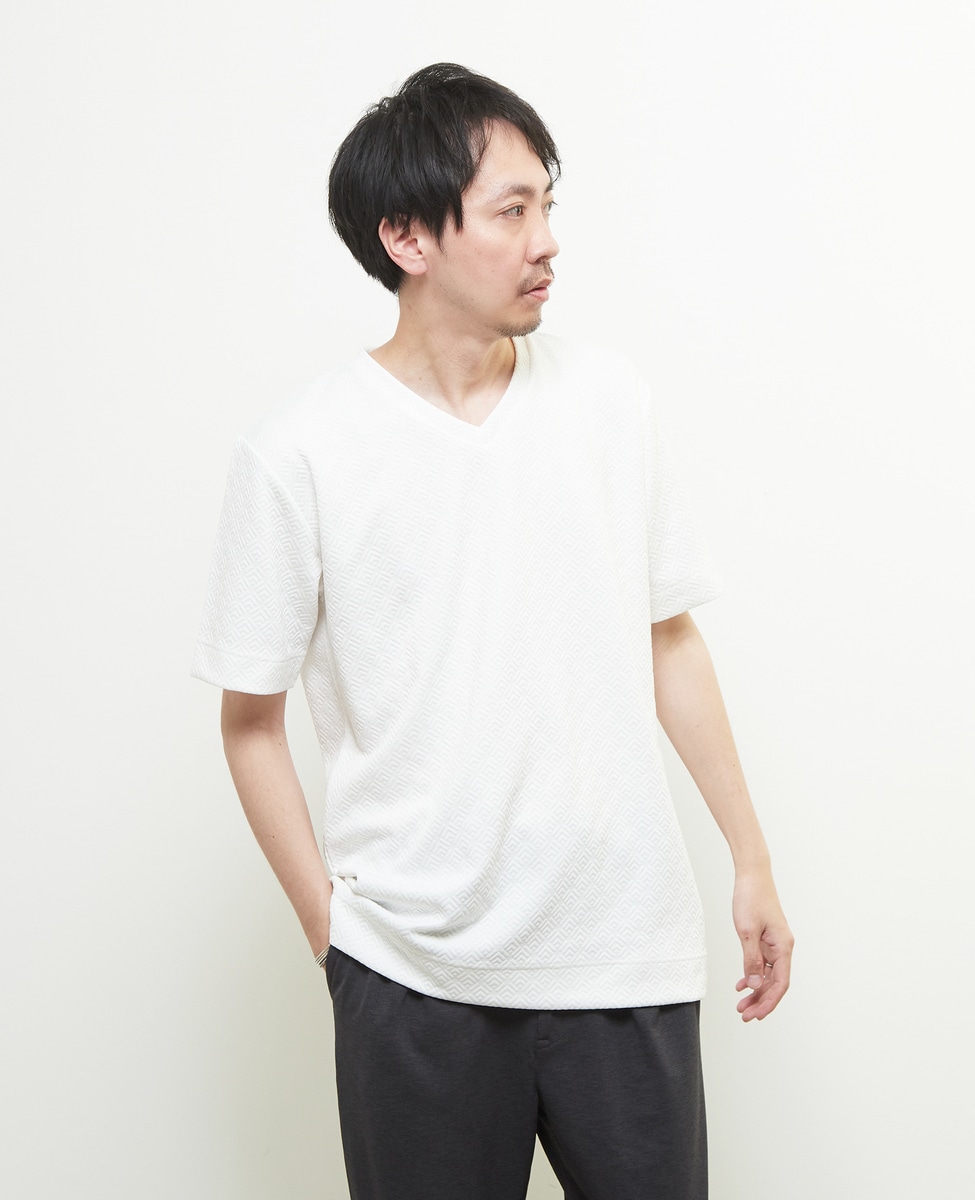 ジオメトリックブリスターVネックハーフスリーブTシャツ