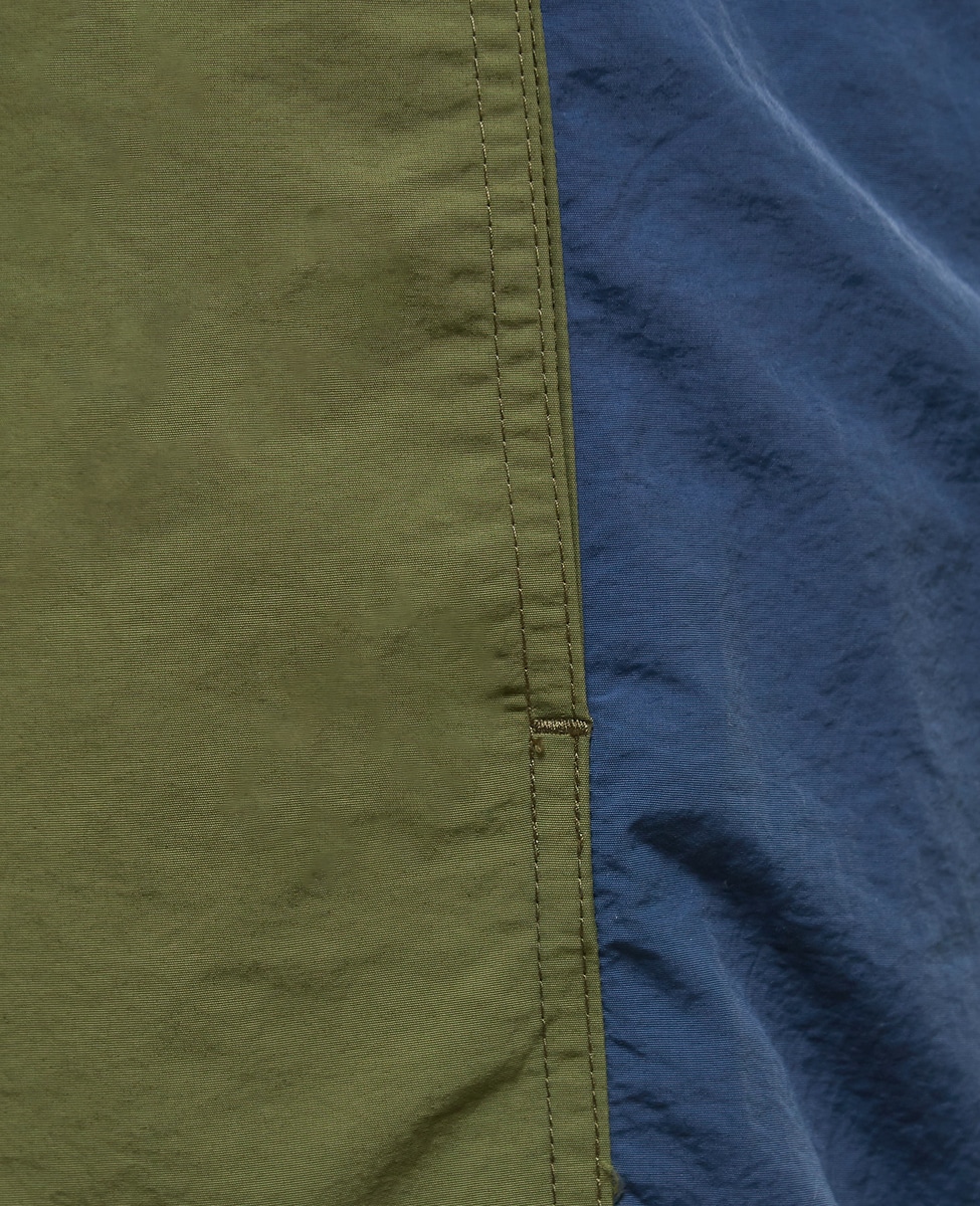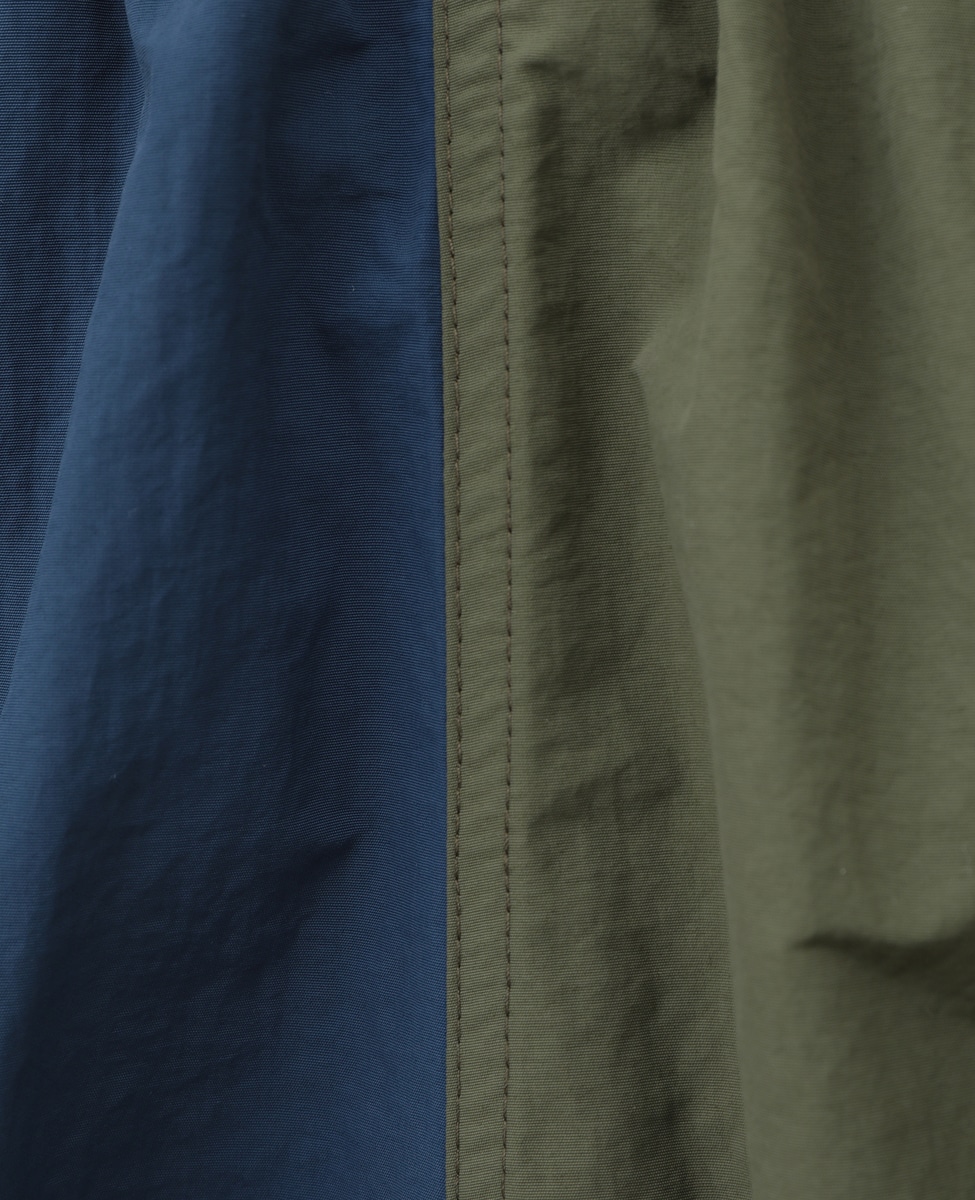 ドライタッチと製品洗いを施したようなワッシャー感が特徴で、撥水性に加え風を通しにくく、海やプールなど水辺にも対応した水陸両用素材ですので、様々なシーンで活躍します。