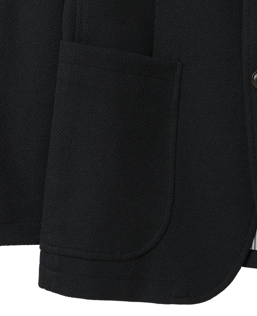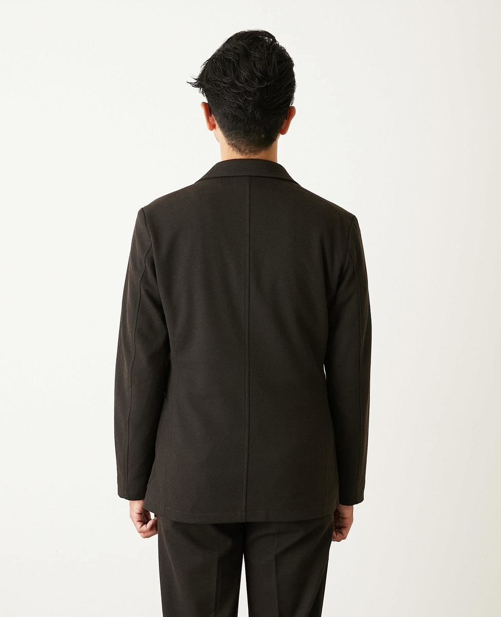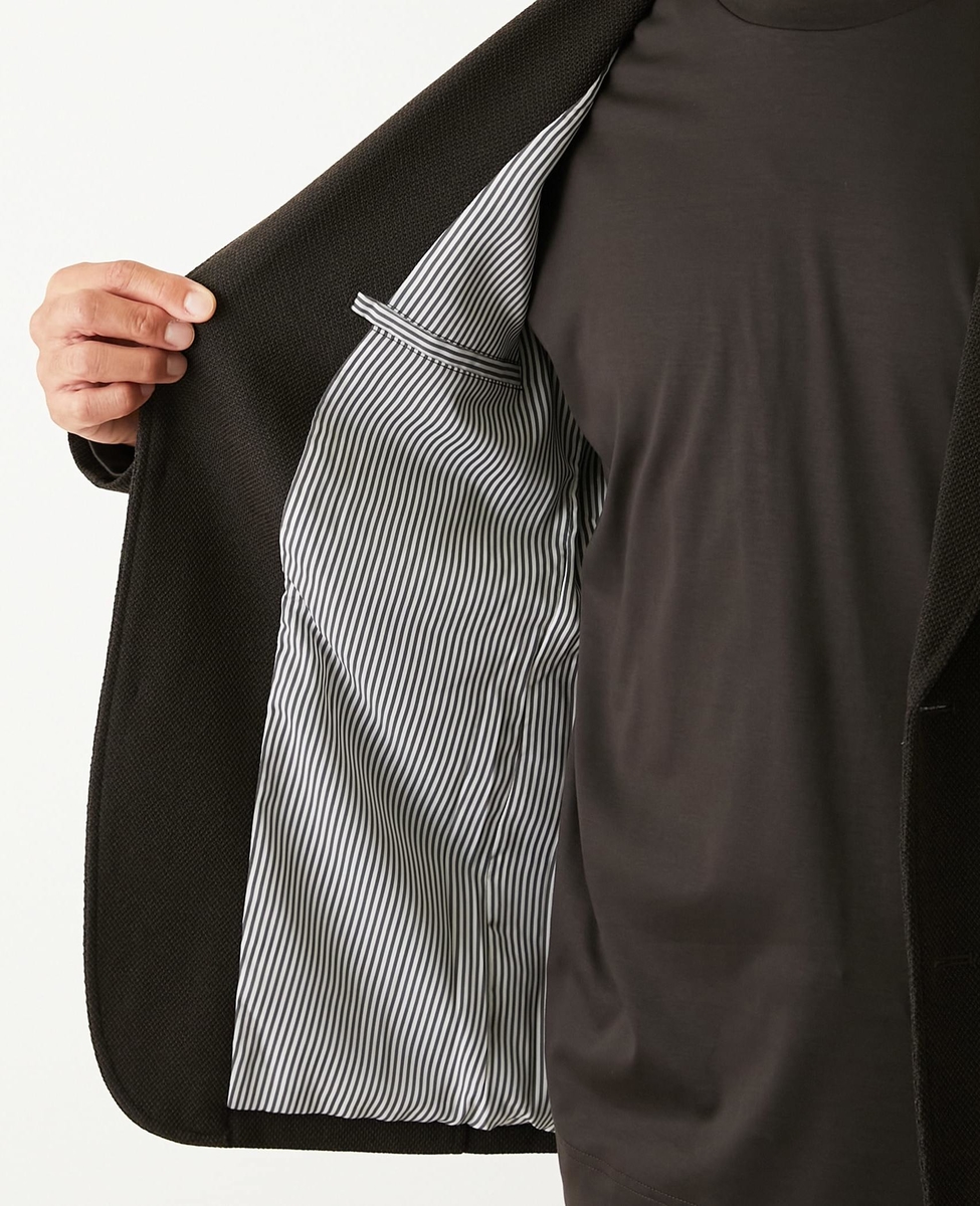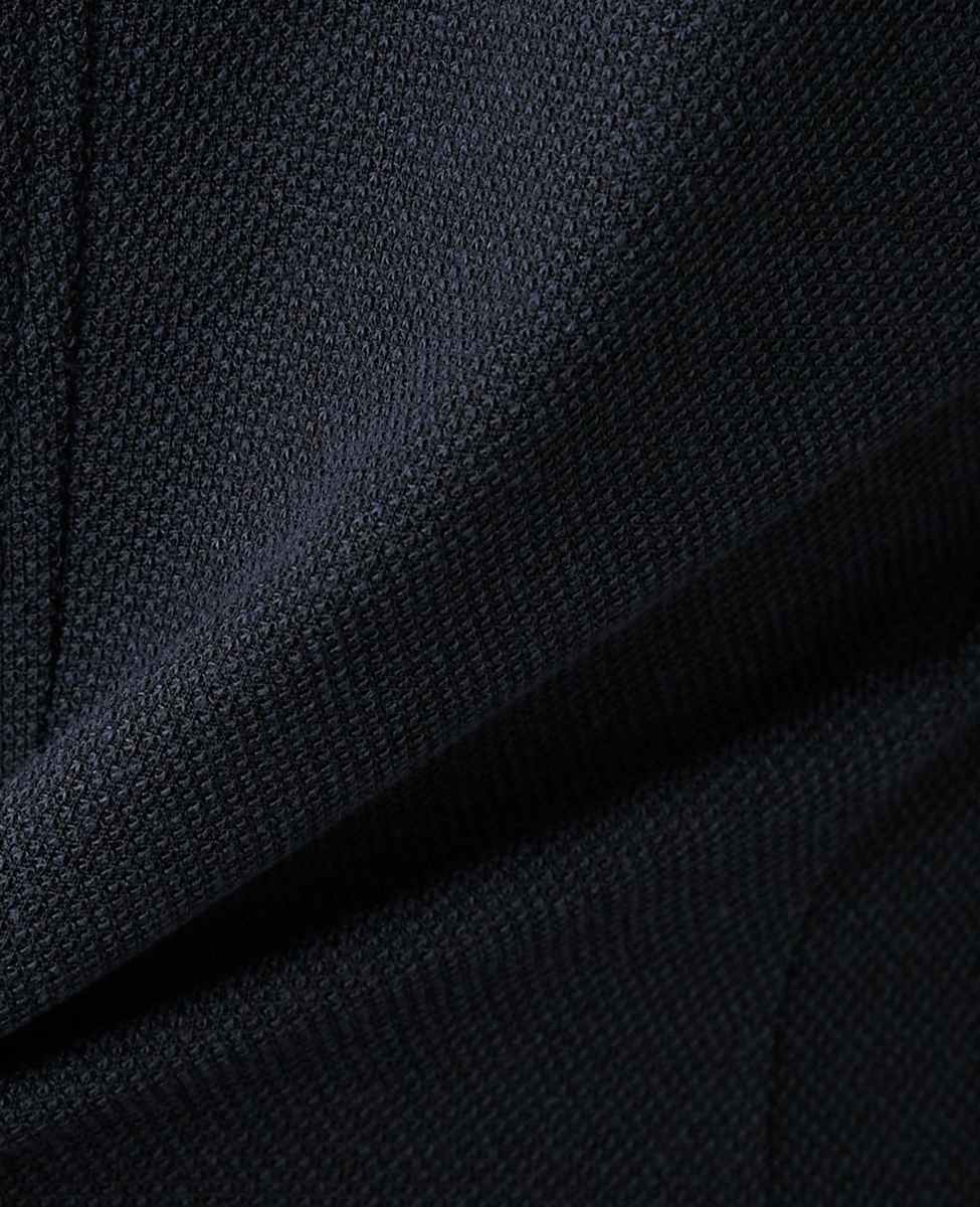 ウールの産地尾州のウールを仕上げる独特の製法はそのままに作られた先染ポリエスル糸のダブル組織素材は、ウォッシャブル・通気性機能を加えたハイブリッド素材です。