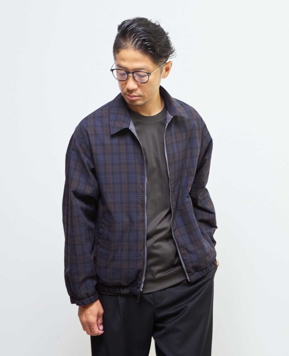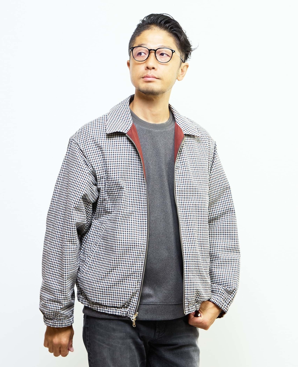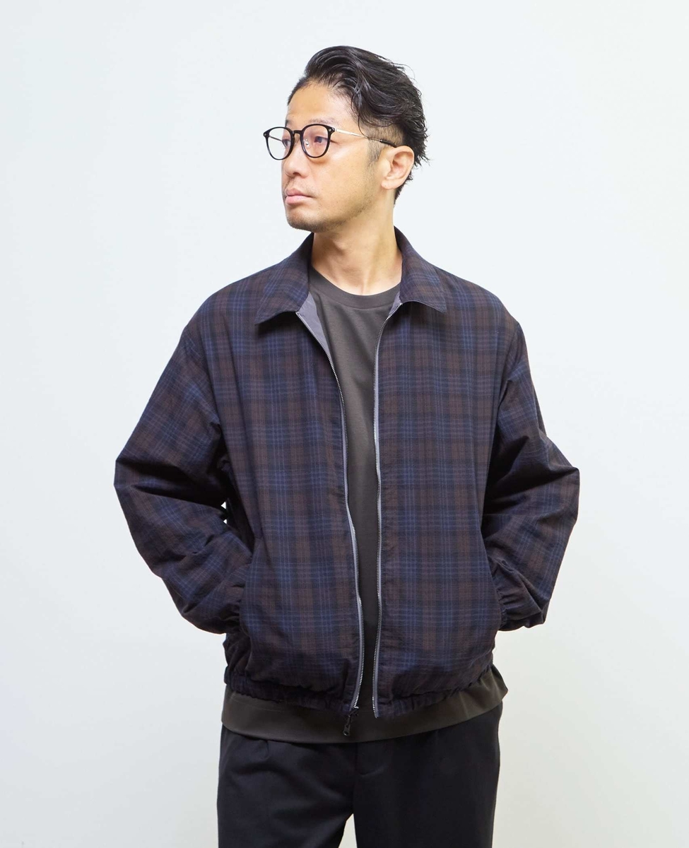 割繊タフタ×トラッドチェックリバーシブルハリントンジャケット