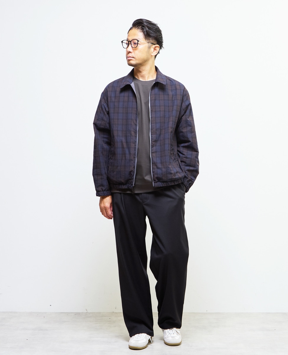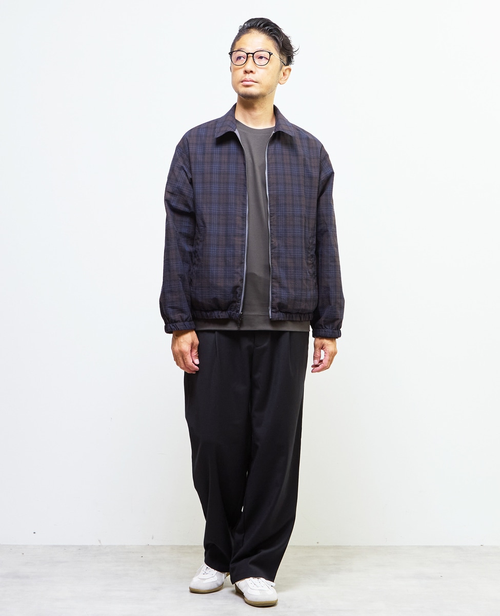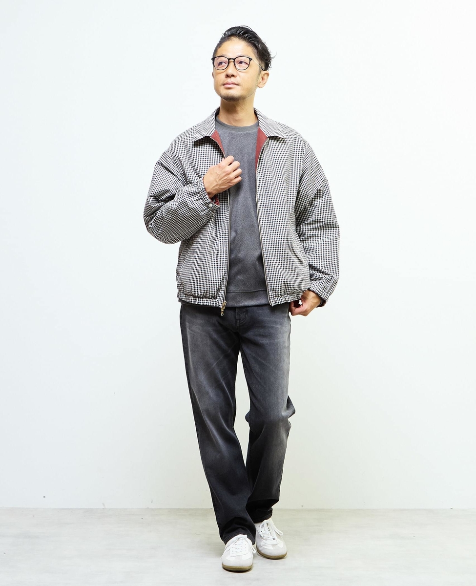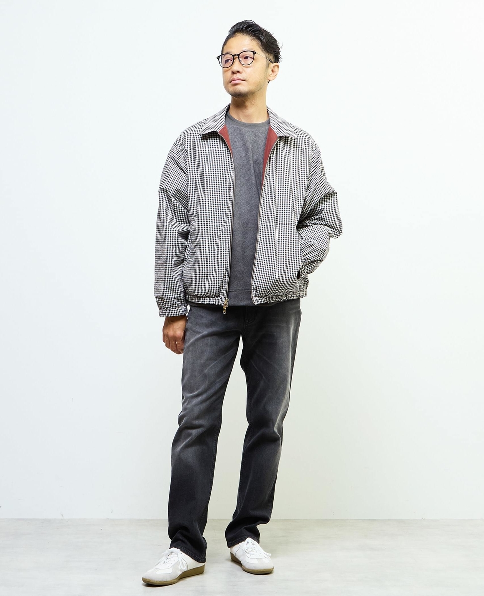 割繊タフタ×トラッドチェックリバーシブルハリントンジャケット