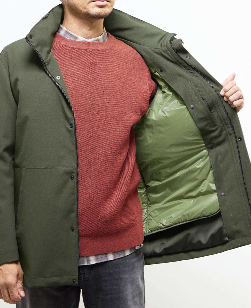 取り外し可能なベストライナーをつけているので、気候やシーンに合わせてスタイリングできます。