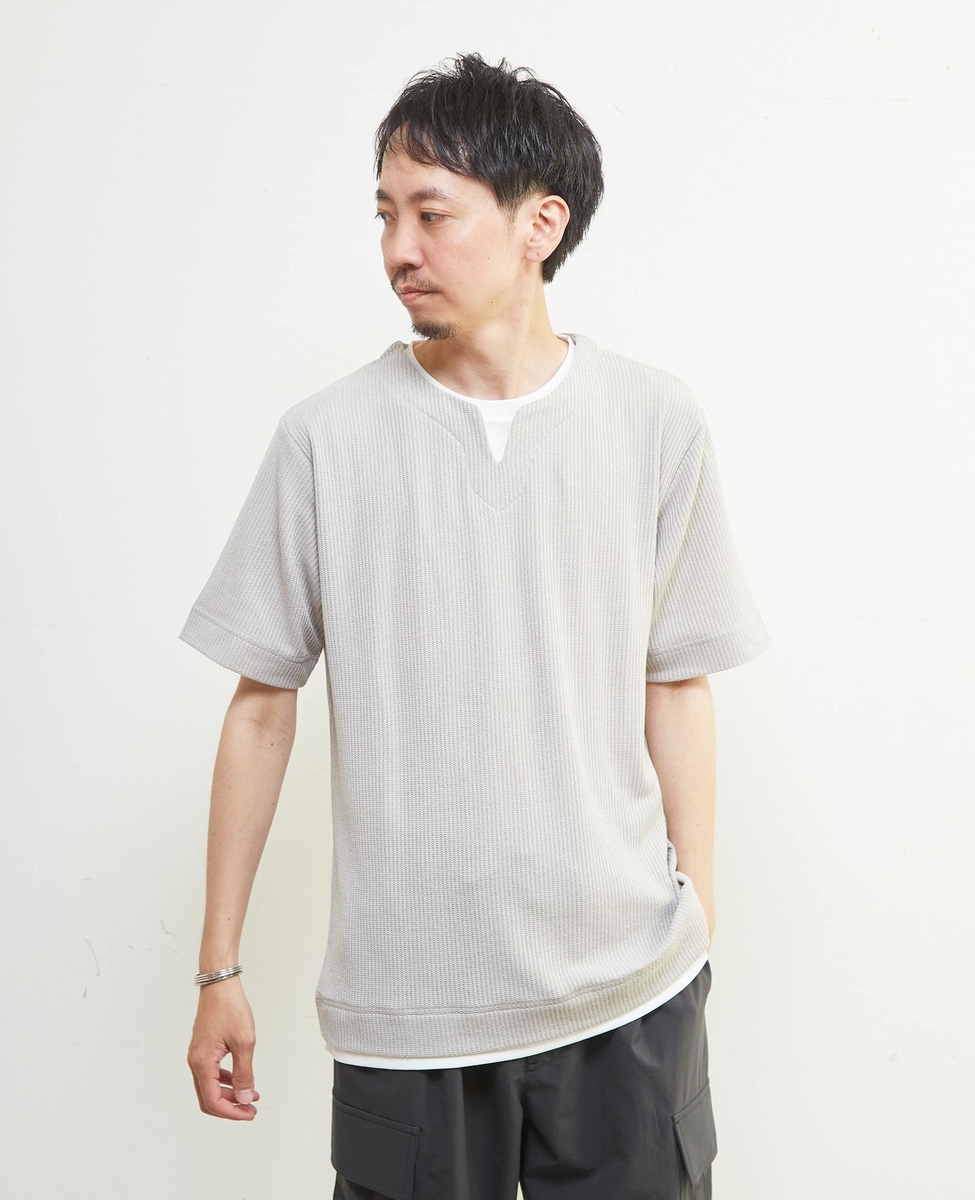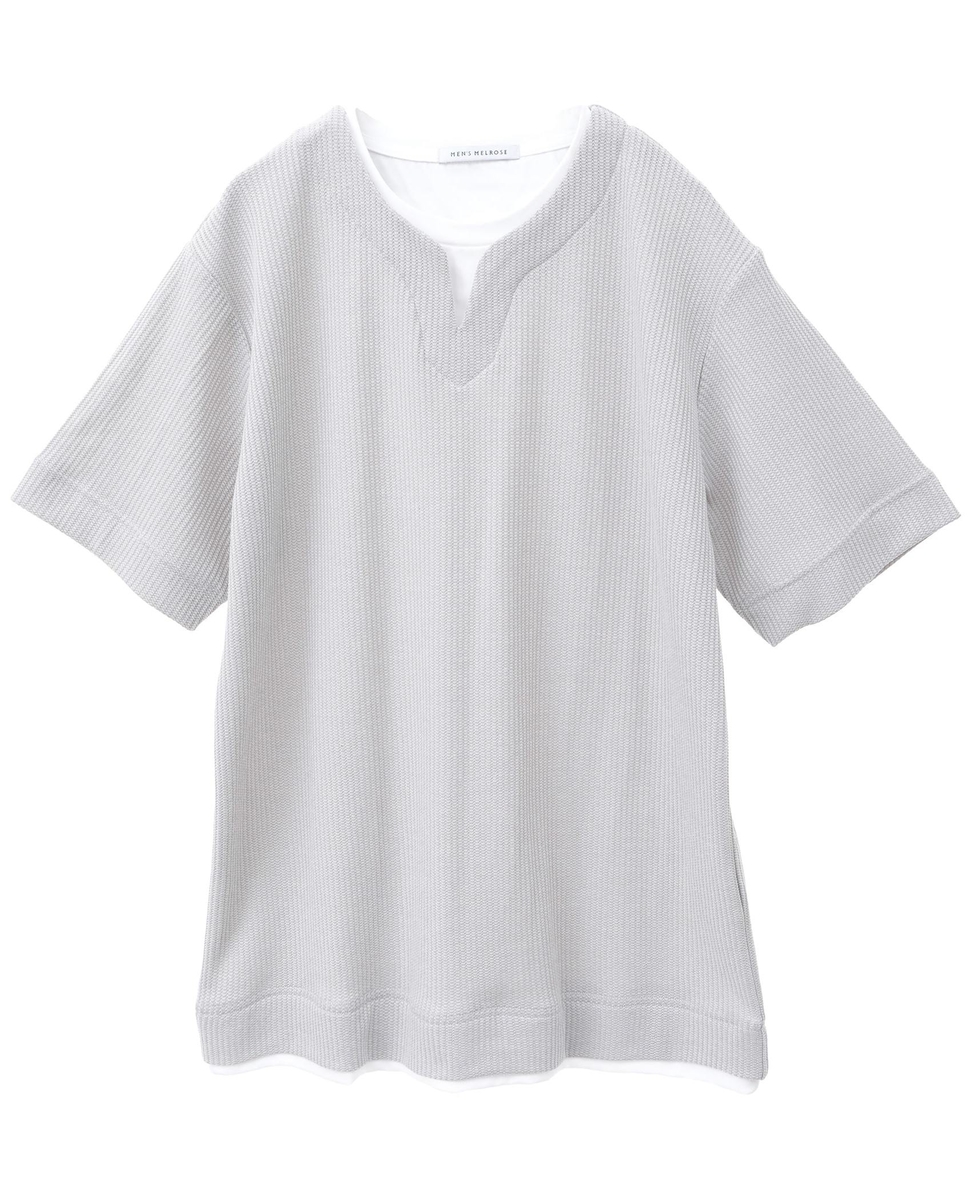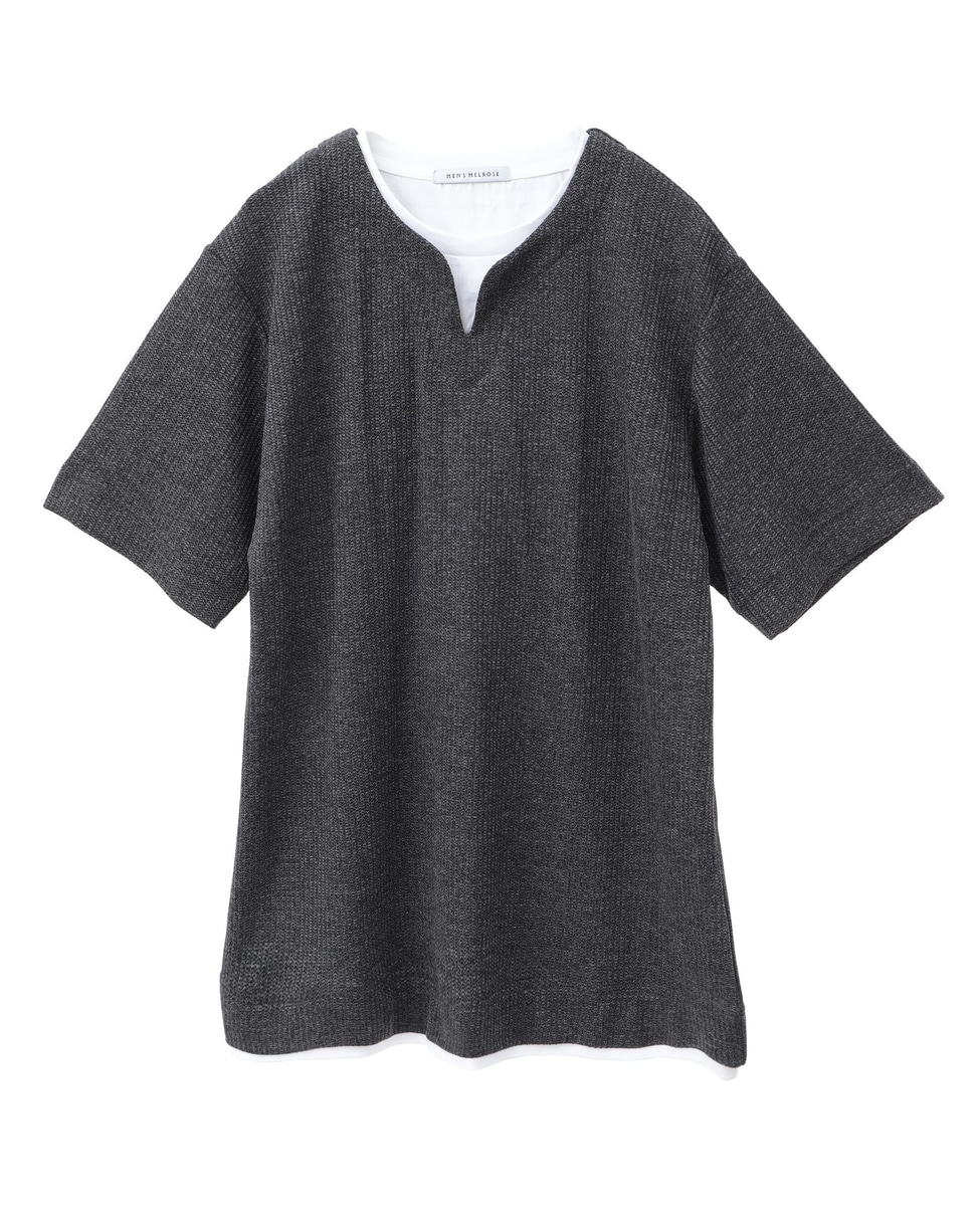 リンクスストライプキーネックフェイクレイヤードTシャツ