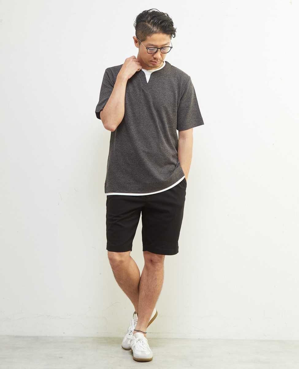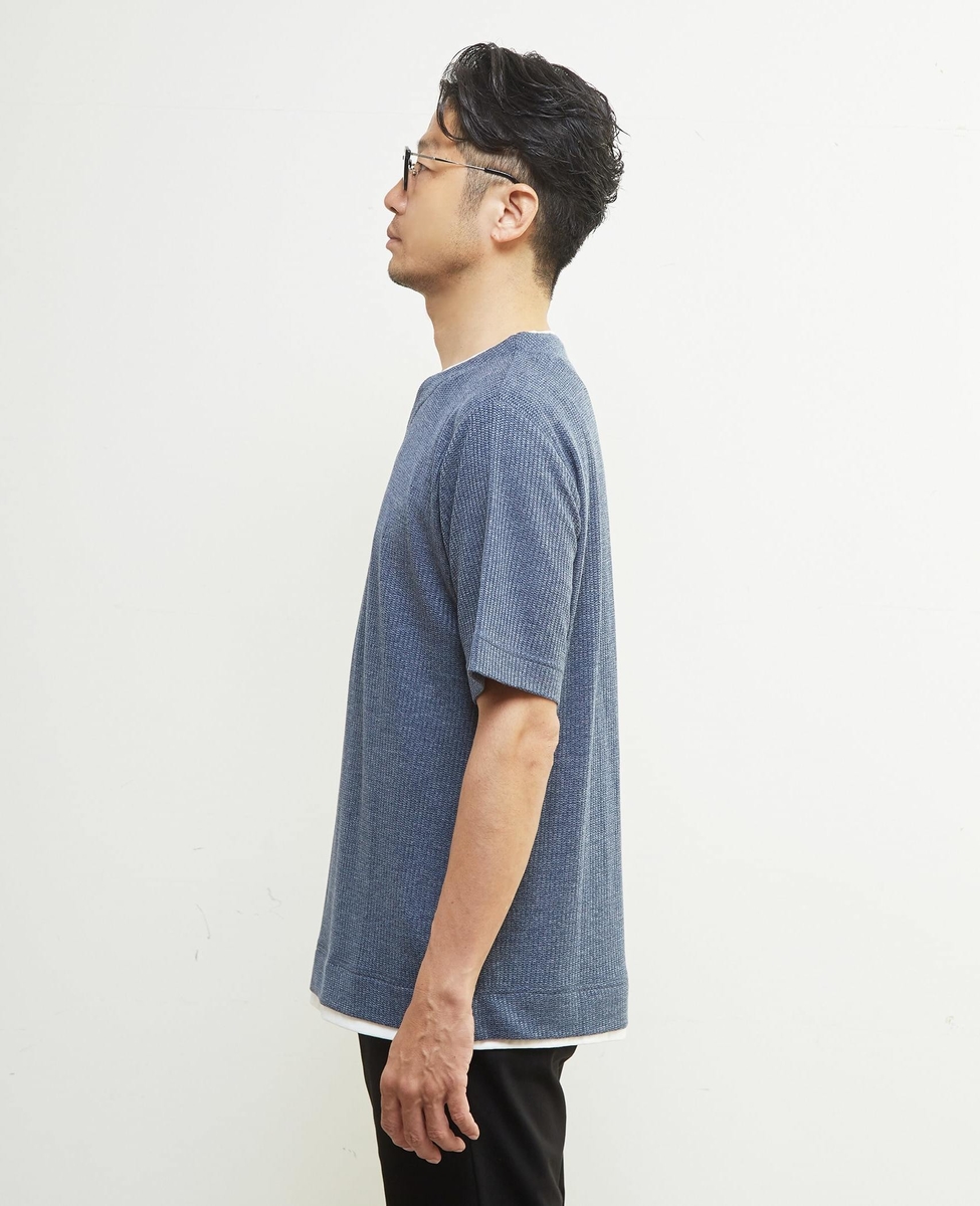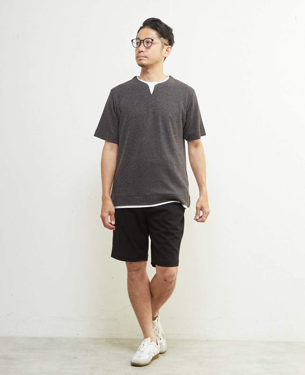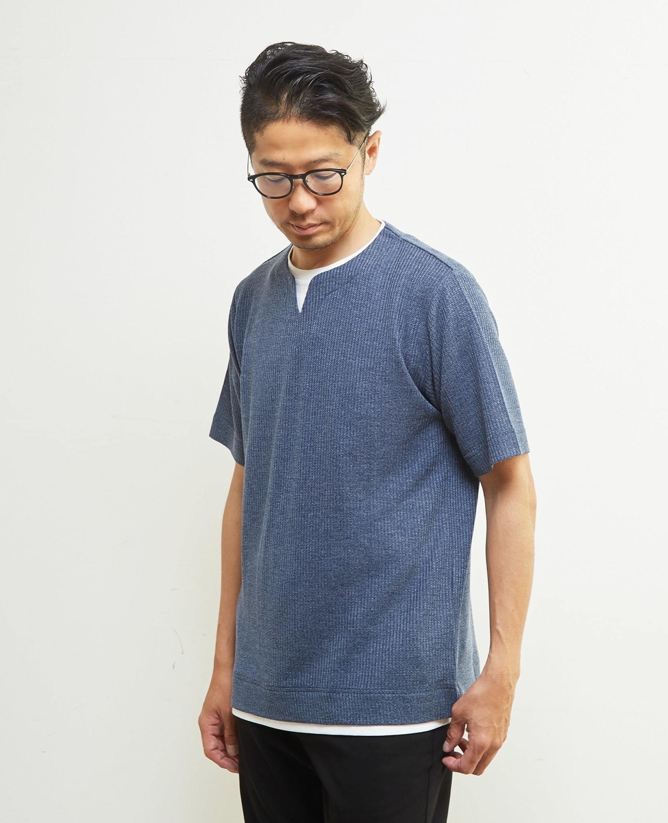 リンクスストライプキーネックフェイクレイヤードTシャツ