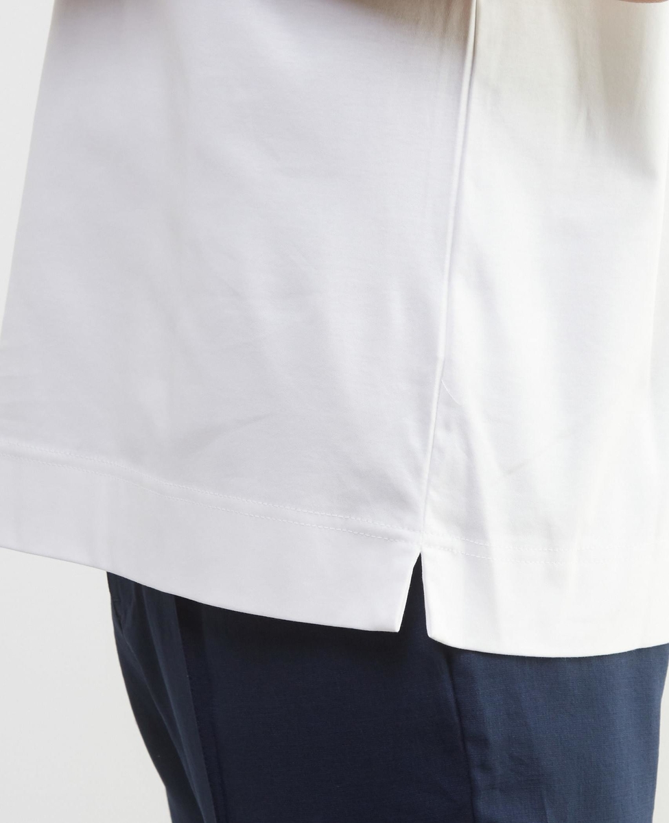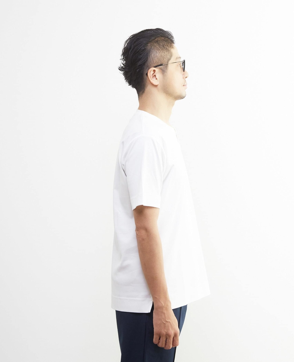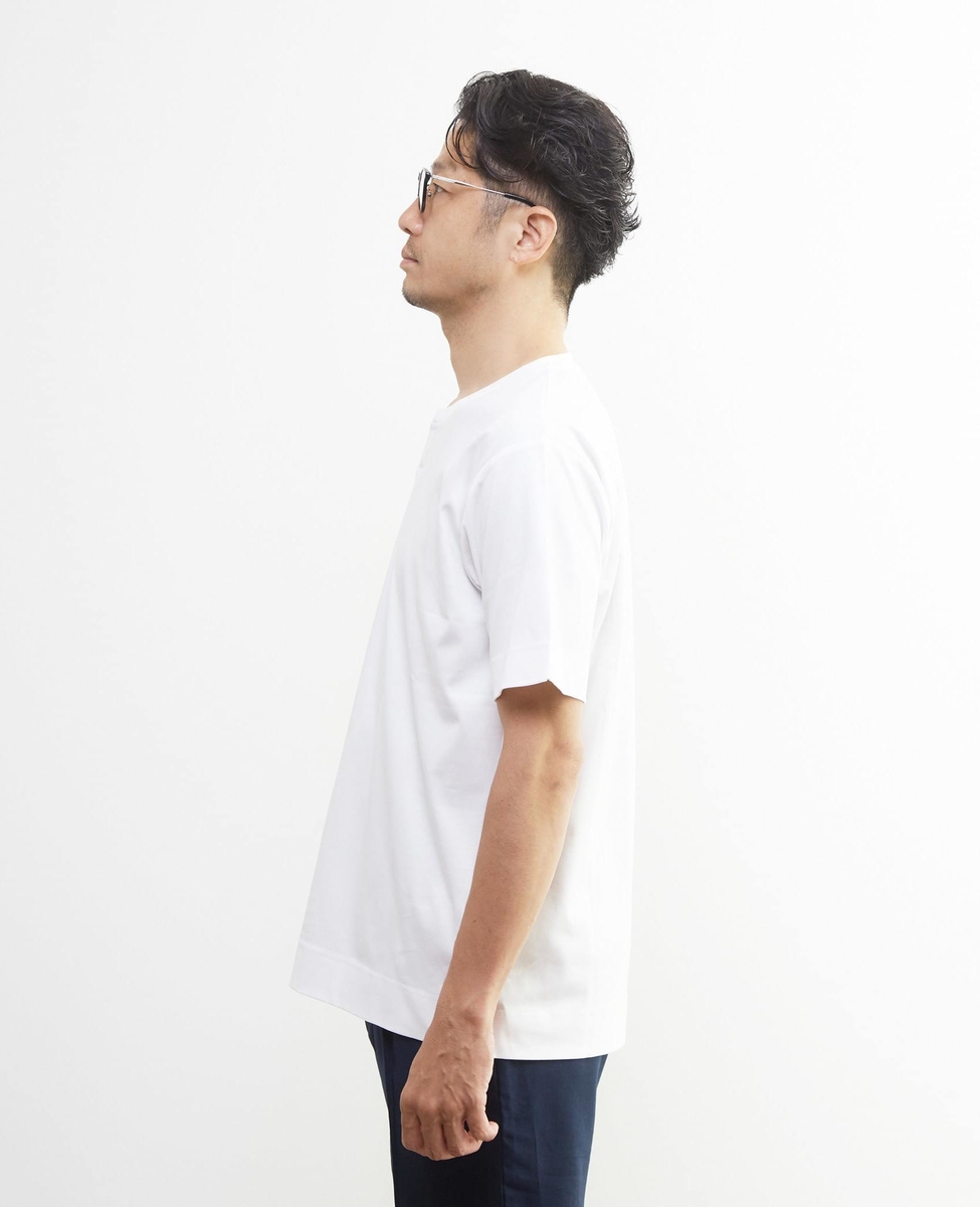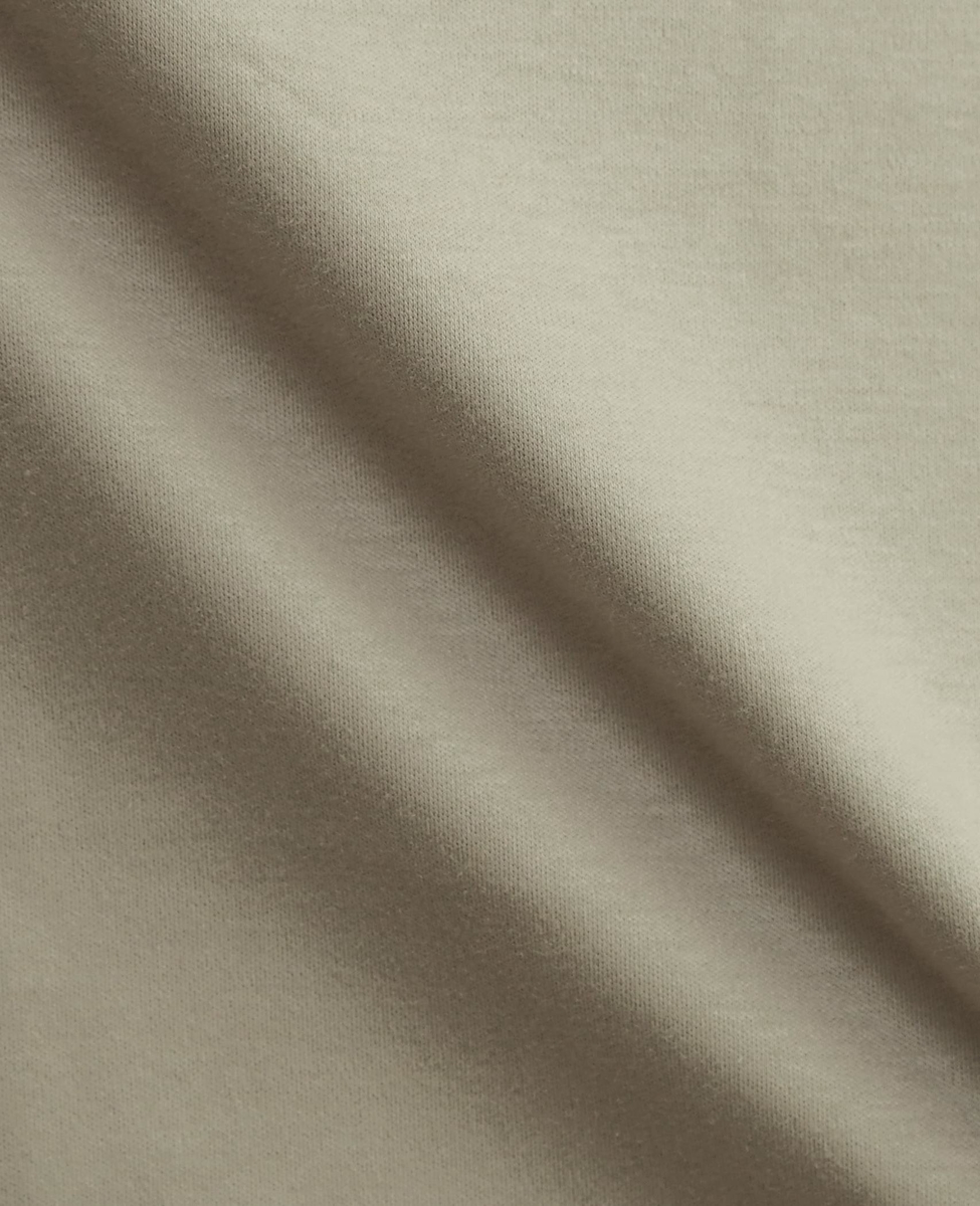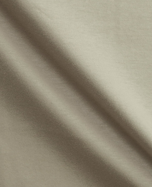 適度に厚みのあるスムース素材にシルケット加工を加えて、毛羽を落とし光沢とサラっとした質感を付加した素材です。