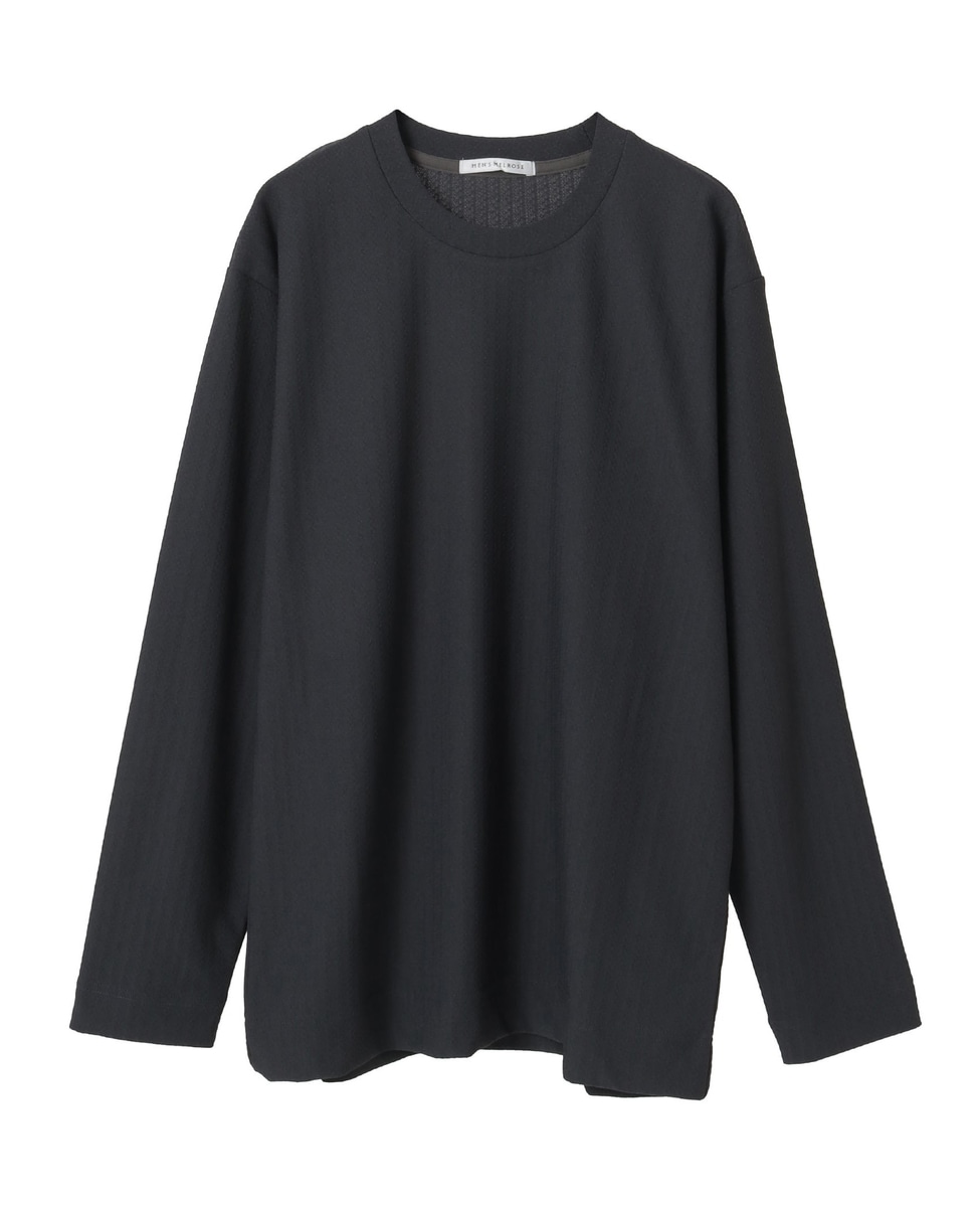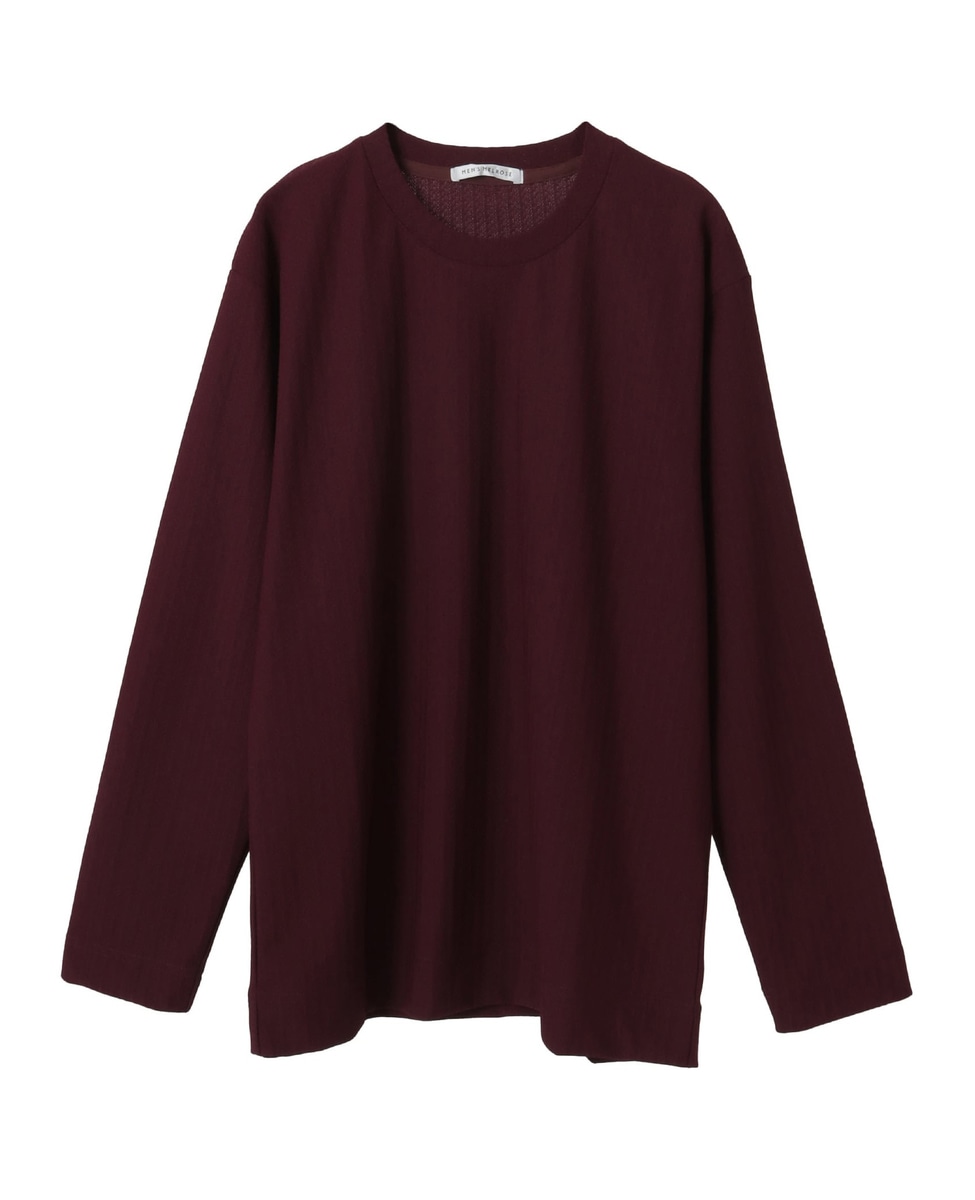ベーシックなロングスリーブTシャツですが、裾と袖口の縫い代を幅広く設定する事により、しっかり感が出て主役級の雰囲気に仕上げています。