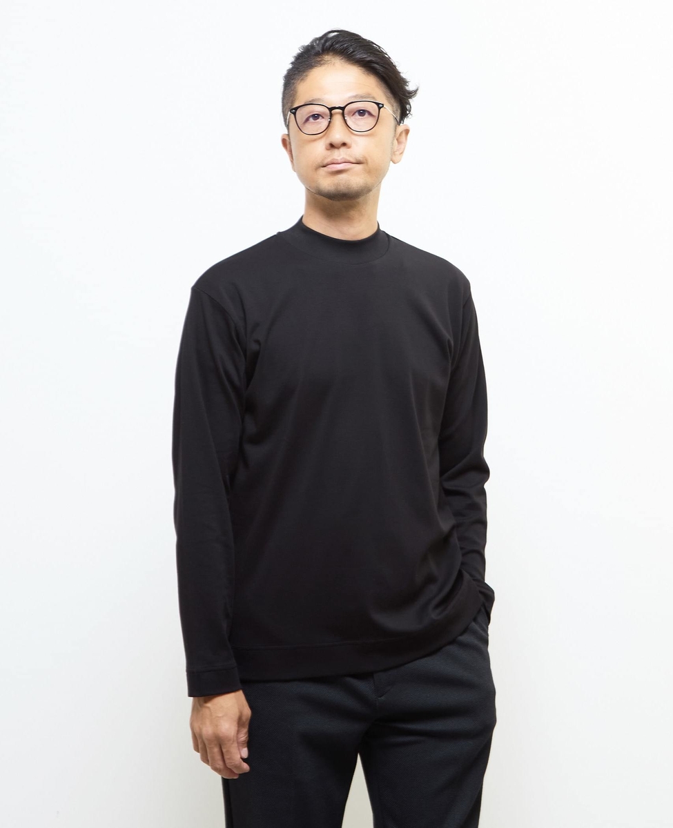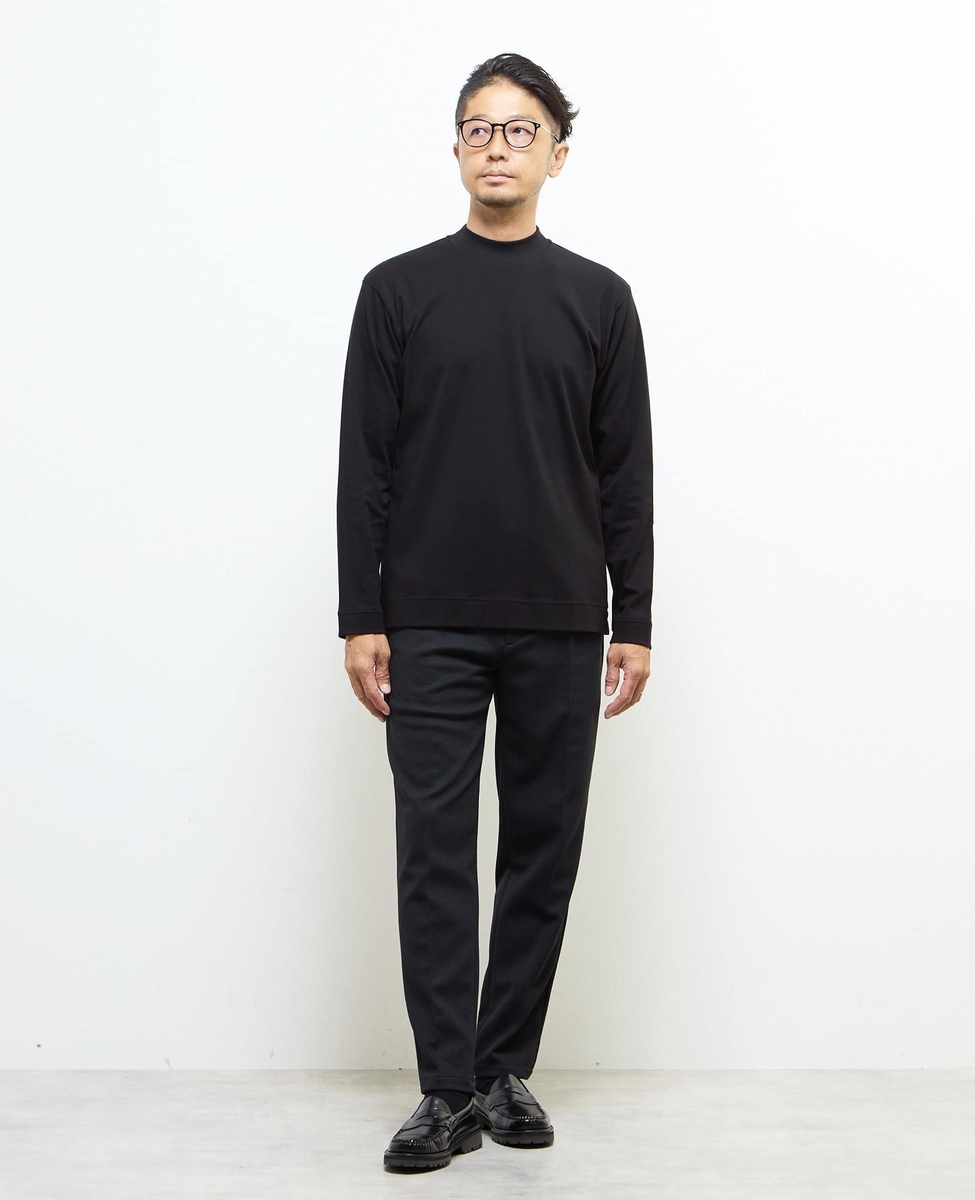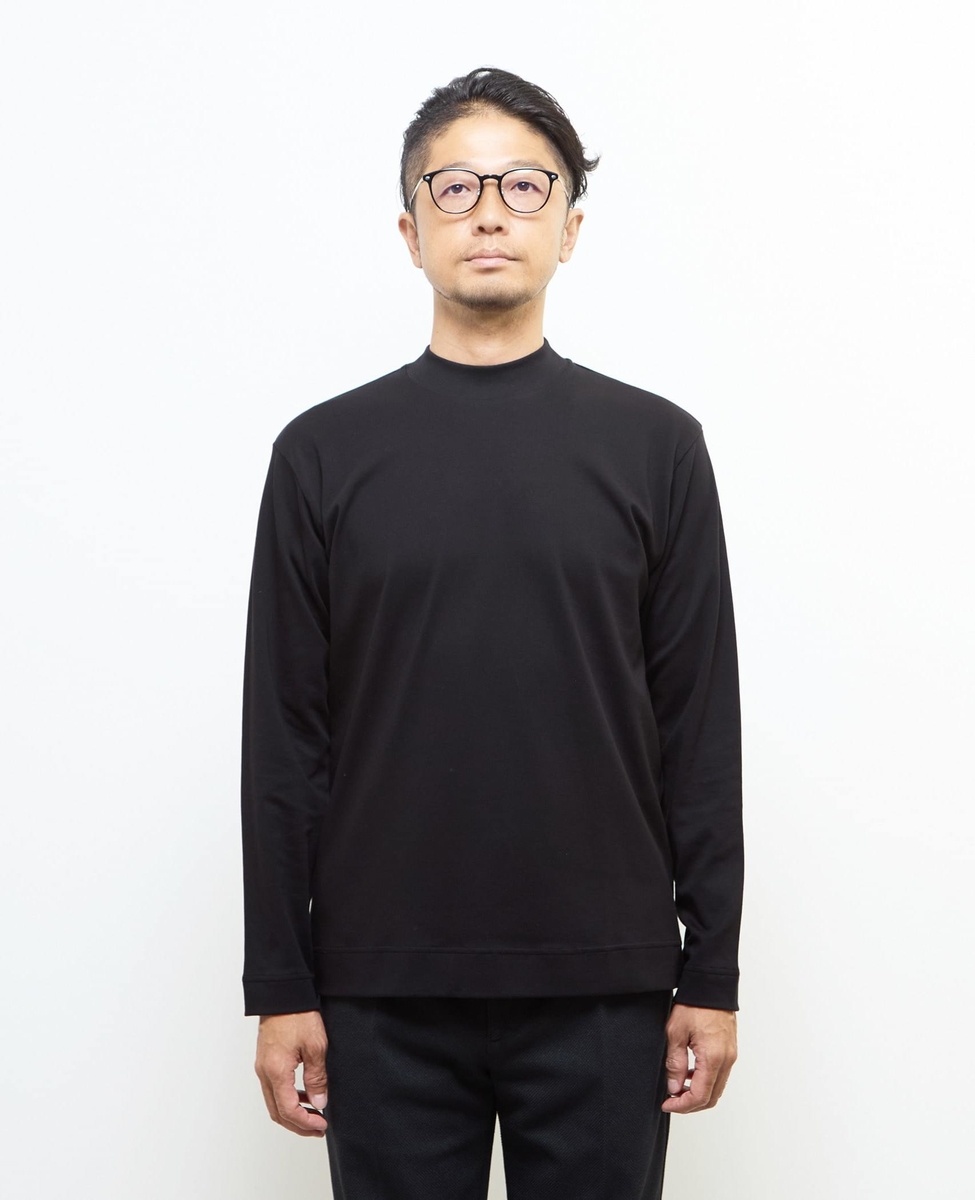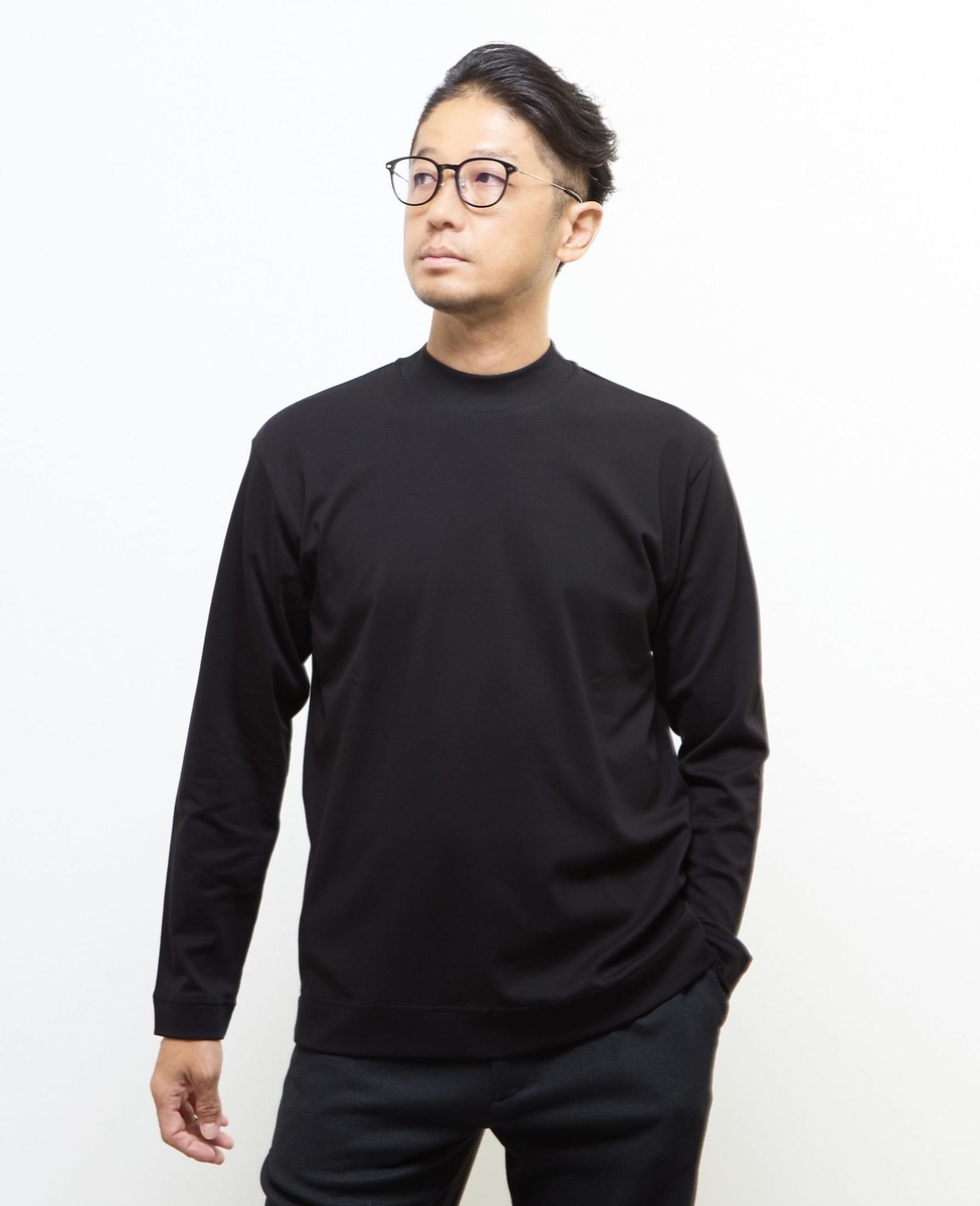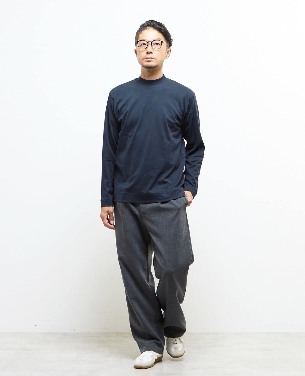 上質素材の持つ高級感抜群な見た目から、キレイめオフィスカジュアルまで対応できる優秀なモックネック長袖Tシャツです。