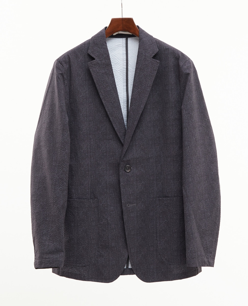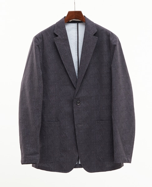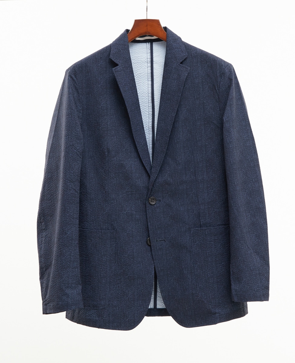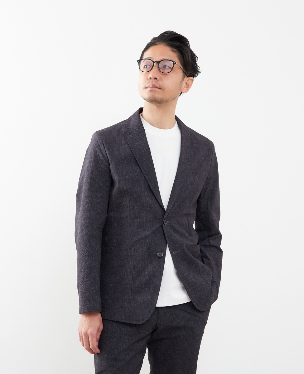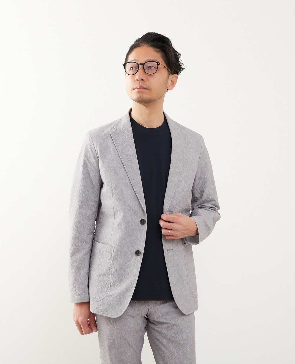 ウール調マテリアルプリントを施した清涼感抜群なサッカー素材は、カジュアル過ぎない見た目の上品な雰囲気が加わり、シンプルなカットジャケットも良い塩梅にキマってくれるという副産物をもたらせてくれます。