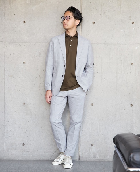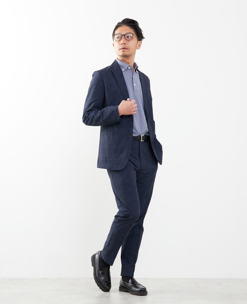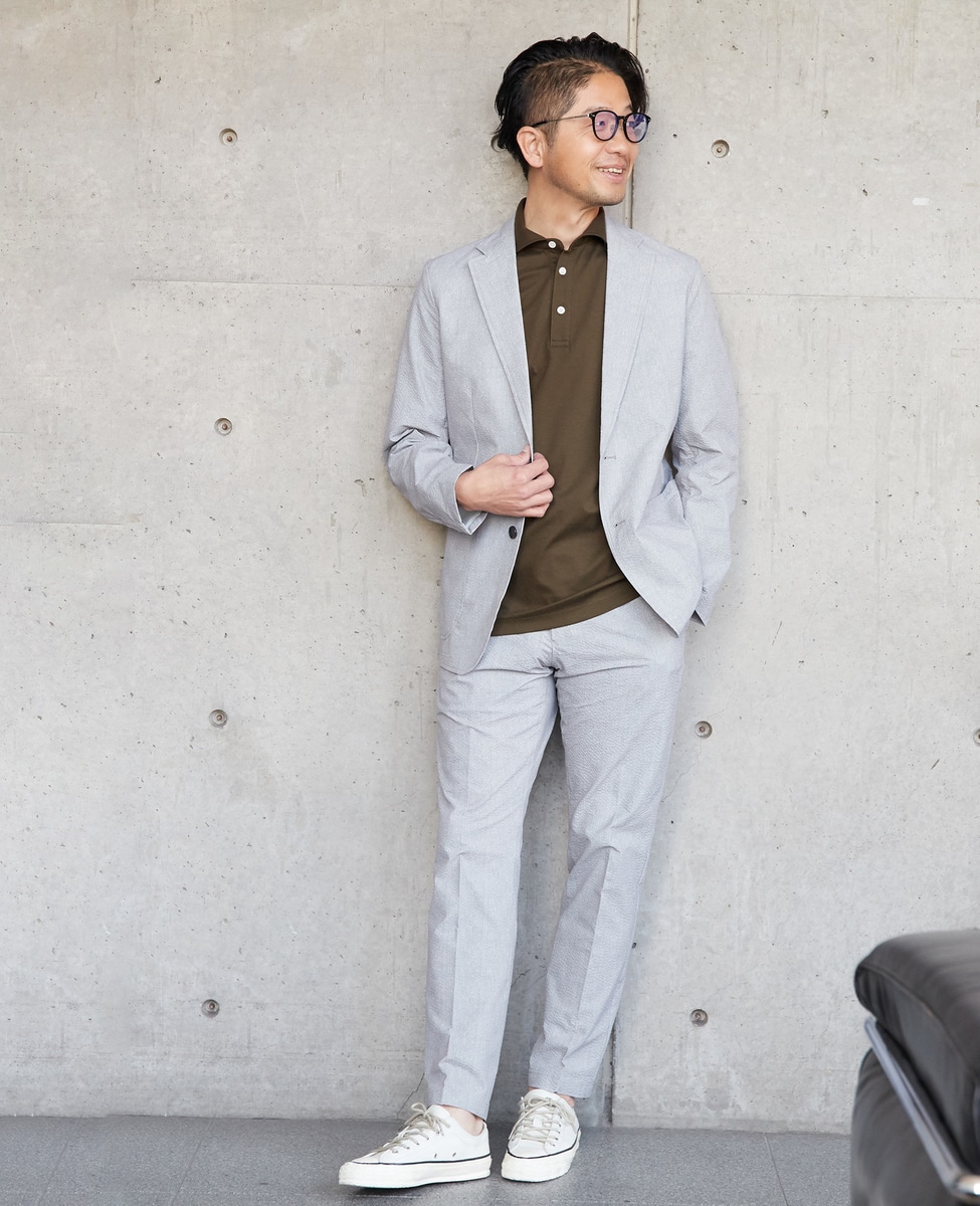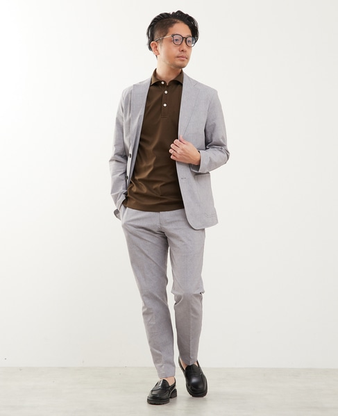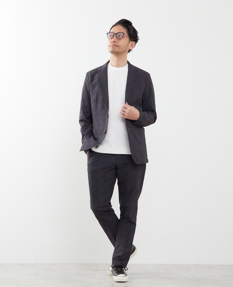 ウール調マテリアルプリントを施した清涼感抜群なサッカー素材は、カジュアル過ぎない見た目の上品な雰囲気が加わり、シンプルなカットジャケットも良い塩梅にキマってくれるという副産物をもたらせてくれます。