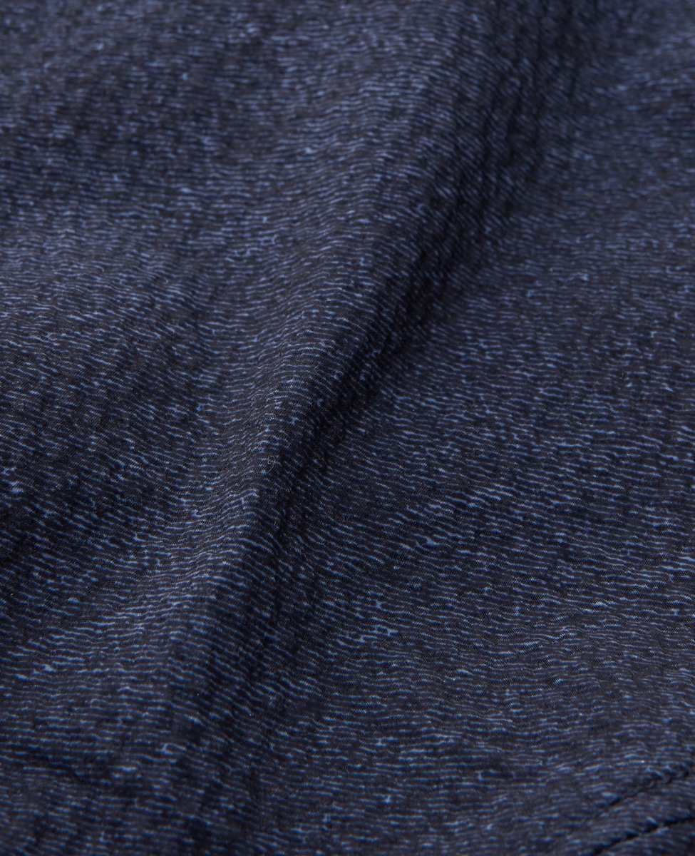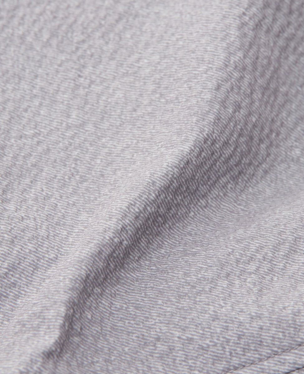清涼感を感じるサッカー素材にウール調のマテリアルプリントを施した素材は、軽くてストレッチ性があり、シワになりにくく、速乾性も高い機能素材です。
