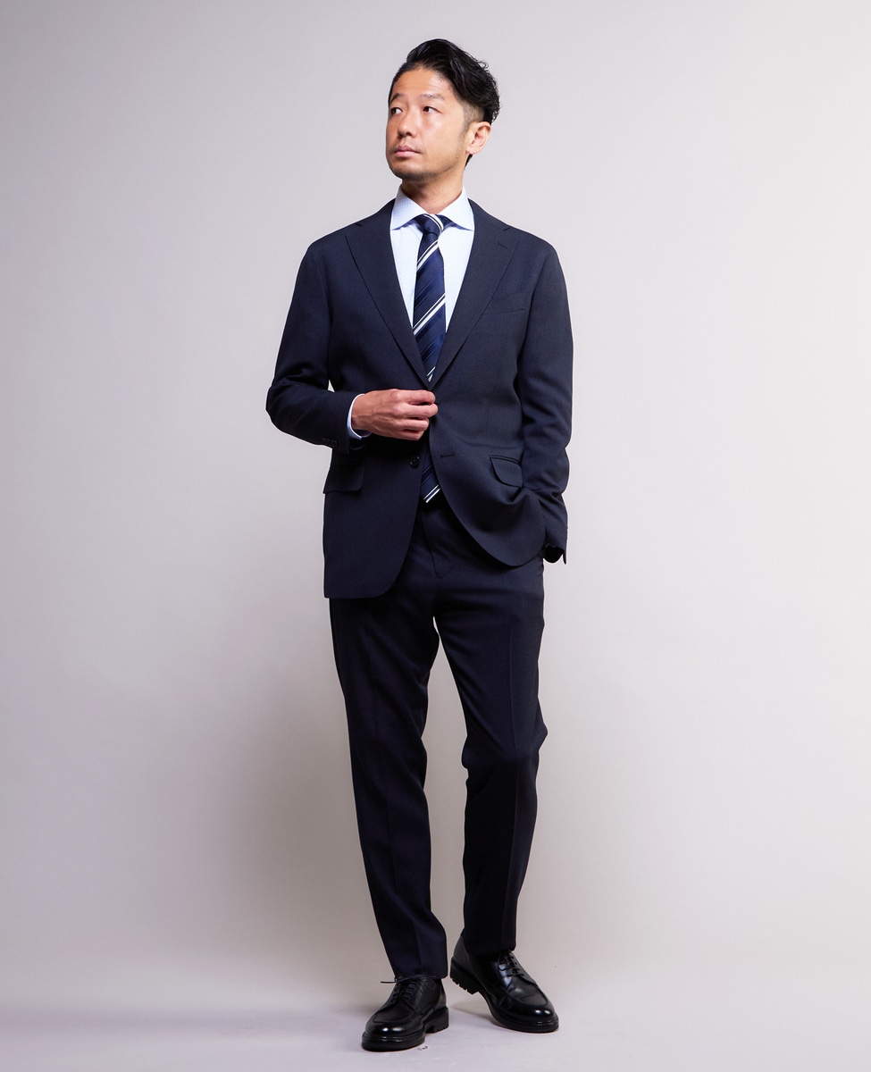 【洗練されたスタイルを演出】モダンな佇まいを感じさせる機能素材のスタイリッシュスーツ