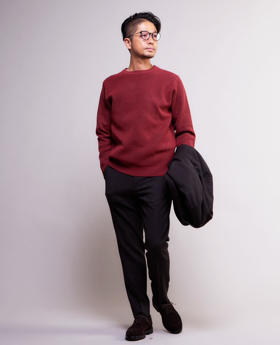 これだけの機能がありながら、梳毛、紡毛のような表情があり、クラシカルなグレンチェック柄と自然なドレープ感も楽しめるのが特徴です。