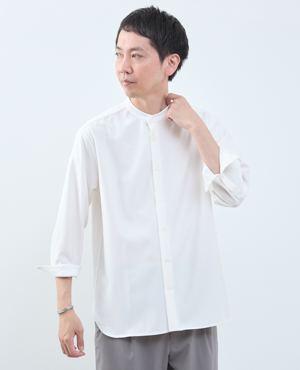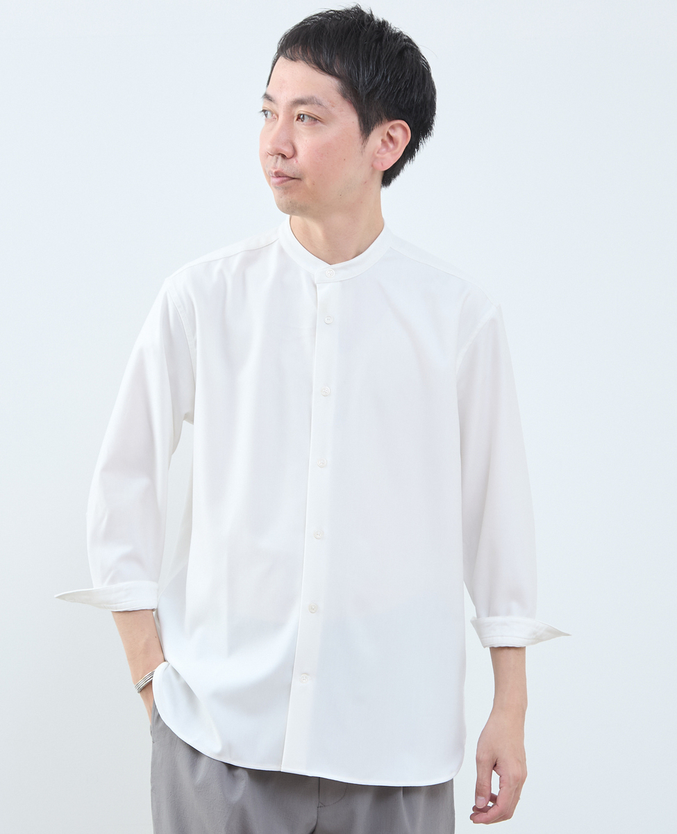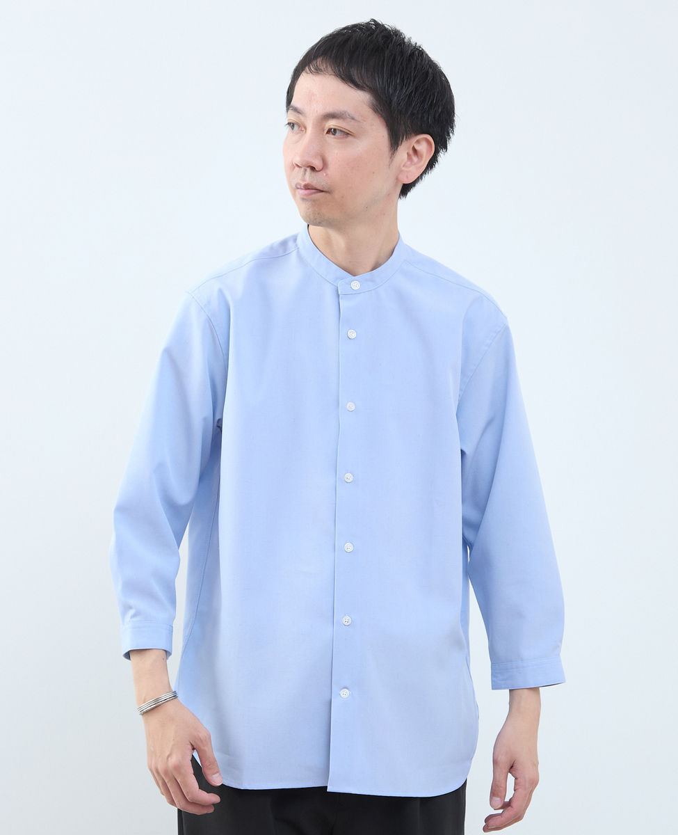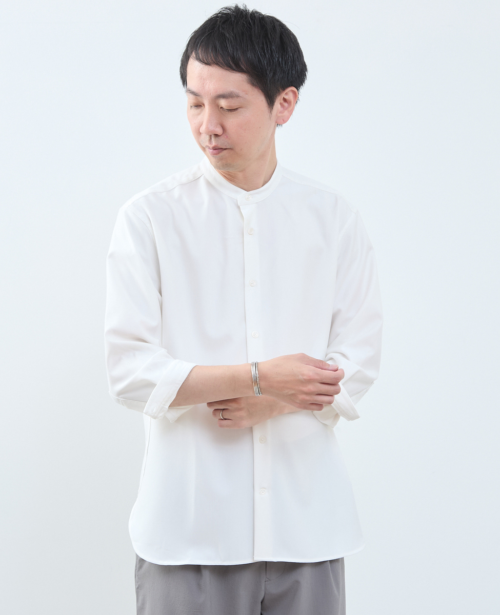マルチファブリックバンドカラー8分袖シャツ
