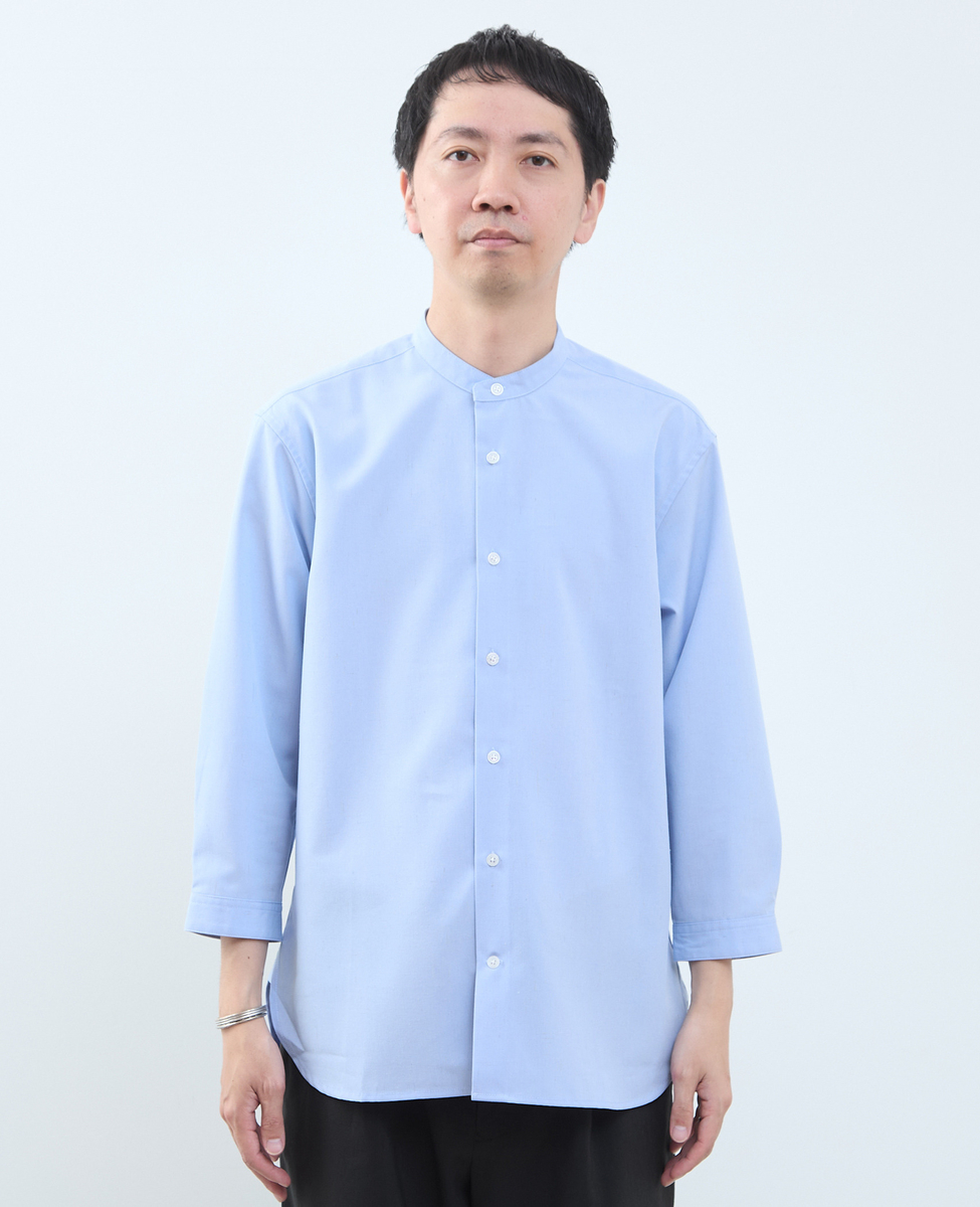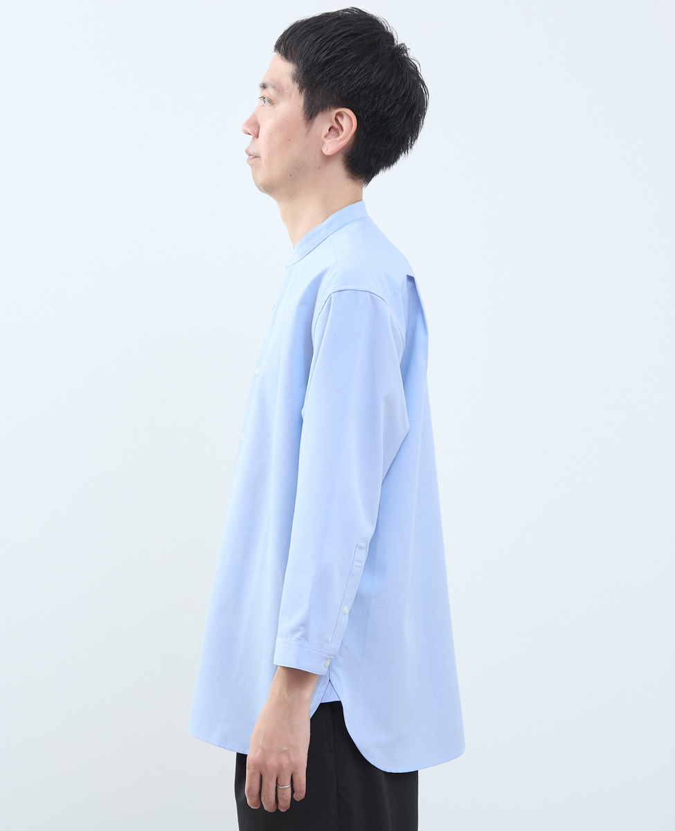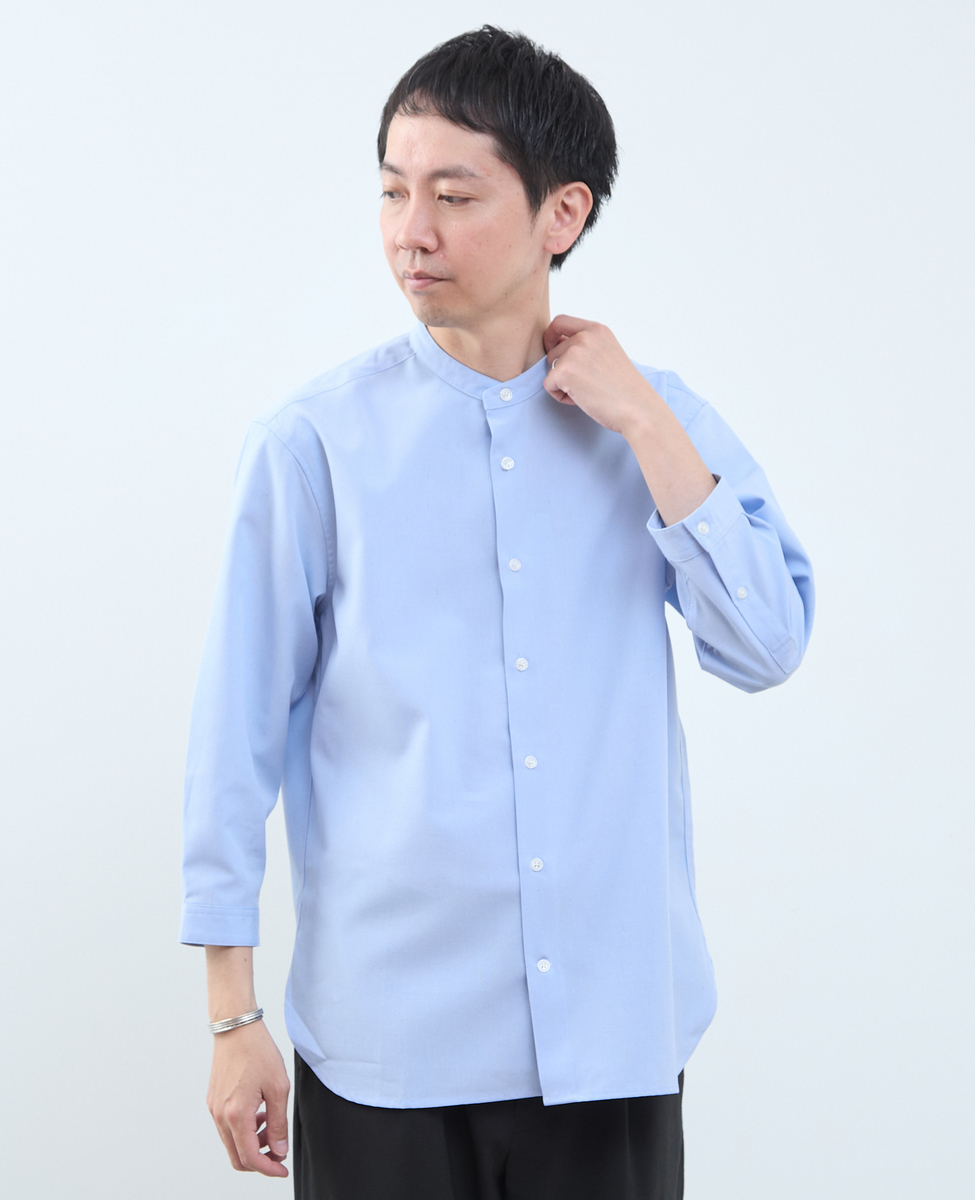 マルチファブリックバンドカラー8分袖シャツ