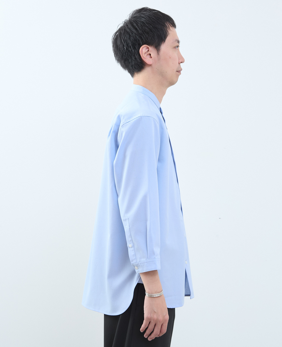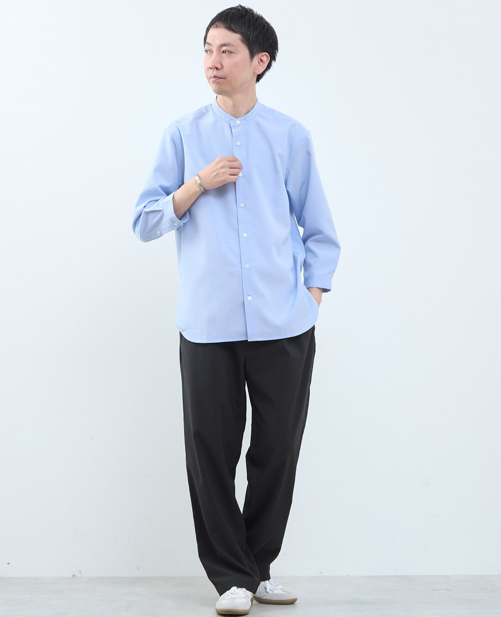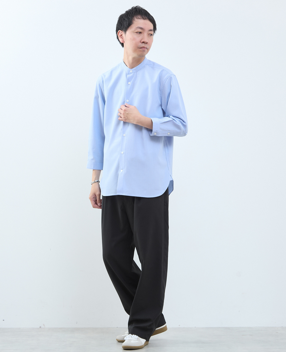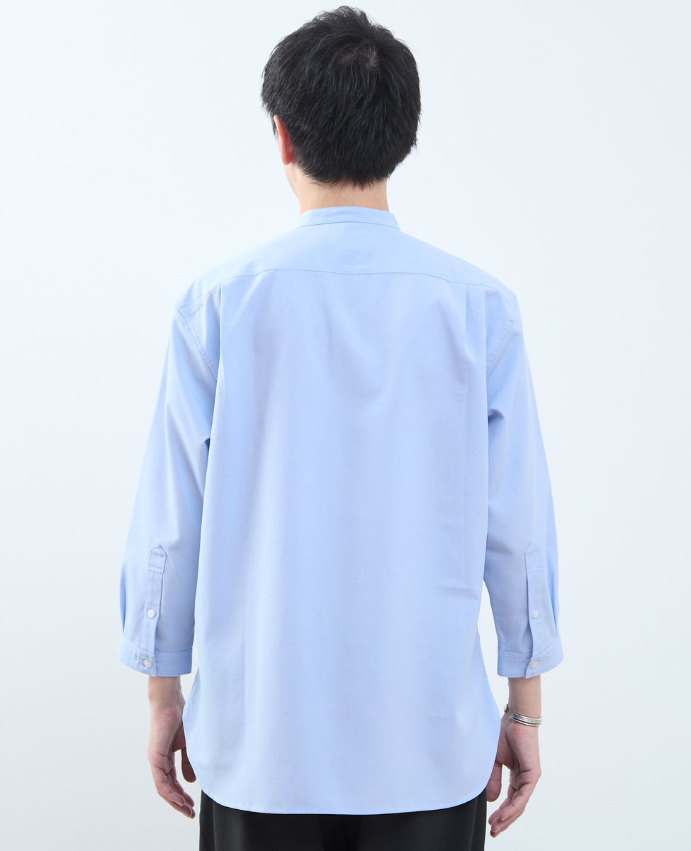 マルチファブリックバンドカラー8分袖シャツ