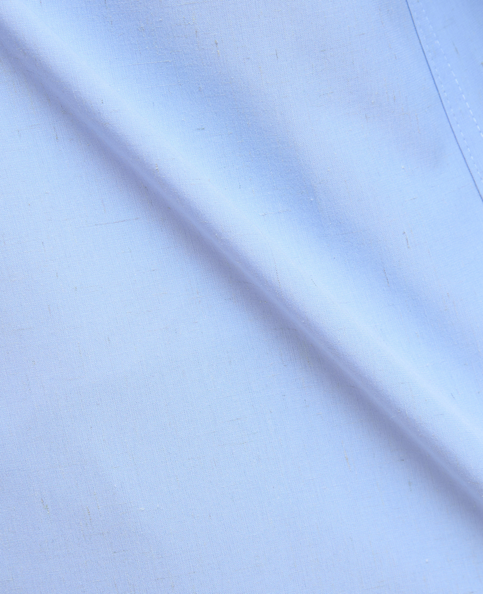 ホワイトのダンガリー、ブルーの麻混グログラン、ロンドンストライプ、それぞれの素材感が自然に馴染んだ表情豊かなバンドカラーシャツです。
