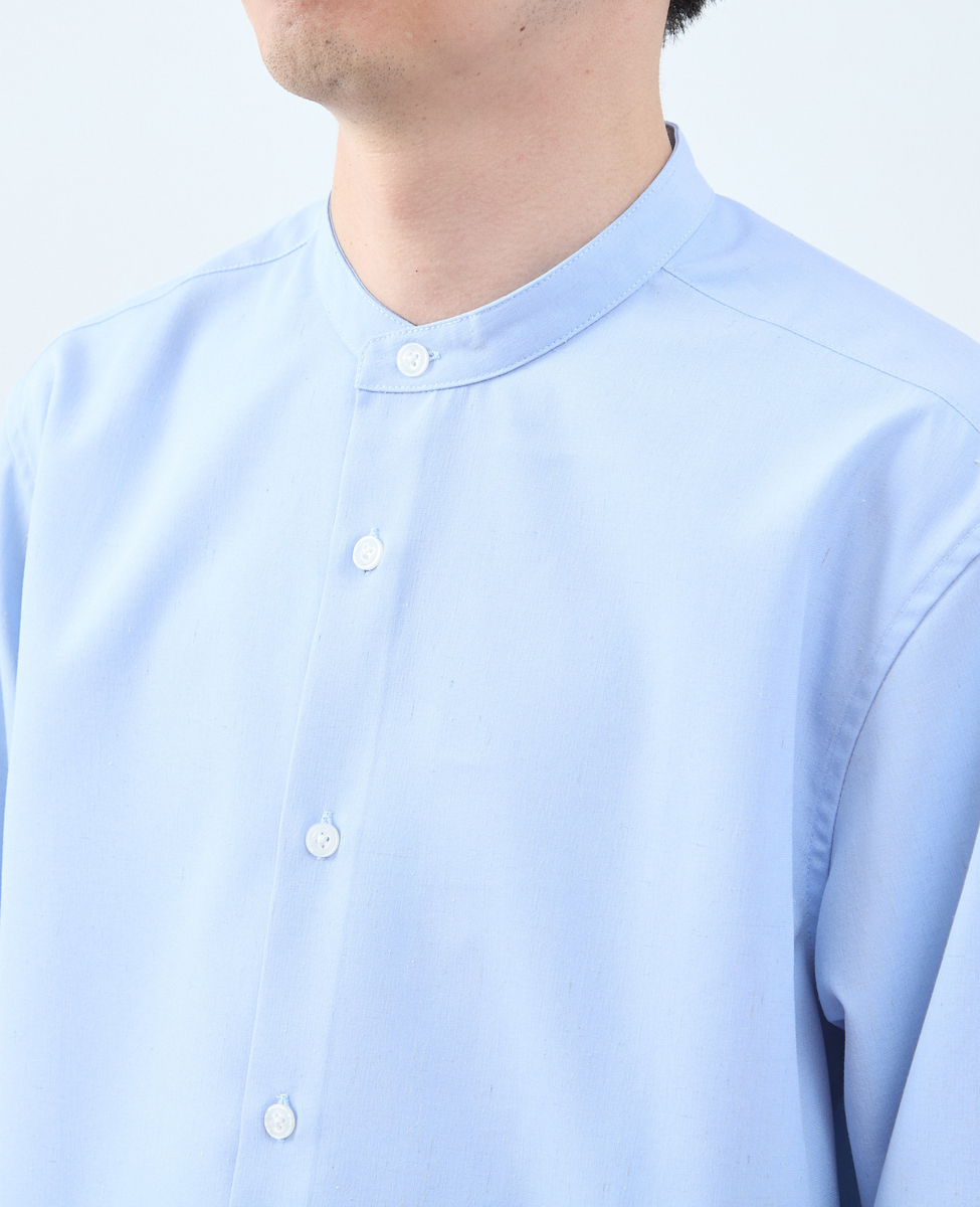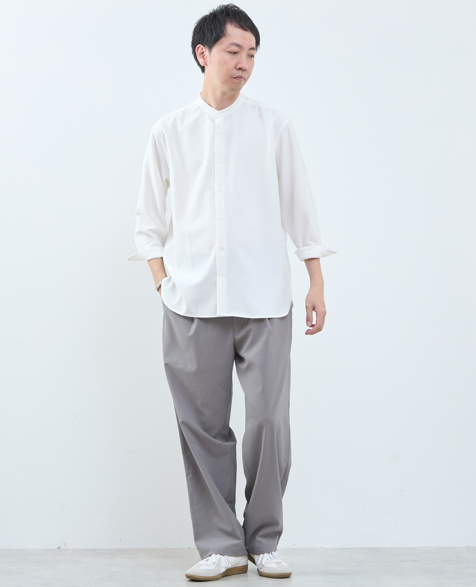 さらっと羽織るだけで今季らしい表情が完成する、大人のバンドカラーシャツ。