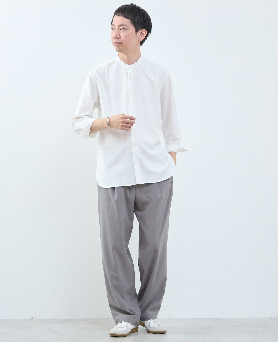• マルチファブリックバンドカラー8分袖シャツ 詳細画像 ホワイト 23