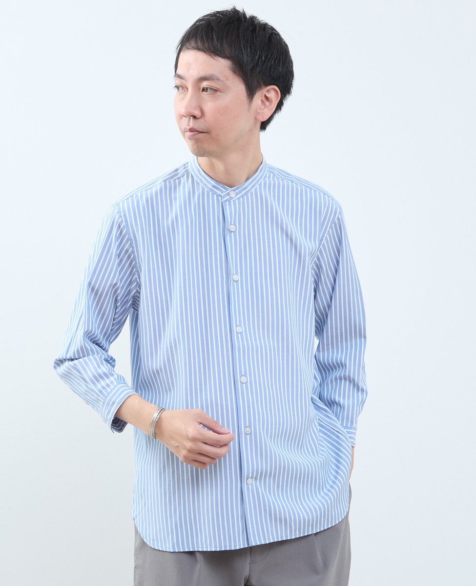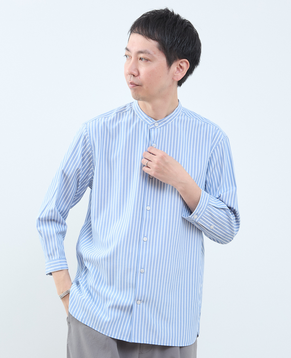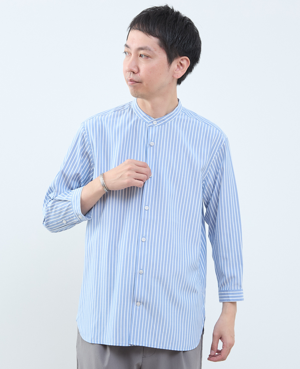 • マルチファブリックバンドカラー8分袖シャツ 詳細画像 ストライプ 1