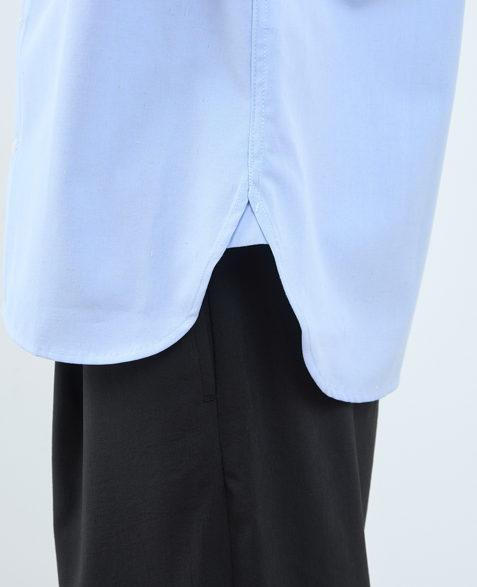 脇のラウンドカットを深く設定することで羽織りシャツとしての使いやすさもアップ。