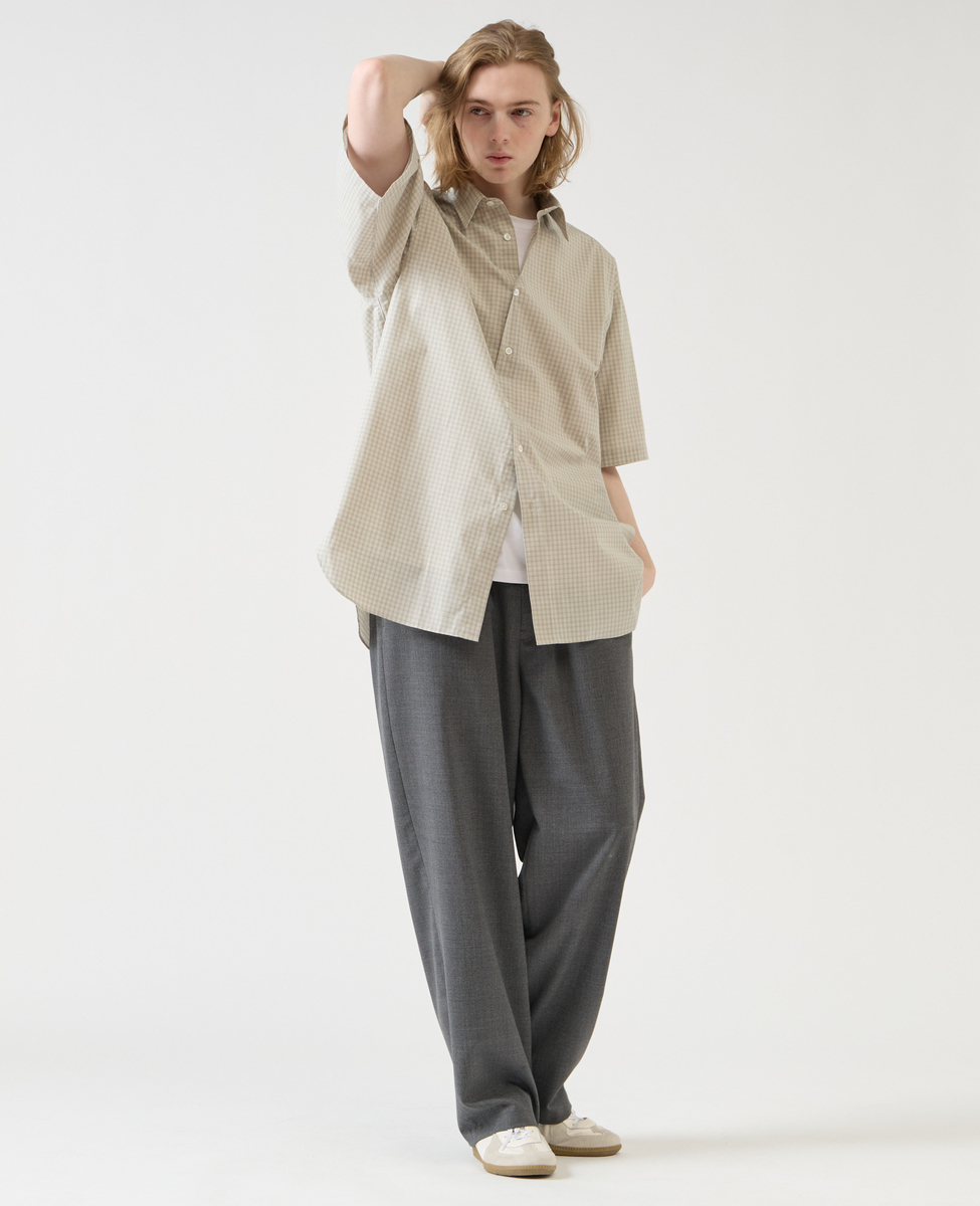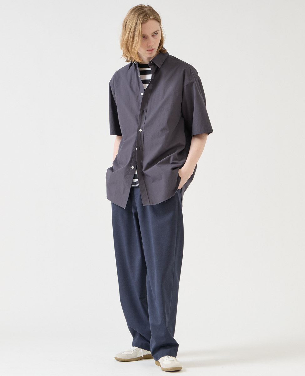 クラシックなドレスシャツをベースに適度に抜け感を加えたレギュラーカラーのハーフスリーブシャツです。
