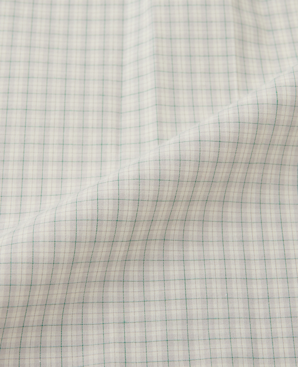 ふくらみがあり、上質なタッチが生まれるオーガニックコットンを使ったチェック柄と無地のタイプライター素材です。