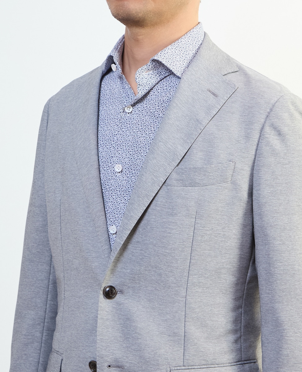 オーソドックスな一重(袖裏付き)のシングルジャケットですが、裏の縫い代処理の仕様にこだわり、スーツ工場にて縫製されたドレス顔のカジュアルジャケットに仕上げました。