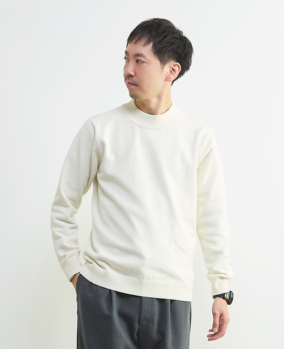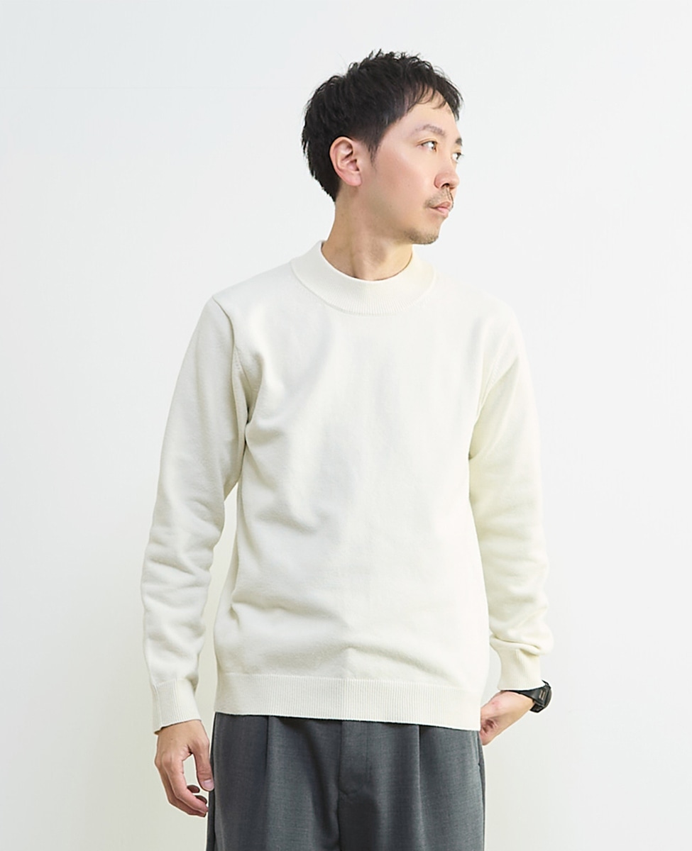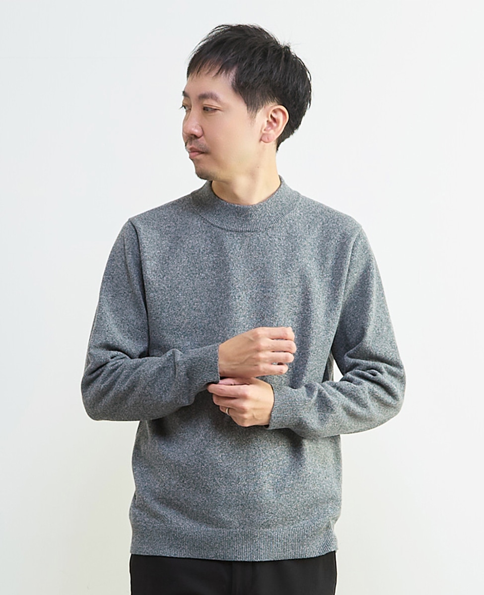 ラムウールライクモックネックニット