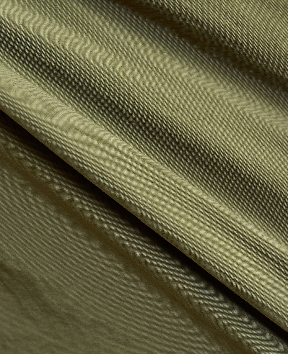 ドライタッチと製品洗いを施したようなワッシャー感が特徴で、撥水性に加え風を通しにくい、水陸両用素材を使用しています。