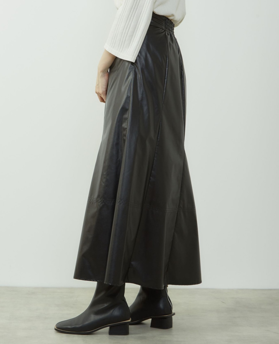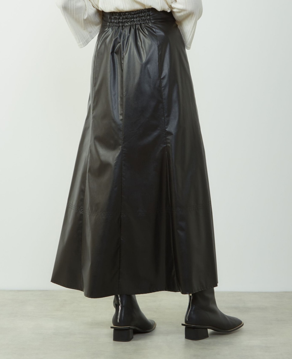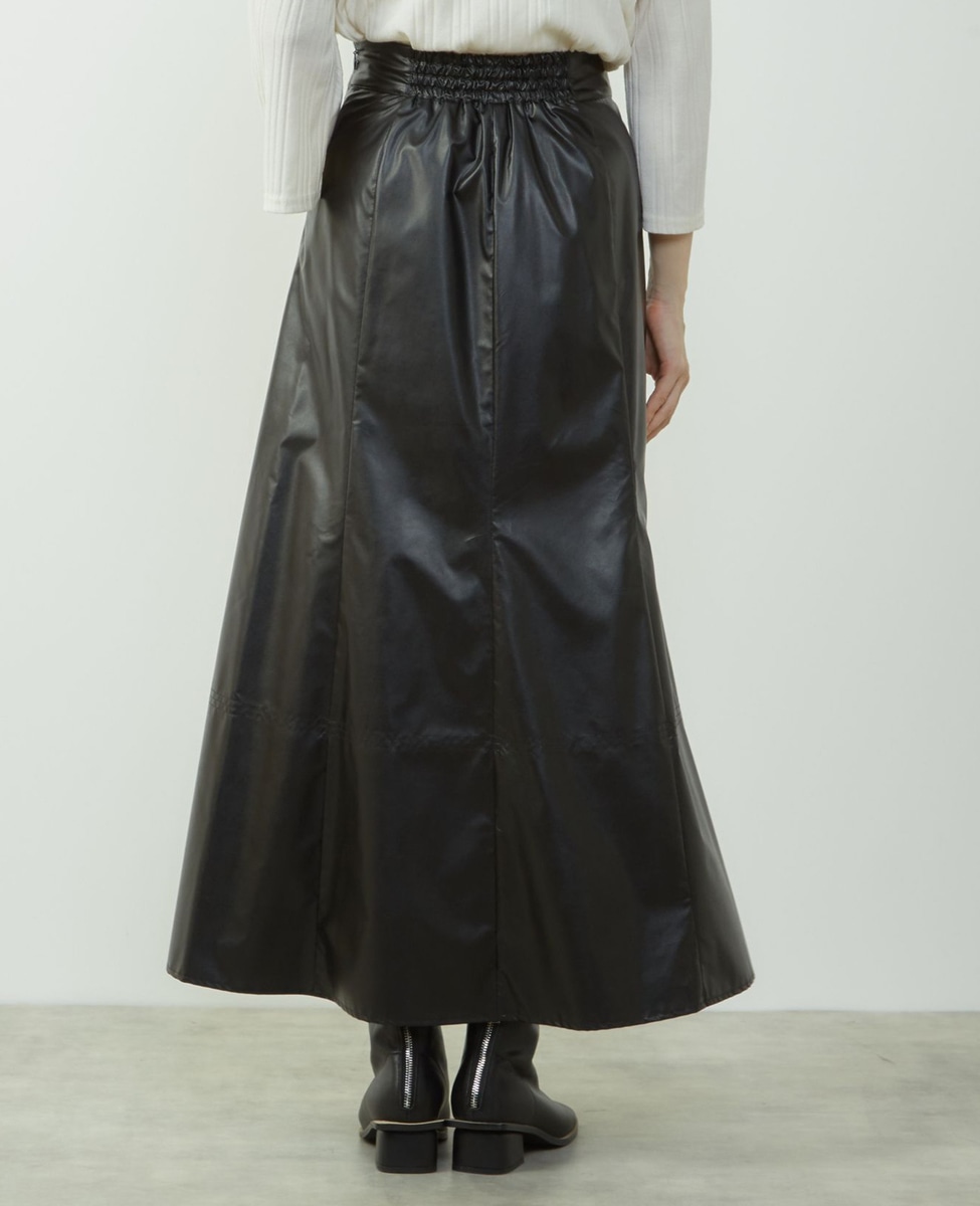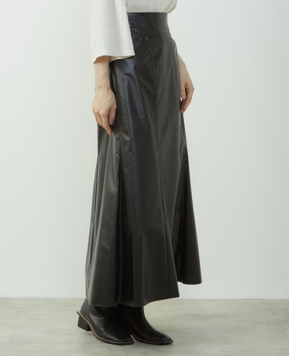 エナメルフェイクレザーパネルスカート