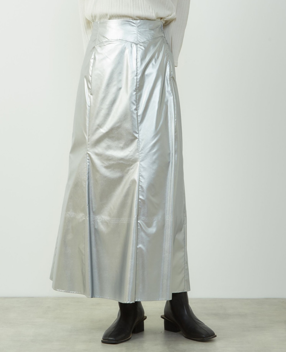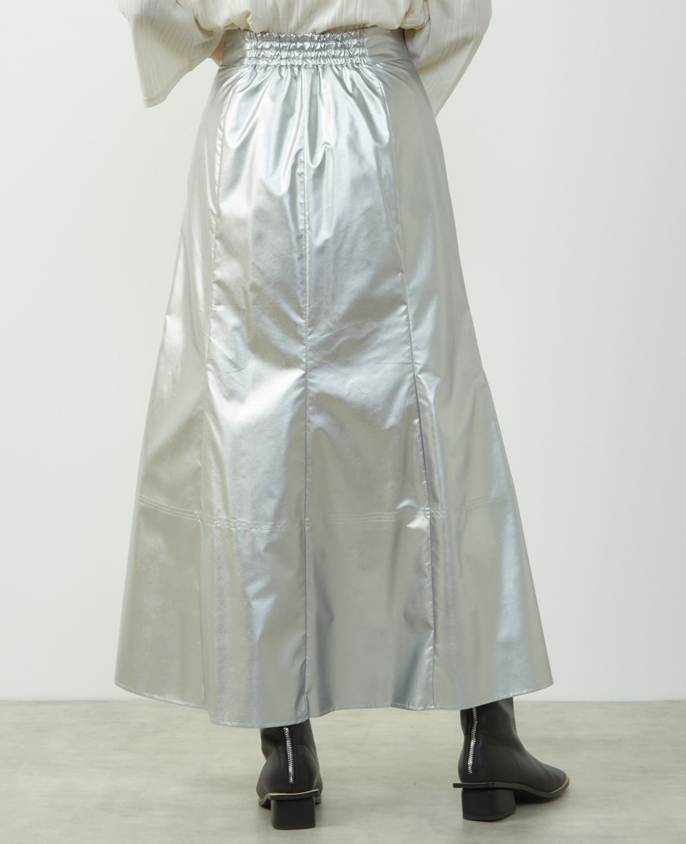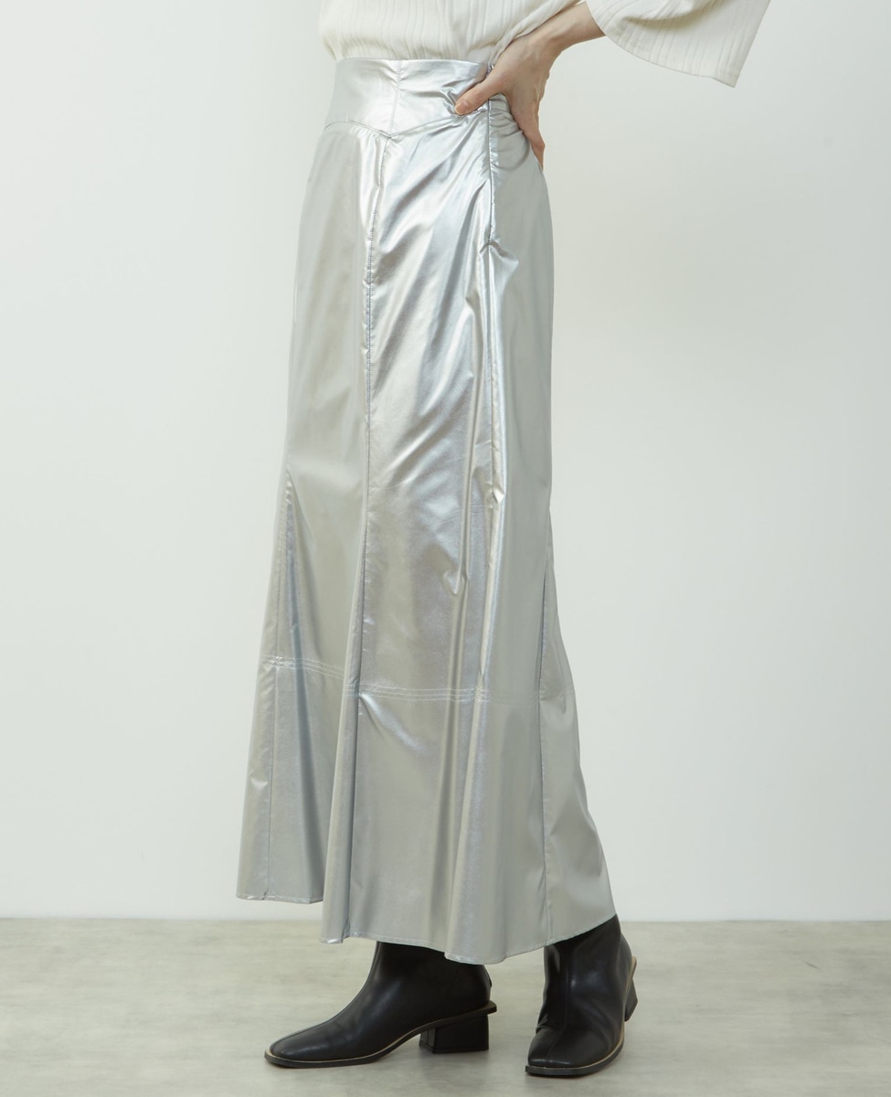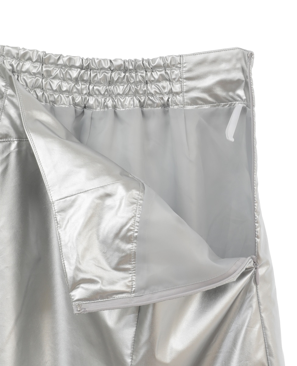 エナメルフェイクレザーパネルスカート