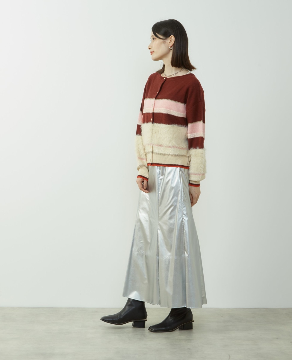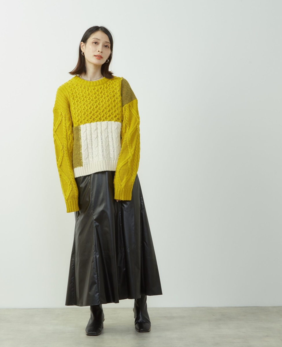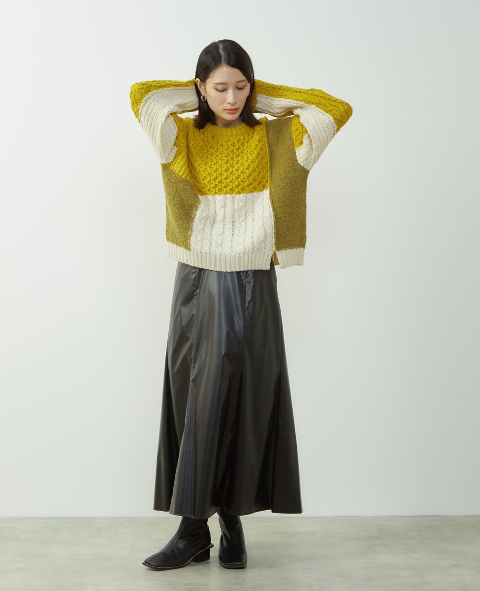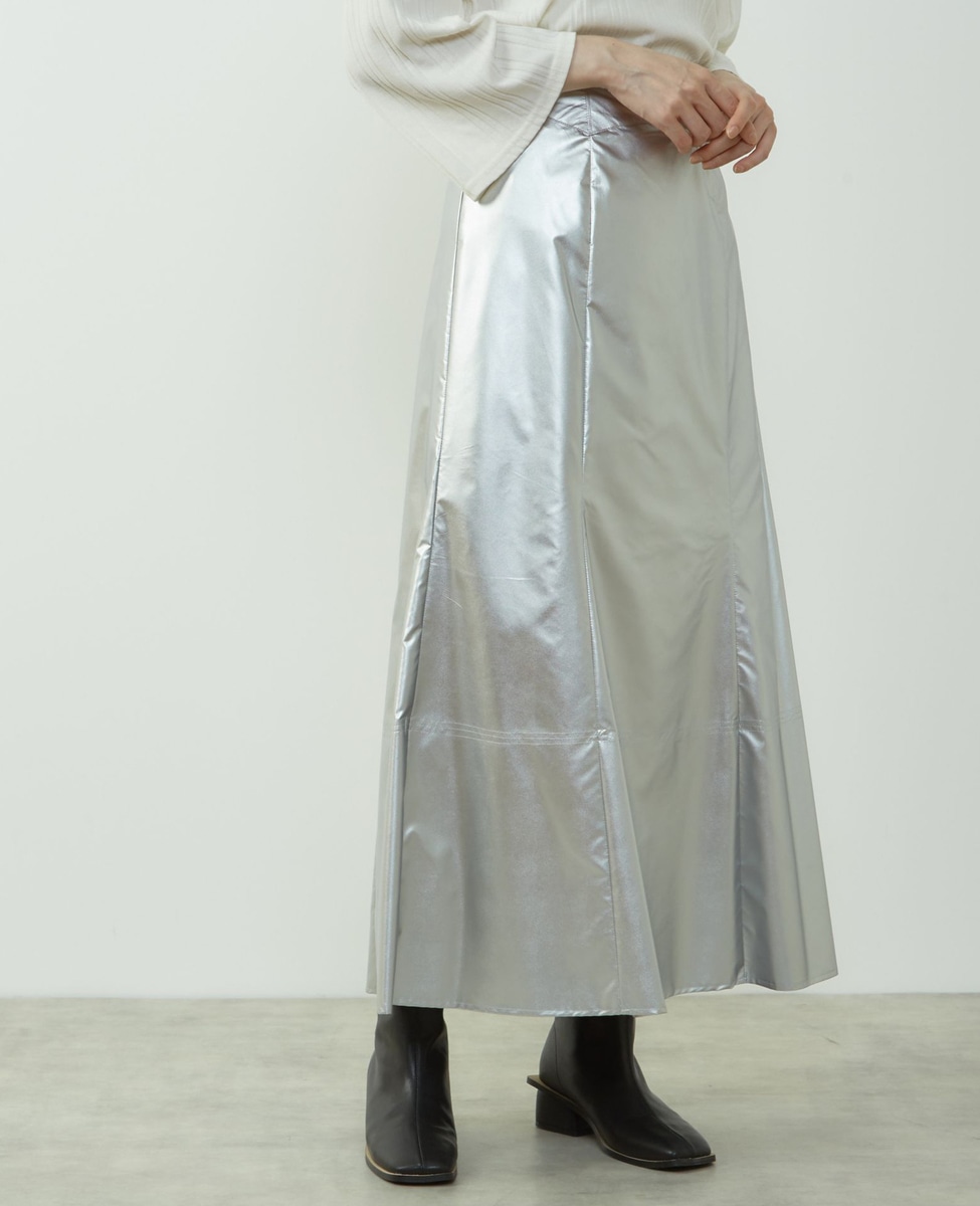 エナメルフェイクレザーパネルスカート