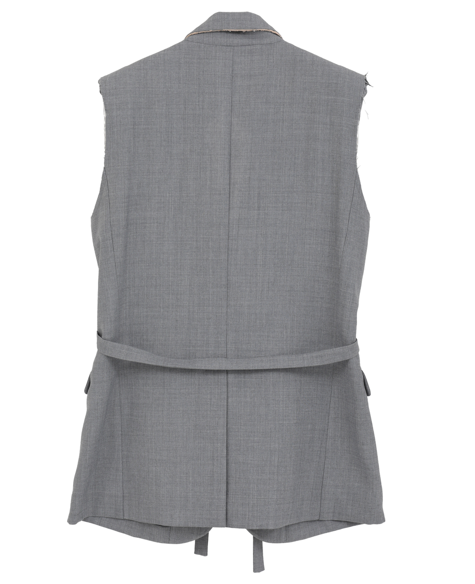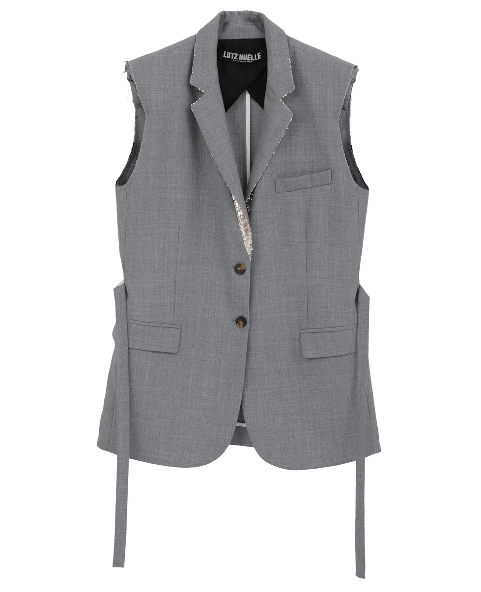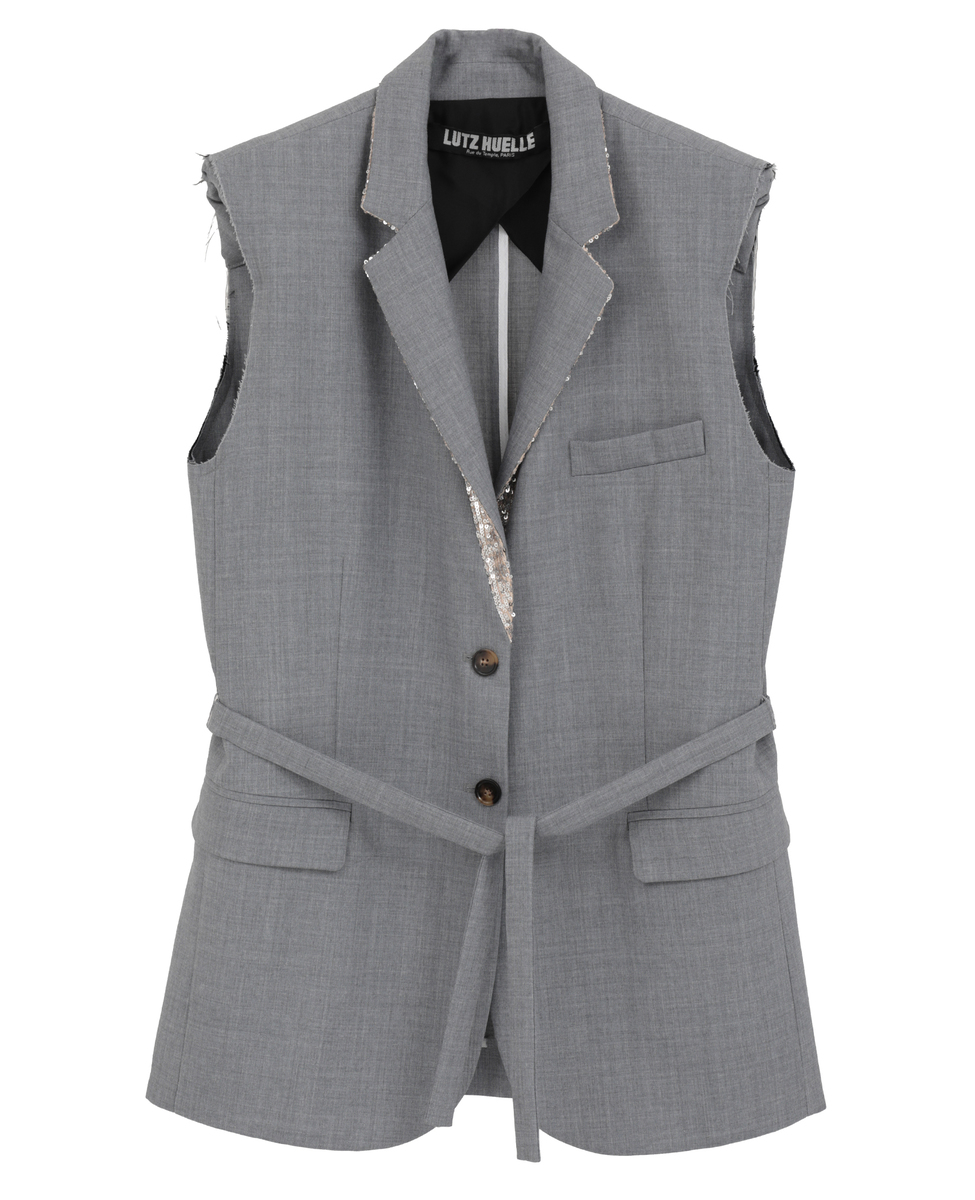 【LUTZ HUELLE/ルッツヒュエル】ベルト付きカットオフ・テーラードロングベスト