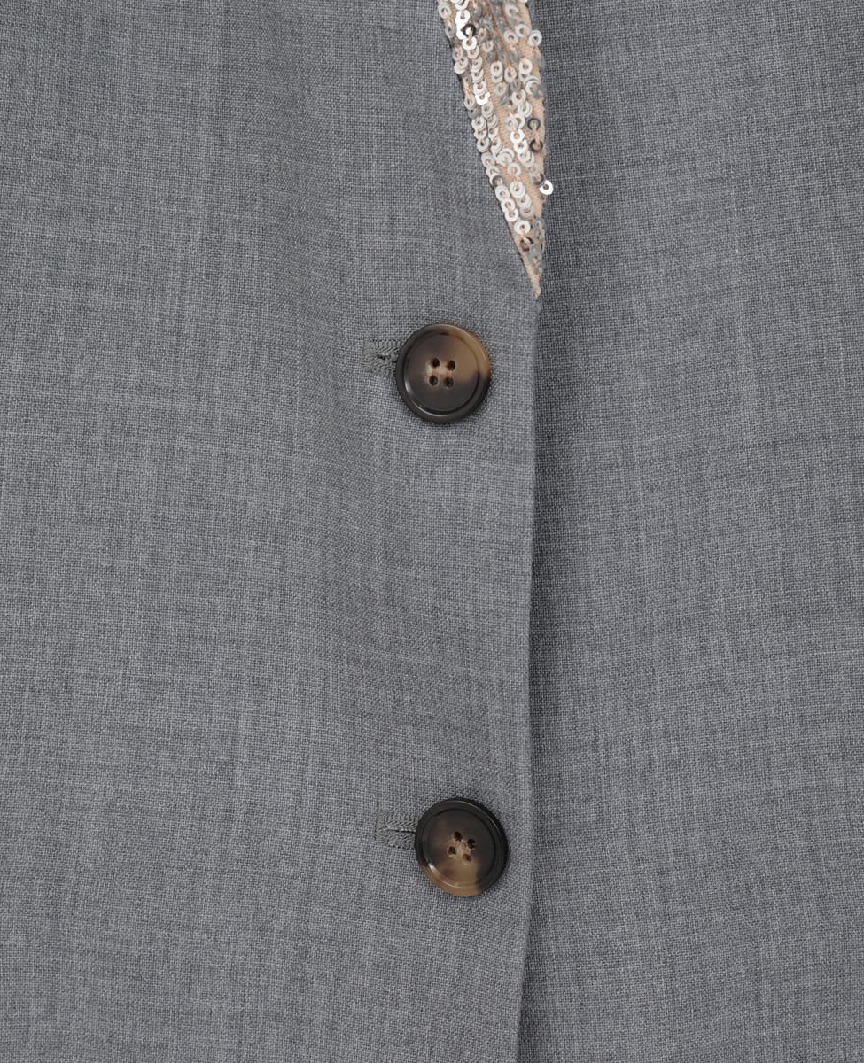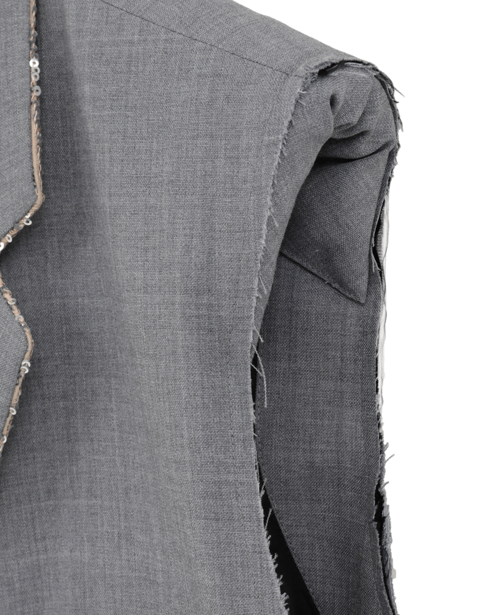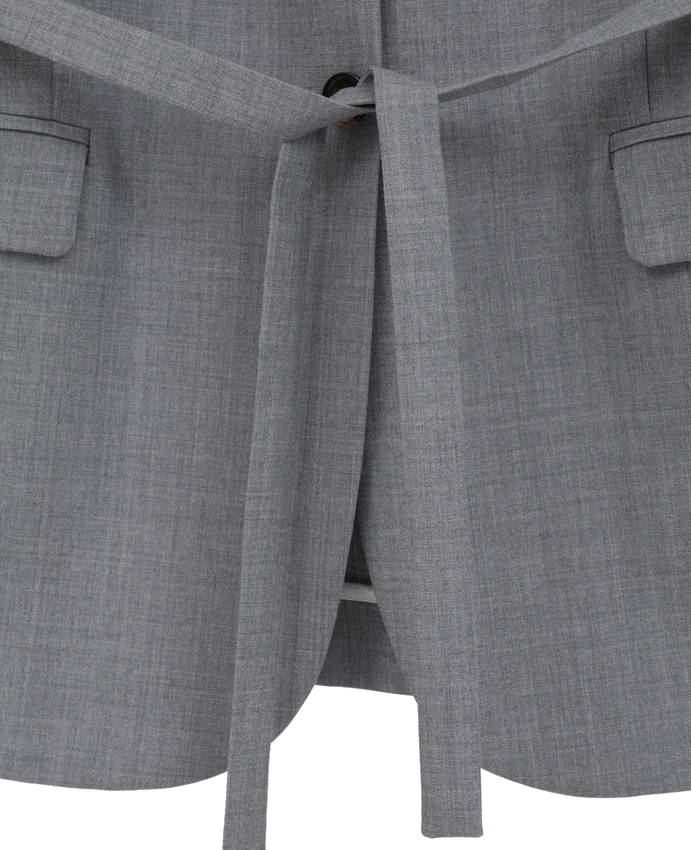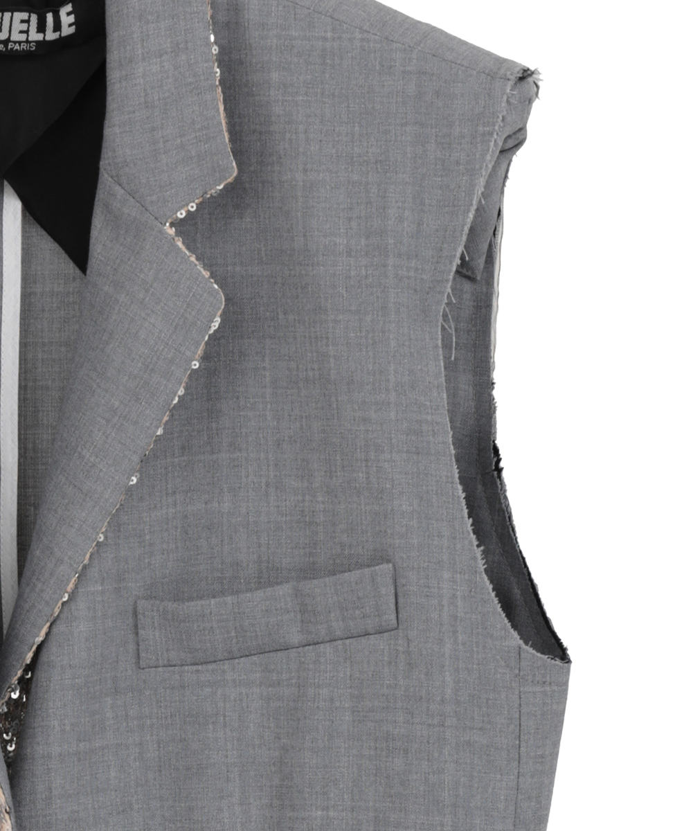 【LUTZ HUELLE/ルッツヒュエル】ベルト付きカットオフ・テーラードロングベスト
