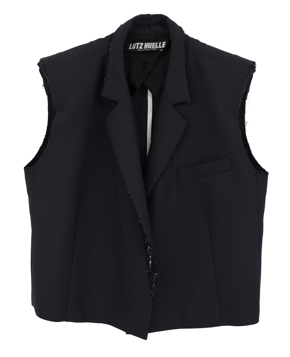 【LUTZ HUELLE/ルッツヒュエル】カットオフディテール・テーラードベスト