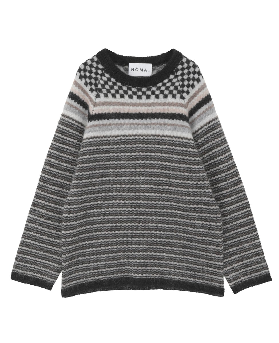 【NOMA t.d./ノーマティーディー】Checker And Striped Sweater