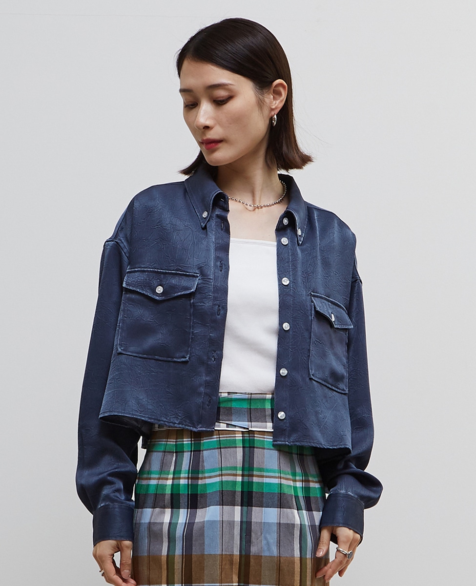ヴィンテージライクボタンダウンショート丈ブラウス