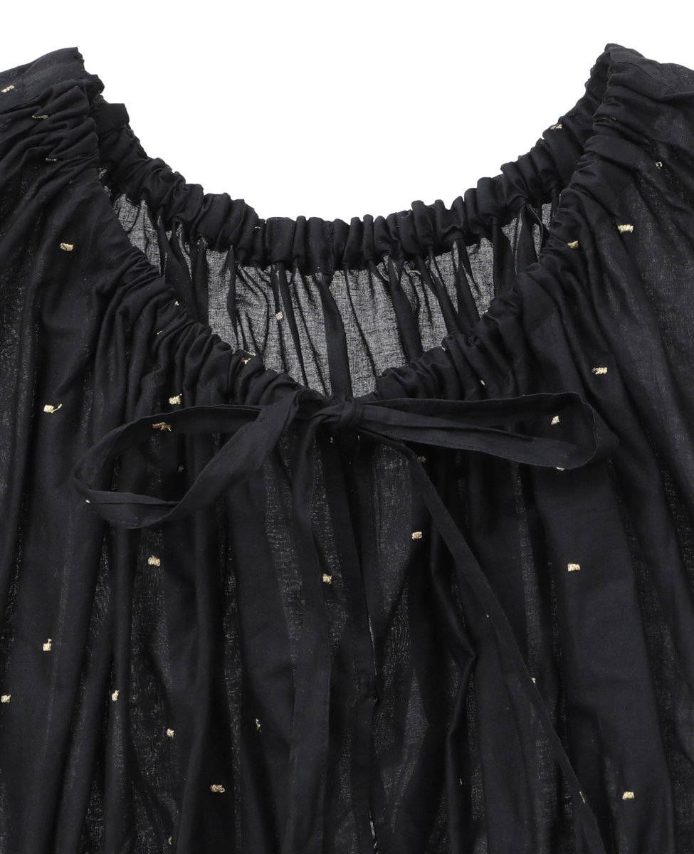 インド綿ドット刺繍ギャザーボレロブラウス