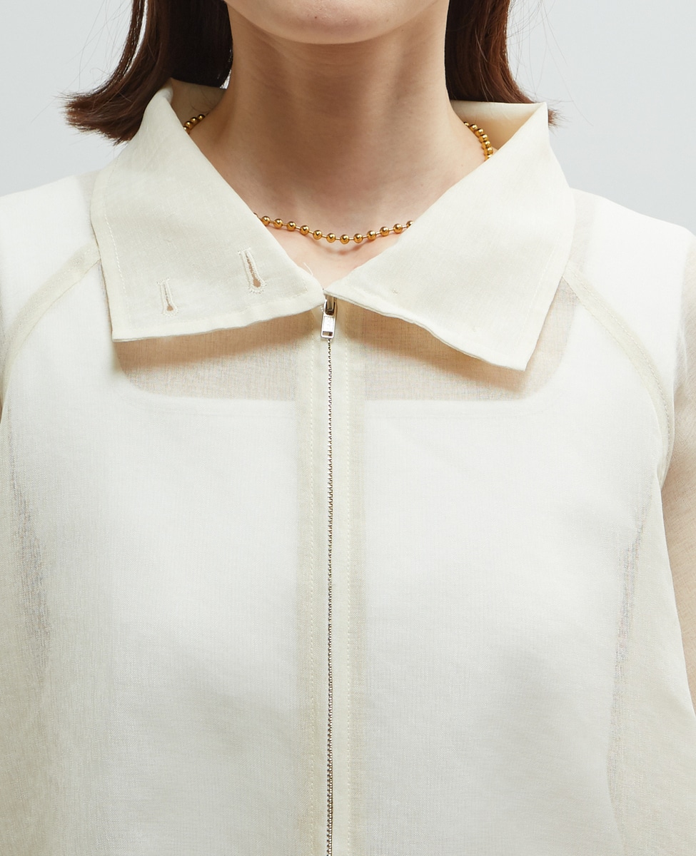 スタンドカラーは折り返してフラットカラーのようにも着用できます。