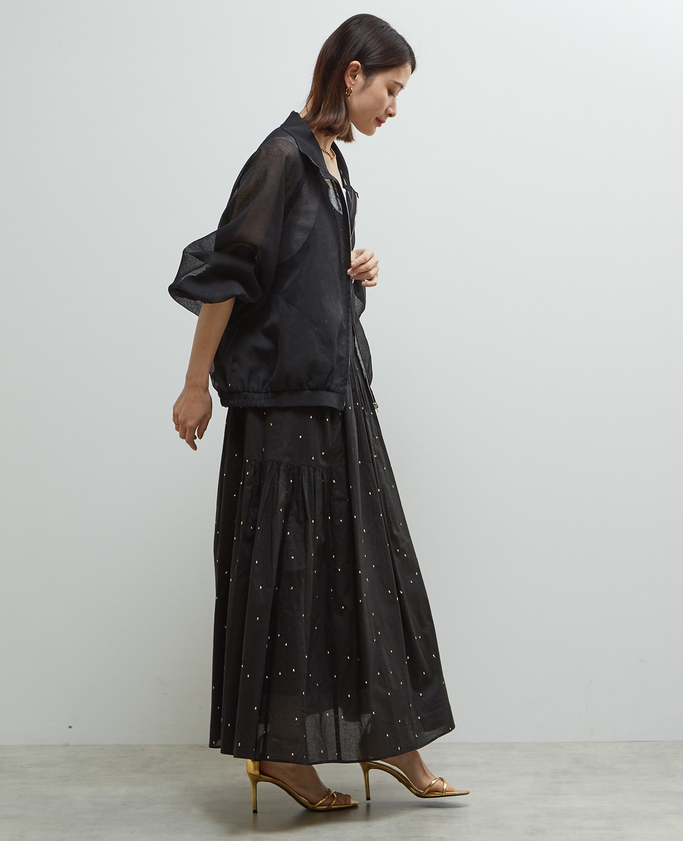 清涼感のある素材感とシワになりずらく扱いやすいのもポイント。