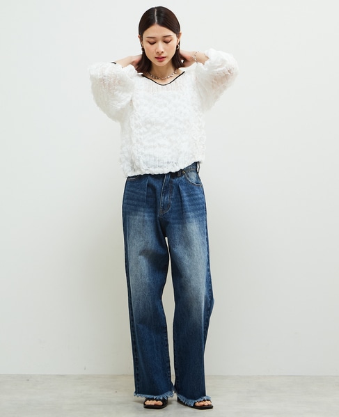 ウエストと裾をカットオフにしていてインしても着やすいパンツです。