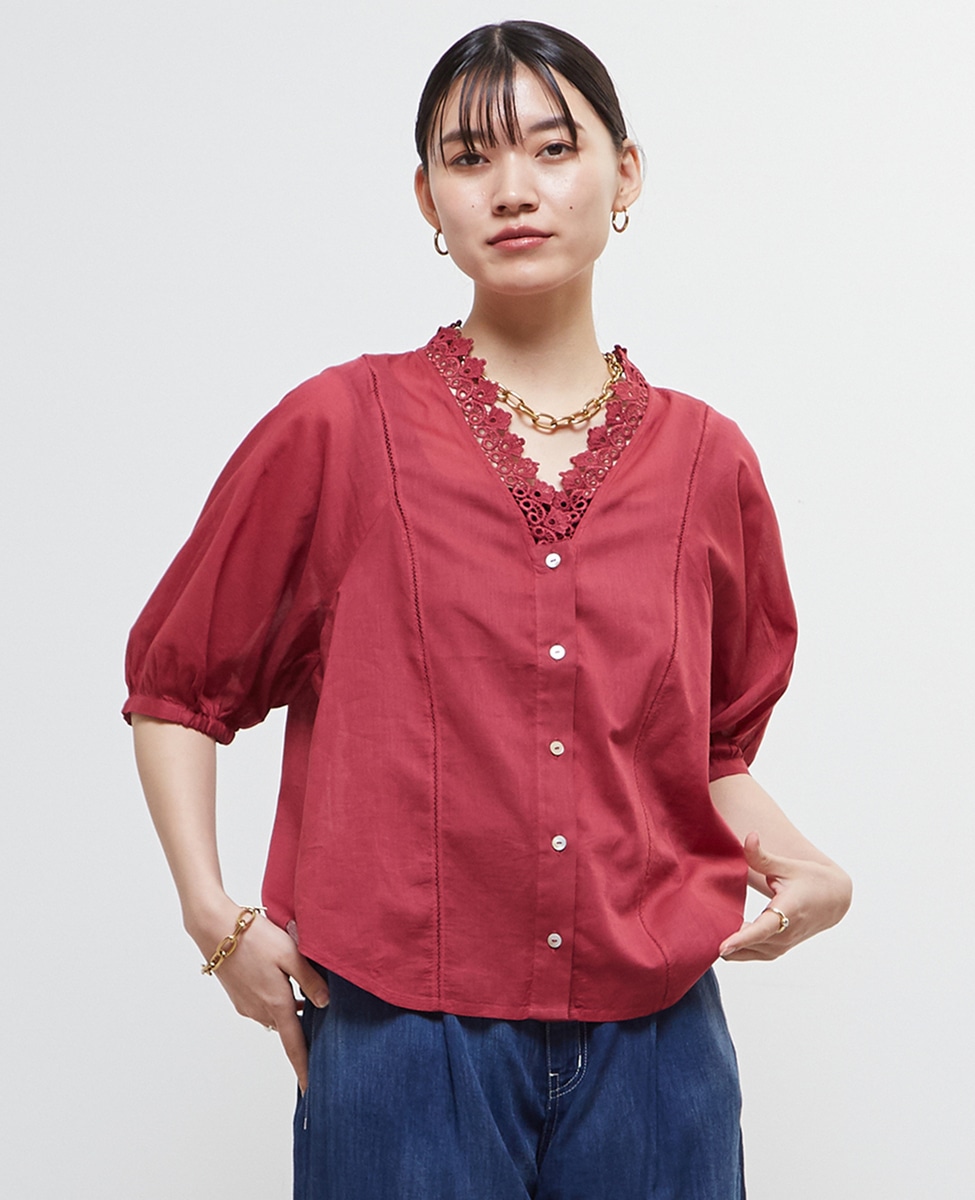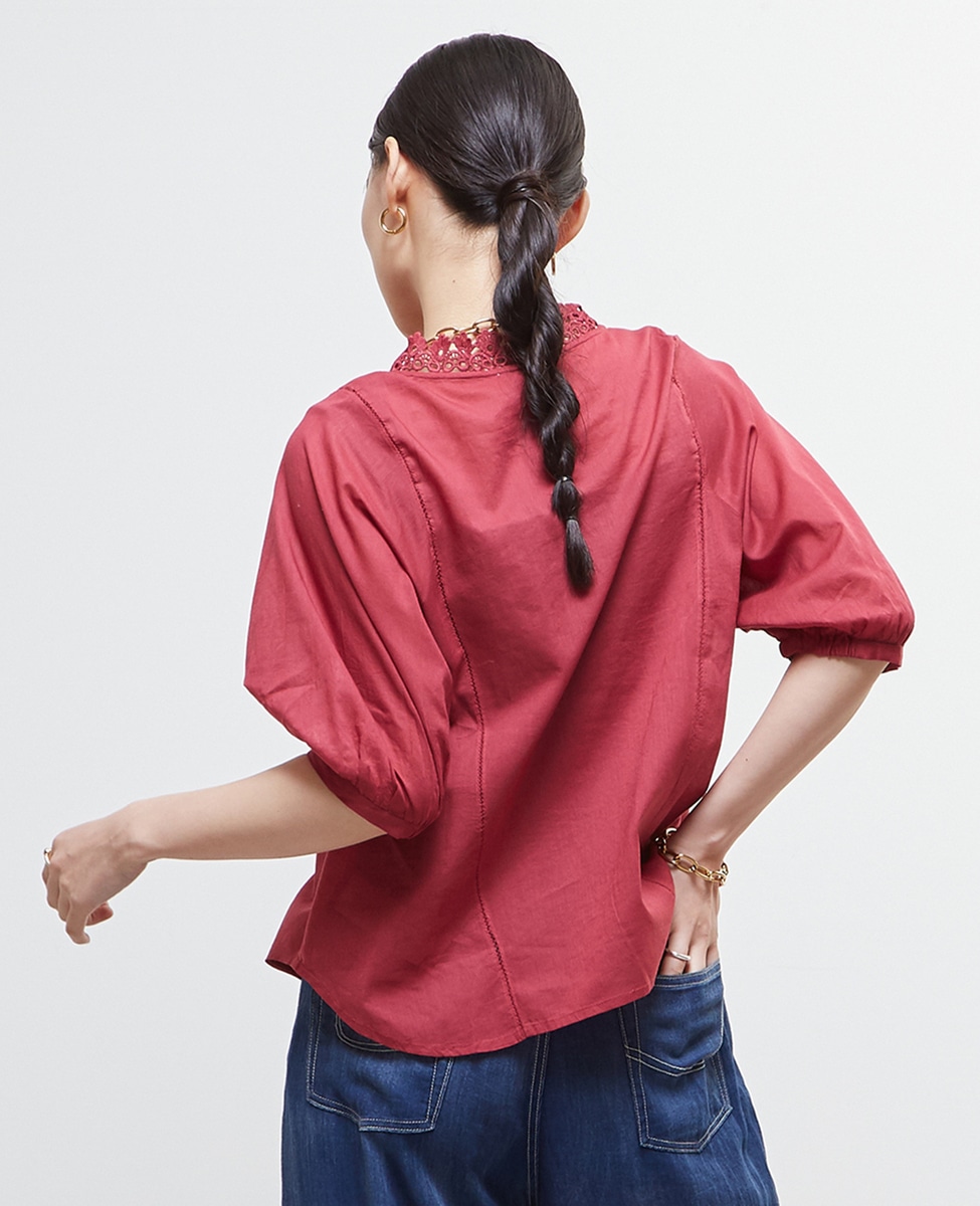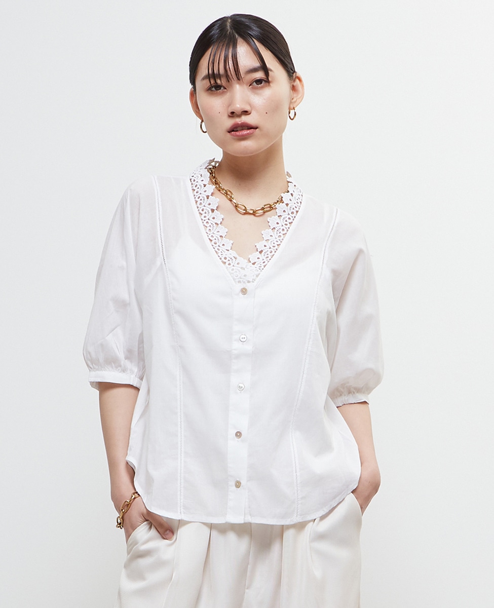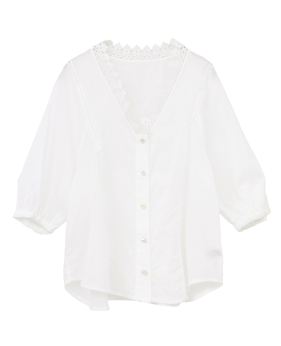 インド綿レース衿ブラウス