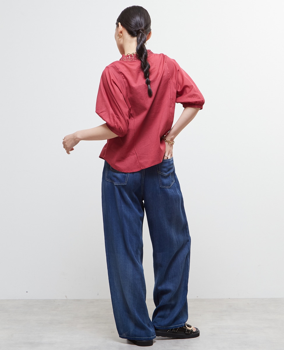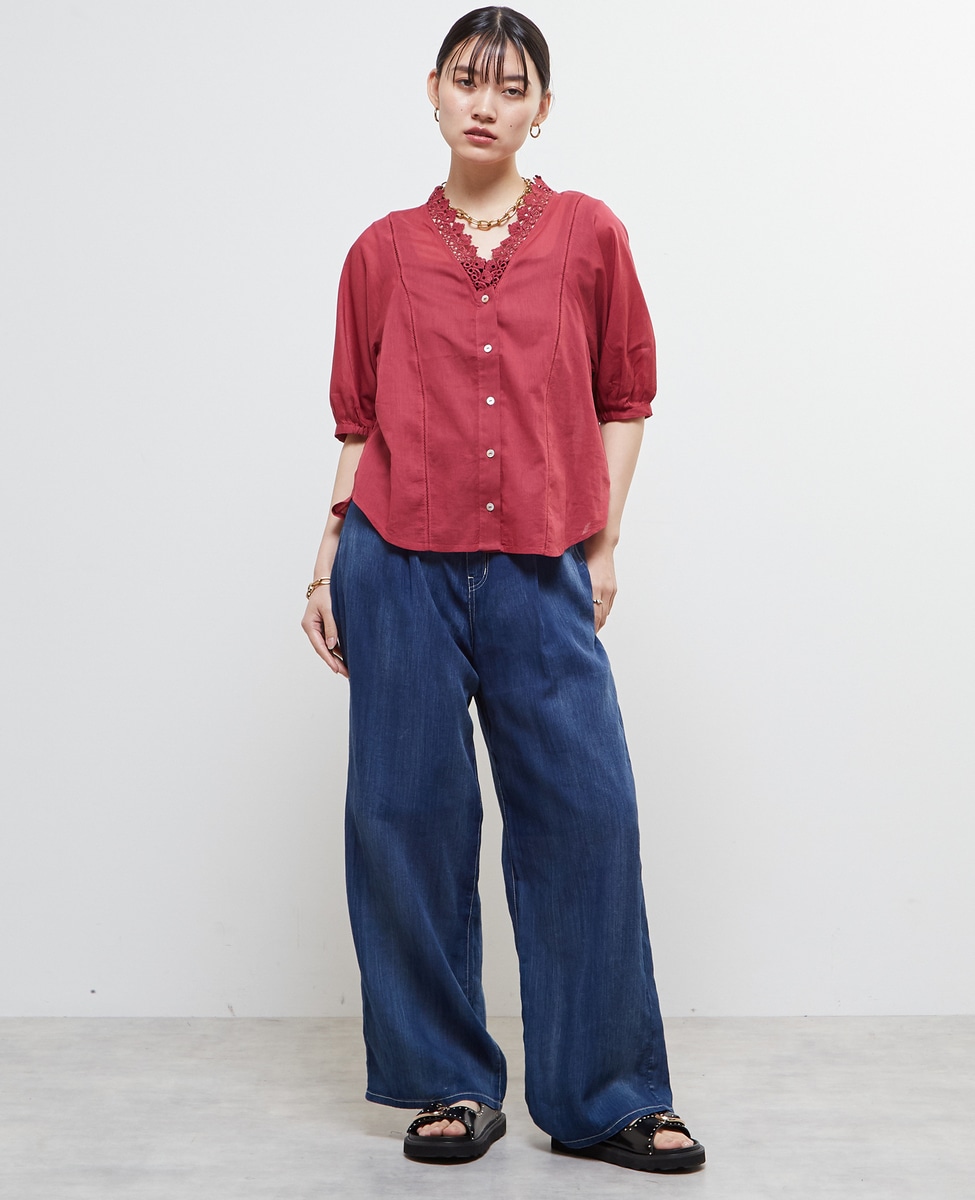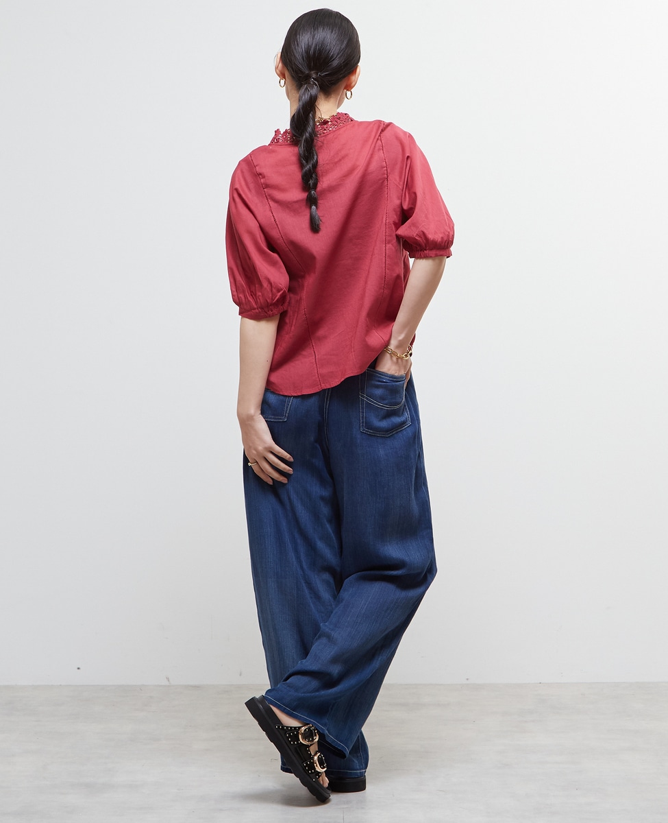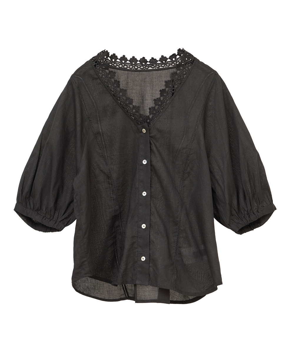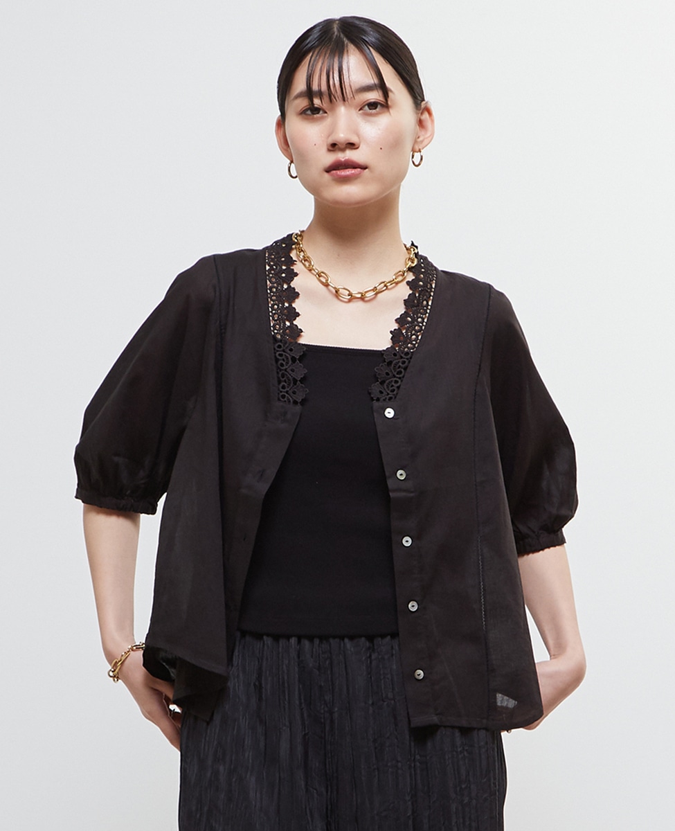 インド綿レース衿ブラウス