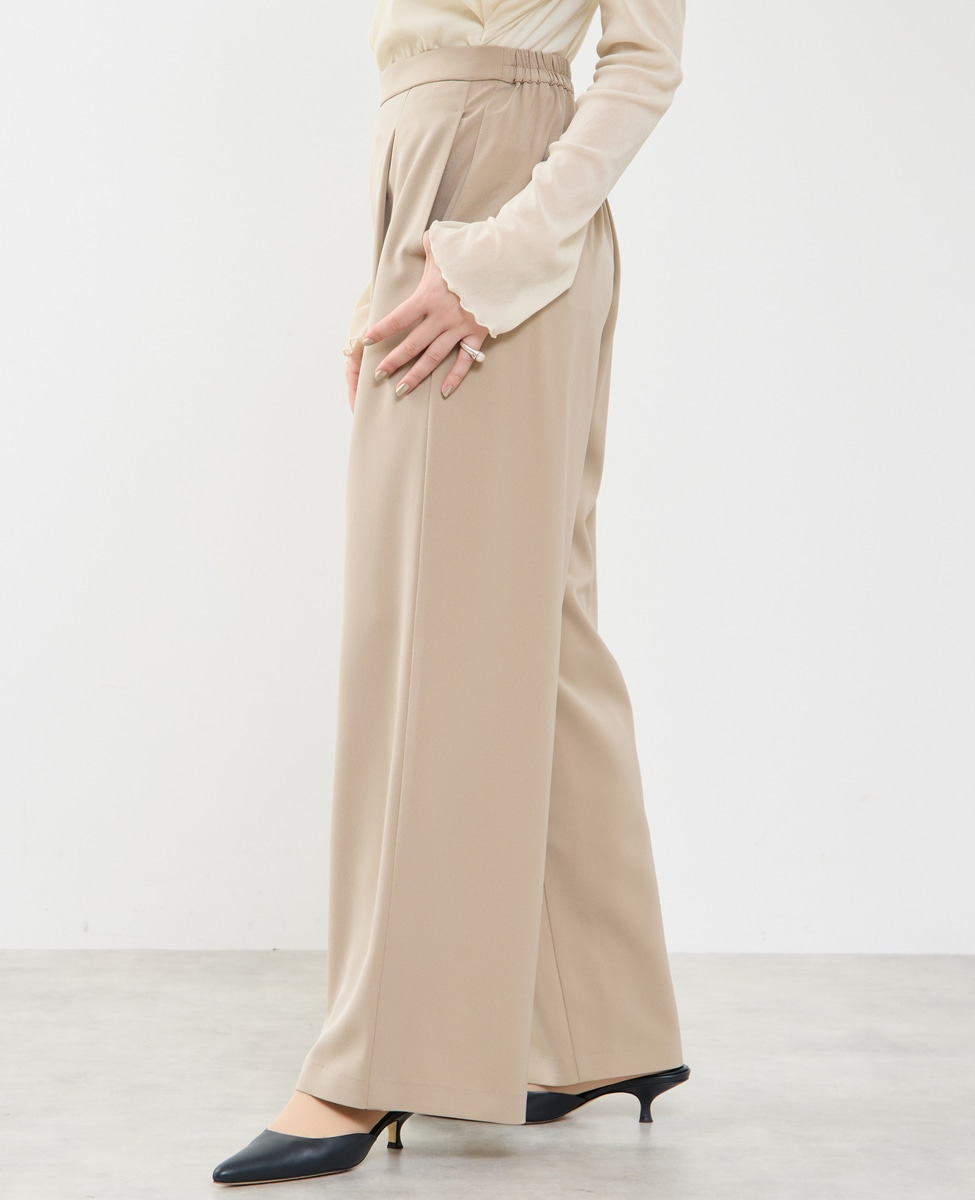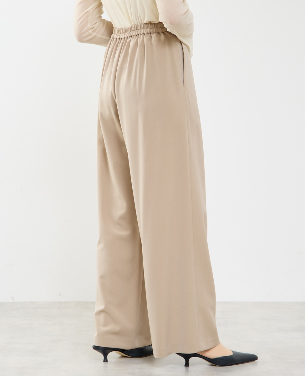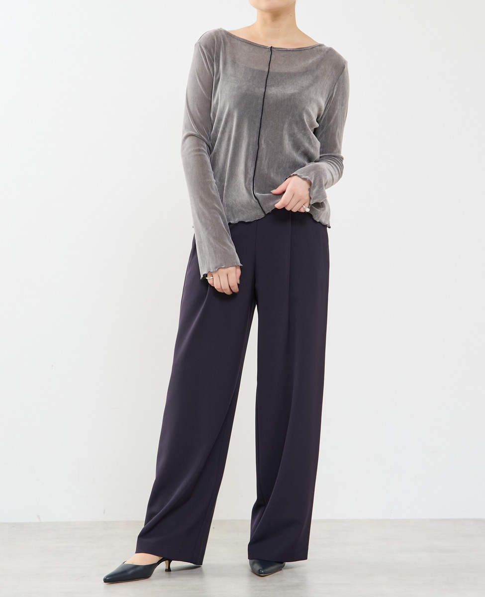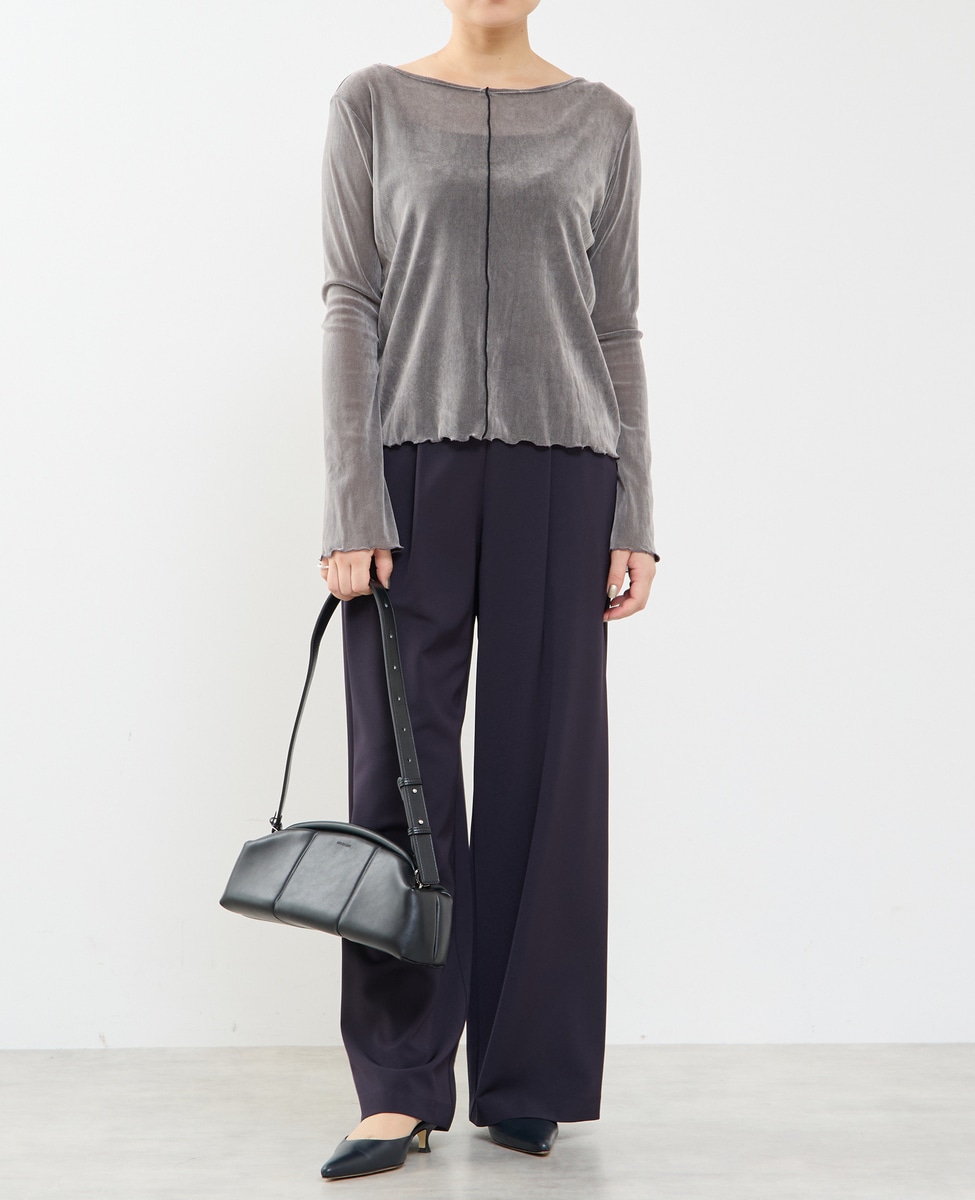 落ち感のある素材なのでギャザータックが入っていてもスッキリと着用できるアイテム。