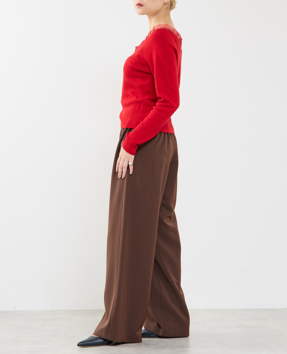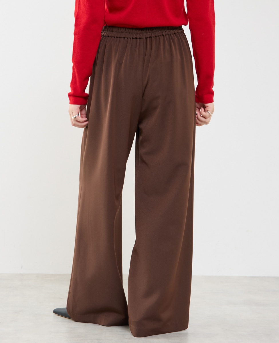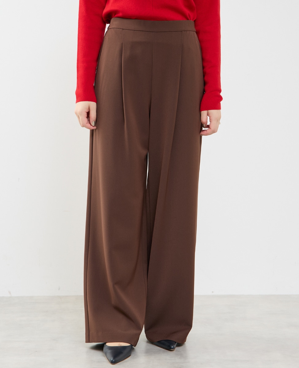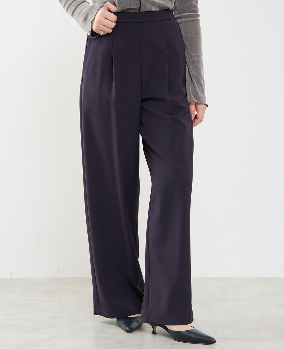落ち感のある素材なのでギャザータックが入っていてもスッキリと着用できるアイテム。