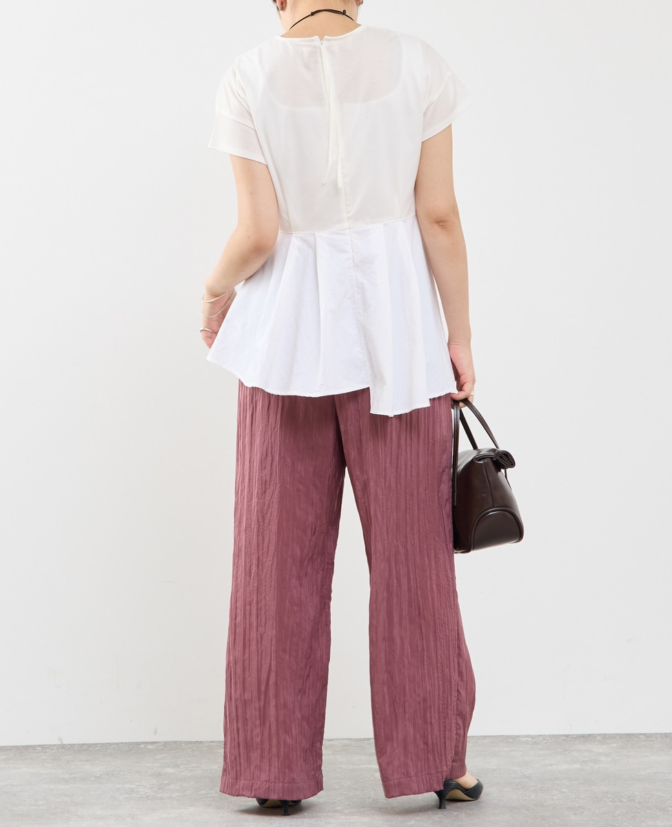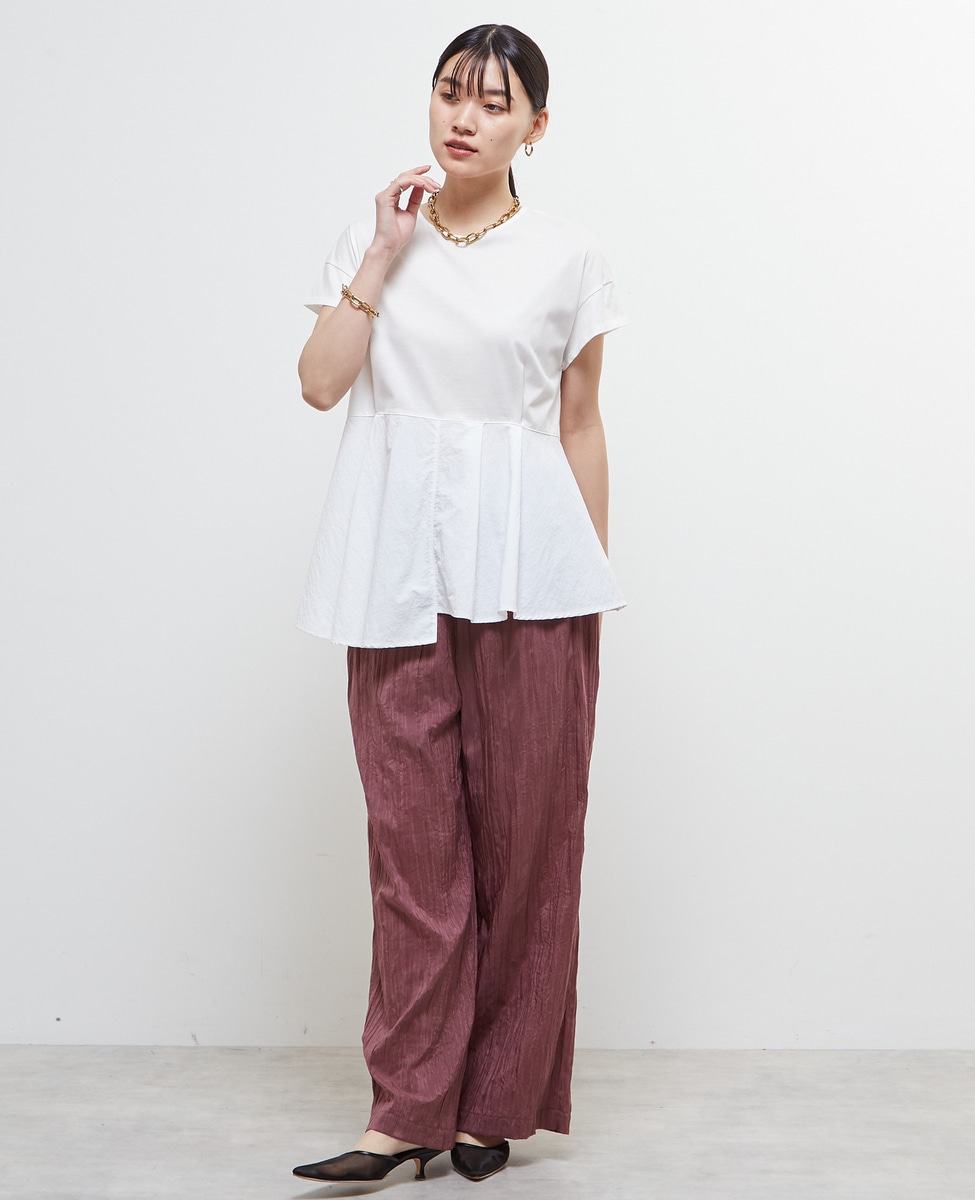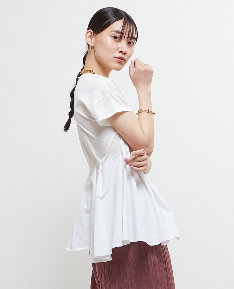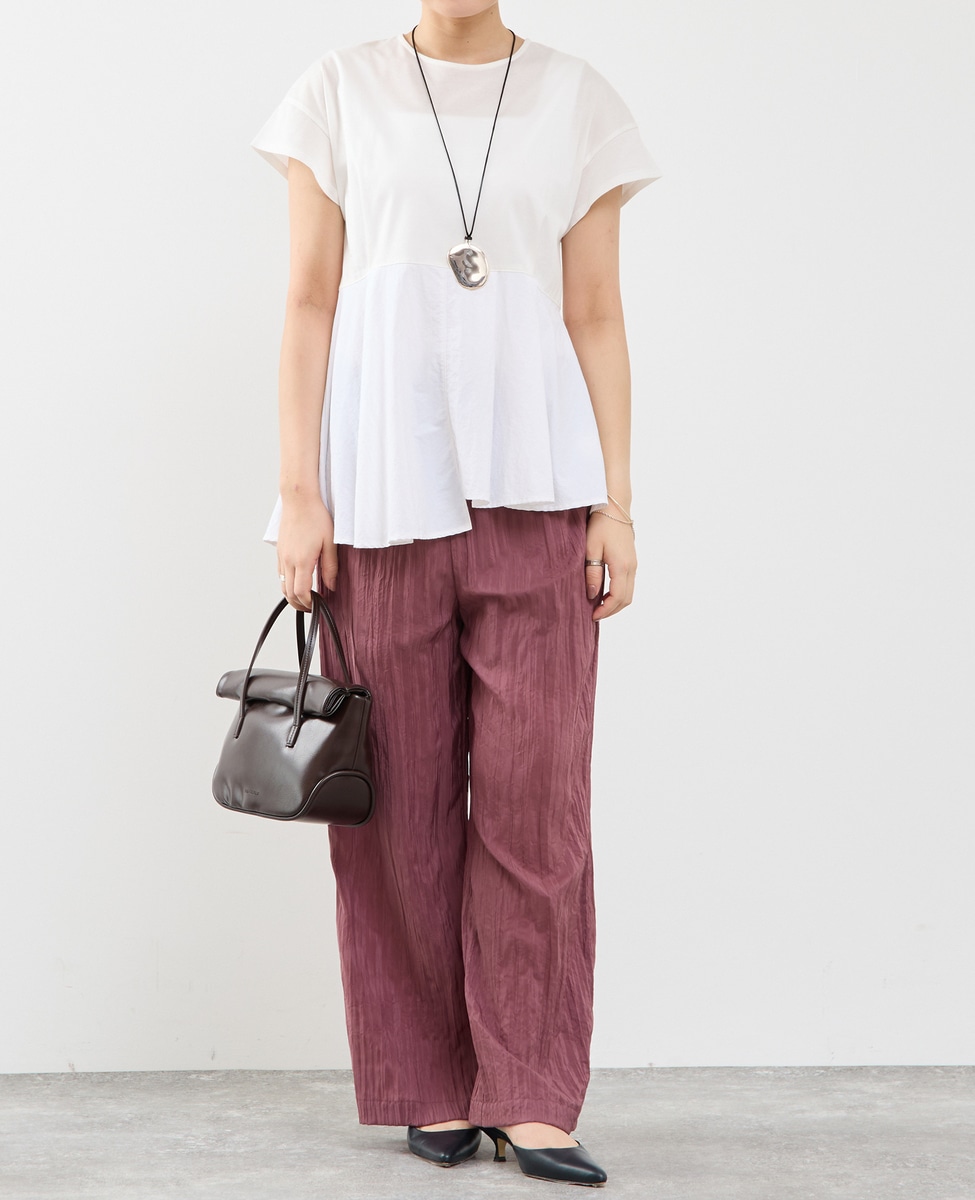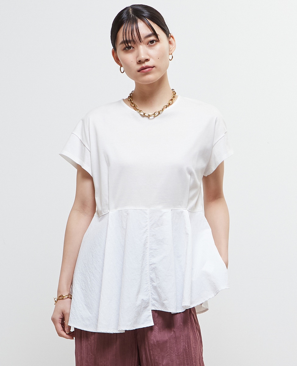 シルケット天竺とタスラン素材をドッキングしたデザインカットソー。